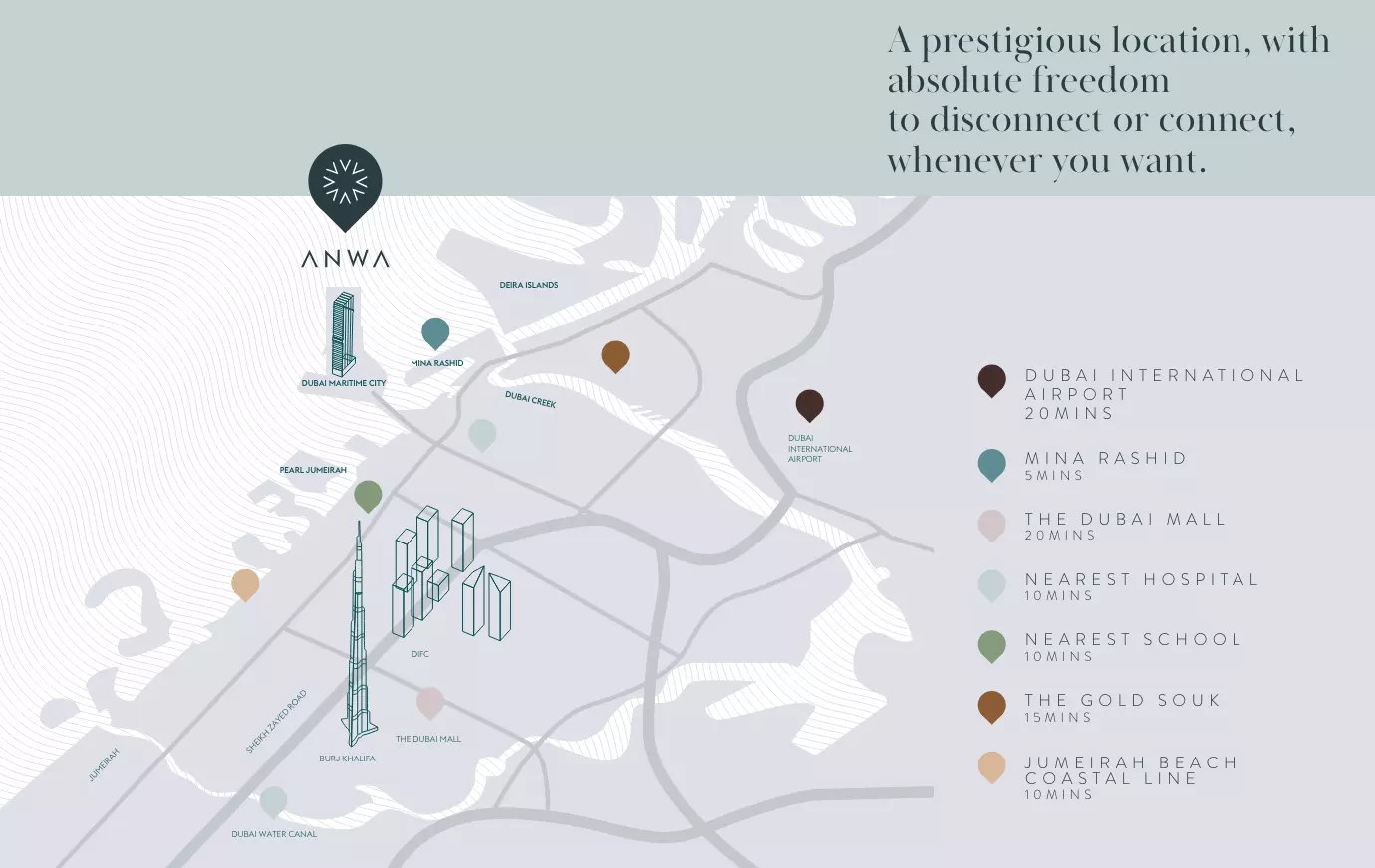 Anwa Phase 2 in Dubai Maritime City offers a luxurious waterfront lifestyle. Its location provides urban connectivity and tranquility, with stunning Arabian Gulf views, high-end facilities, and elegant designs, making it a strong investment option.