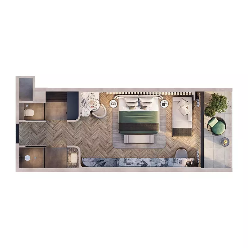 The Artist Hotel offers exclusive residential units that combine luxury living with generous layouts and premium finishes. The development focuses on delivering spacious apartments tailored for individuals or couples who value privacy, comfort, and modern design. • 1-Bedroom apartments start from AED 3.1 million, with a size of 1,290 sq. ft.. These residences provide expansive interiors, ideal for those seeking a home that blends style with functionality. The large floor area allows for flexible use of space, ensuring both comfort and elegance. With its distinctive design and upscale positioning, the Artist Hotel offers a limited selection of homes that appeal to discerning buyers looking for exclusivity and long-term value in Dubai’s property market.