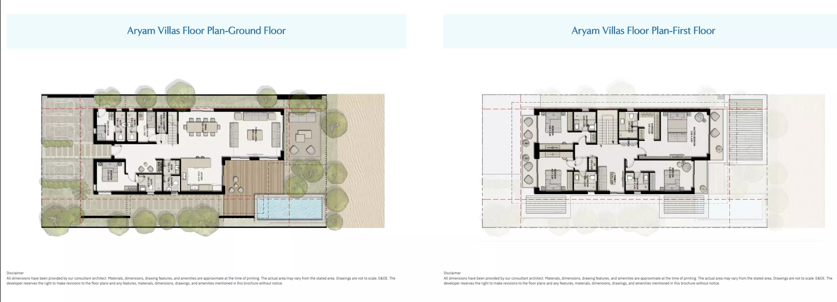 Aryam Villas offers a single housing option: spacious standalone villas featuring 5 bedrooms. Each villa spans approximately 5,414 square feet, providing ample interior and exterior living space. These units are designed for families seeking privacy, comfort, and direct access to waterfront views. The villas are laid out over two floors and include private pools, landscaped outdoor areas, and smart home features. All bedrooms are located on the upper floor, each with attached balconies. The starting price for these 5-bedroom villas is AED 2,238,000. This unit type is ideal for end-users or investors looking for high-quality, low-density living in a premium location.