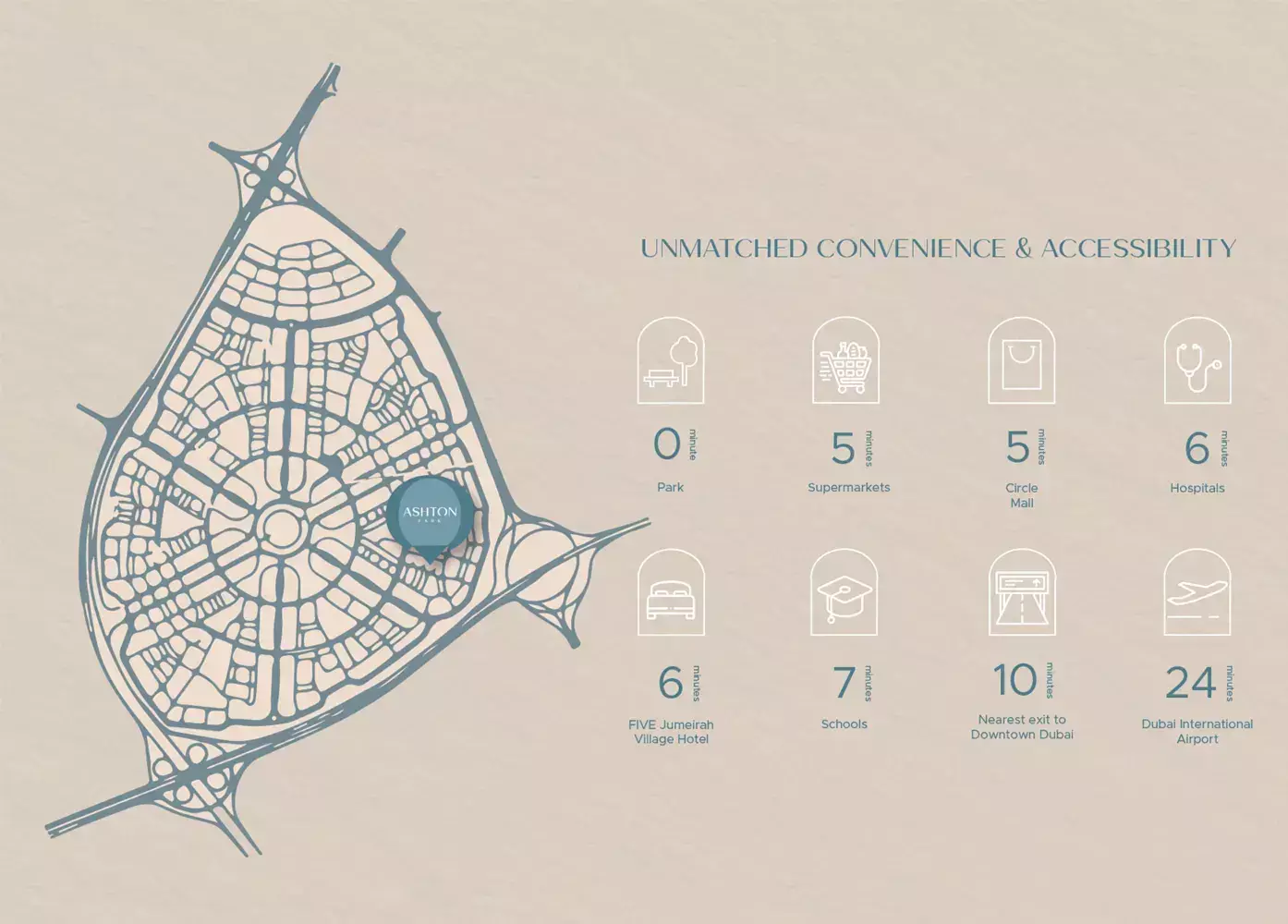 Ashton Park represents an excellent investment in Dubai’s Jumeirah Village Circle (JVC), a prime residential area known for its family-friendly environment and strong connectivity to key destinations like Mall of the Emirates, Dubai Marina, and Downtown Dubai. The development’s modern design and high-quality finishes ensure it will appeal to a wide range of residents, while its strategic location promises strong rental demand and future capital appreciation. JVC’s ongoing growth and the project’s luxurious appeal make Ashton Park a highly attractive option for investors looking for long-term value in one of Dubai’s most sought-after neighborhoods.