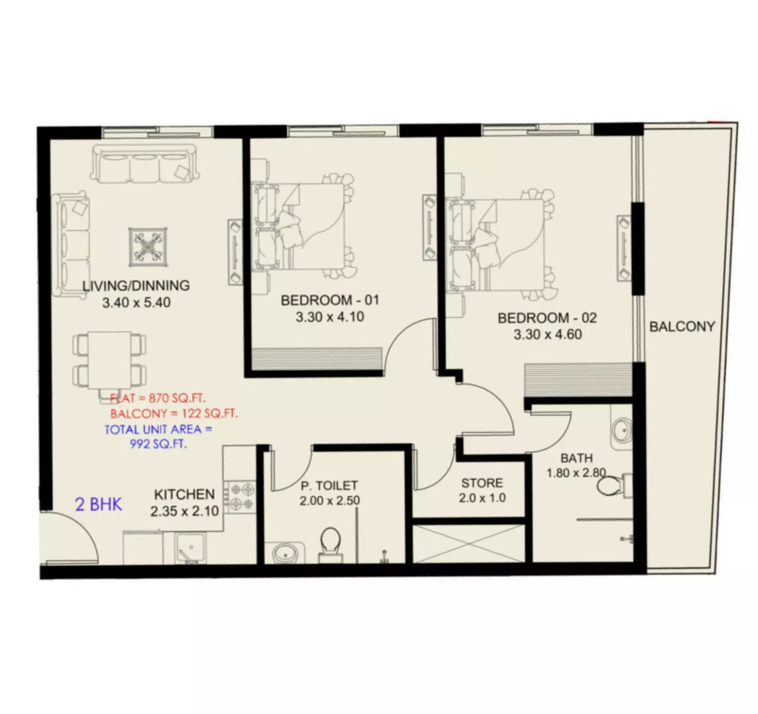 Astra South offers a range of residential units tailored to various preferences and budgets. The development includes studio, one-bedroom, and two-bedroom apartments with specific sizes and starting prices. • Studio units are available starting from AED 675,990, with sizes ranging between 349 and 499 square feet. • One-bedroom apartments have a typical size of 718 square feet. For those seeking more space. • Two-bedroom units start at AED 1,528,845 million and range in size from 1,033 to 1,240 square feet. Each unit is designed to maximize space and functionality, offering modern layouts suitable for individuals, couples, or small families.