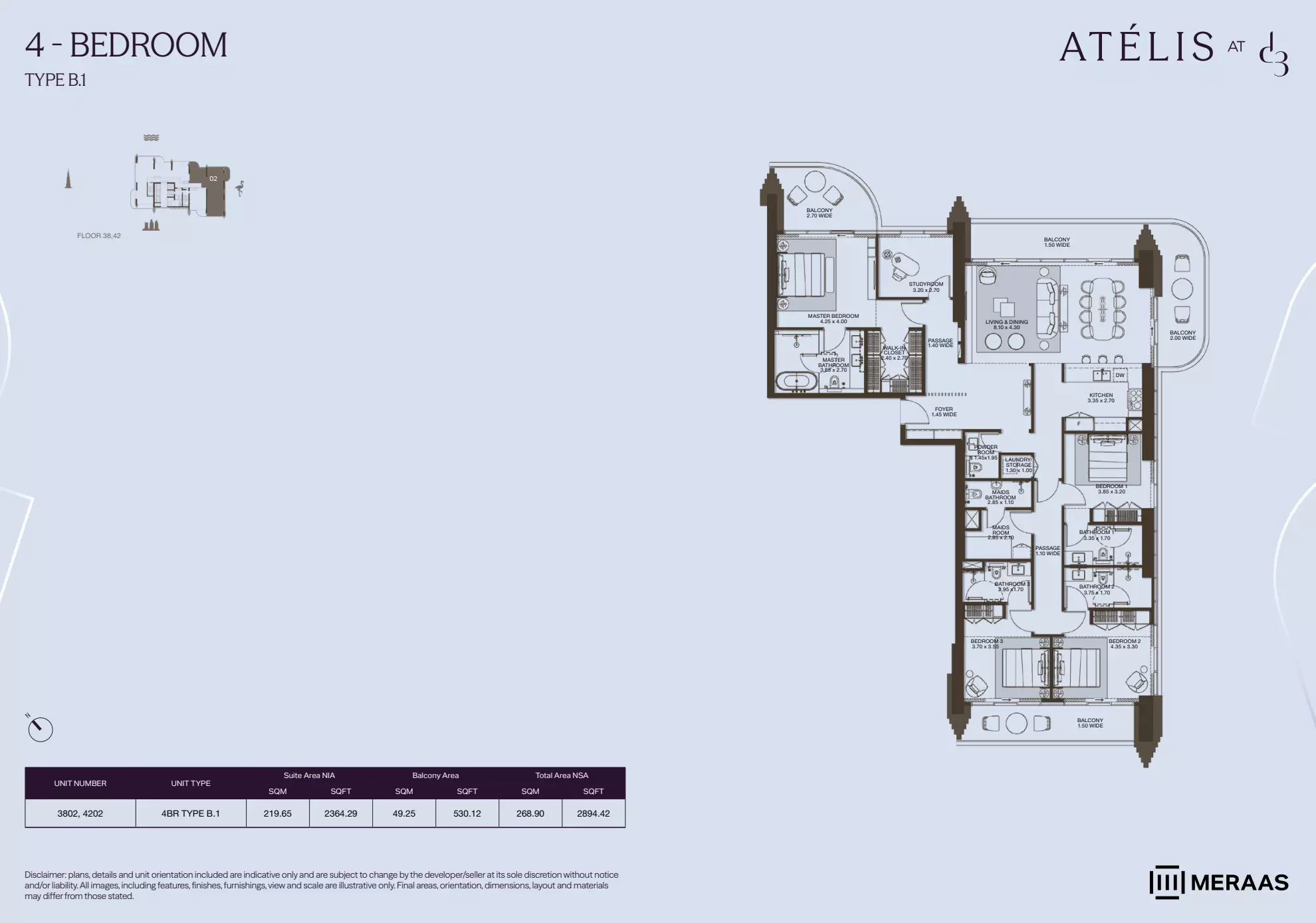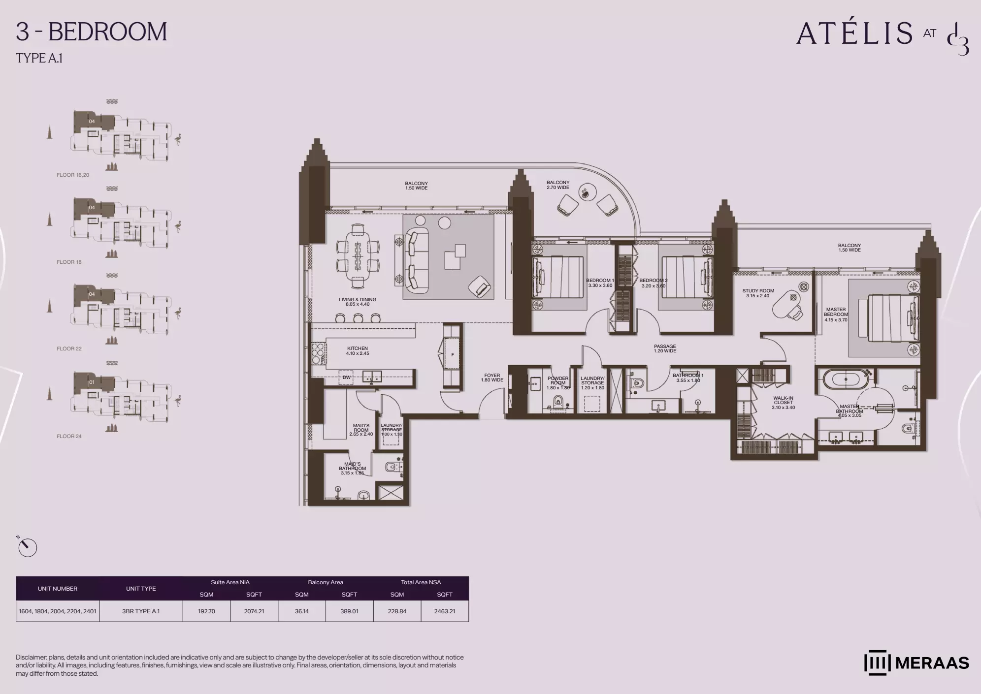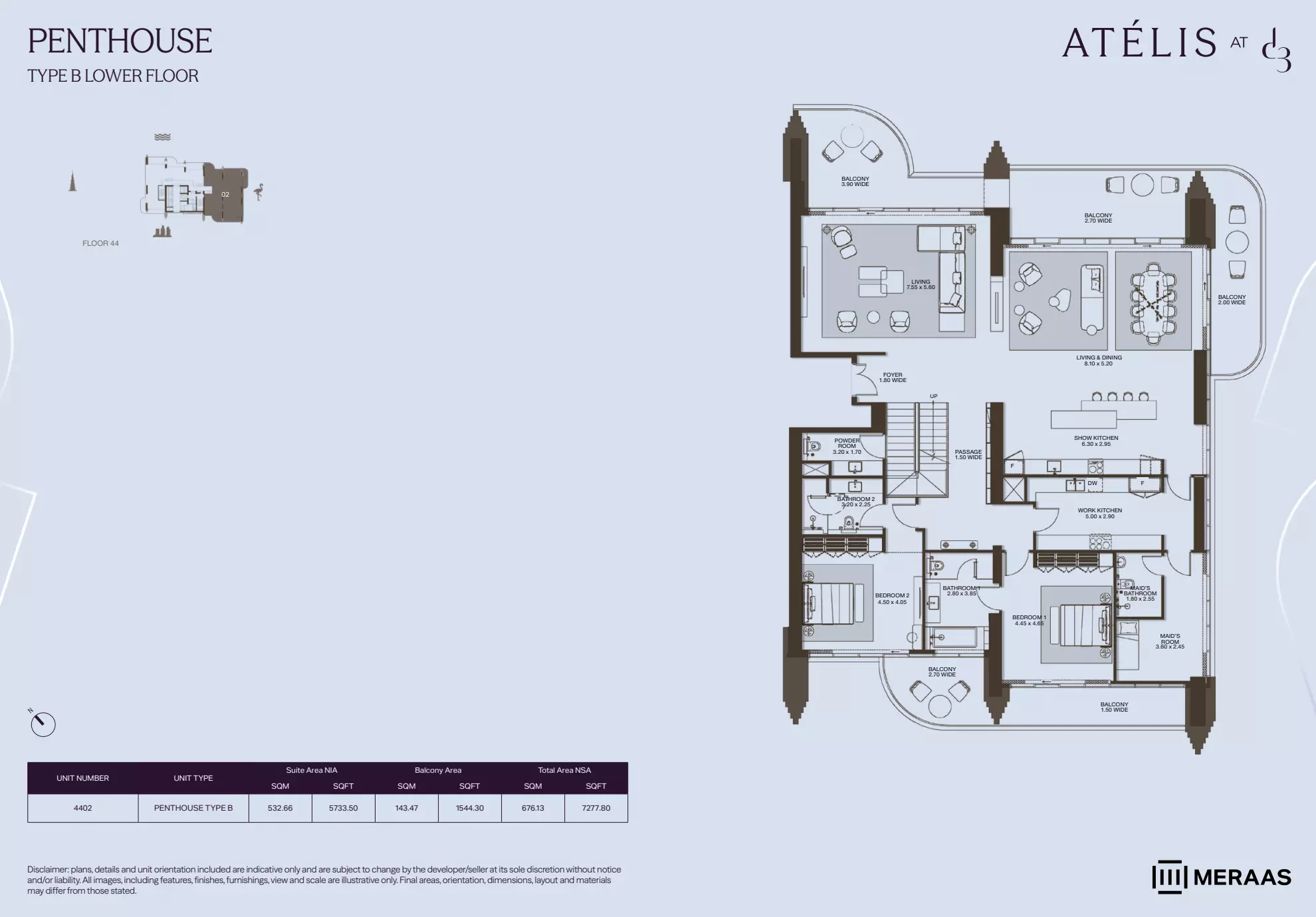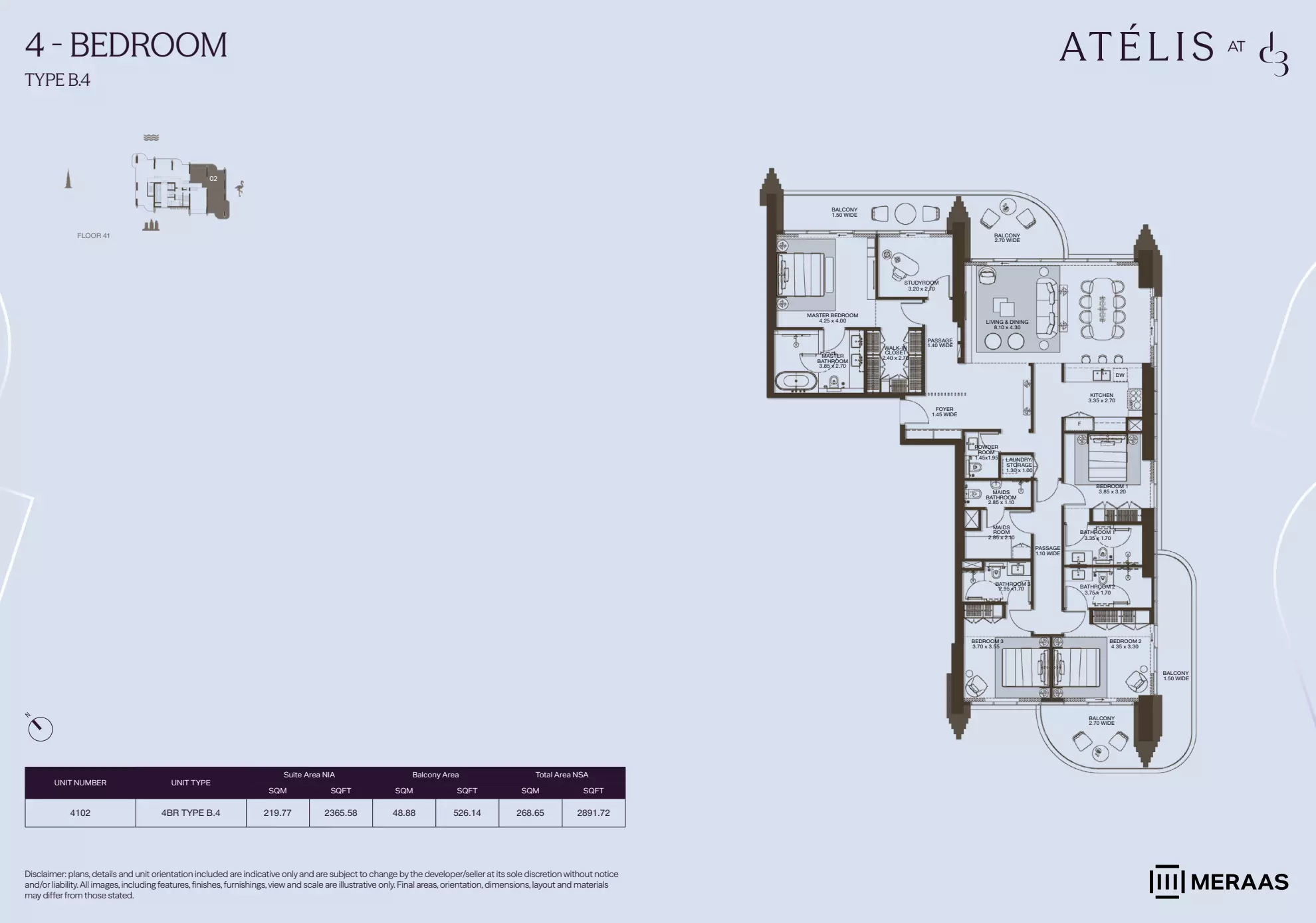 Atelis offers a variety of premium housing options, including apartments, penthouses, and villas, catering to a range of preferences and budgets. The apartment units start with 1-bedroom layouts, priced from AED 2.1 million, and range in size from 749 to 1,139 square feet. The 2-bedroom apartments are available from AED 3.8 million, with sizes between 1,341 and 2,032 square feet. For larger families or those needing more space, 3-bedroom apartments begin at AED 7.4 million and span 2,124 to 2,592 square feet. The 4-bedroom apartments are priced from AED 10 million, offering spacious interiors ranging from 2,859 to 3,367 square feet. At the top end of the apartment offerings, 5-bedroom penthouses are available from AED 22 million, with generous floor areas ranging between 6,252 and 7,277 square feet, offering expansive views and luxury finishes. For those seeking a standalone home, Atelis also provides 4-bedroom villas starting from AED 13 million, with unit sizes between 6,044 and 6,535 square feet. These options make Atelis a premium residential destination for buyers seeking spacious, high-end living spaces.