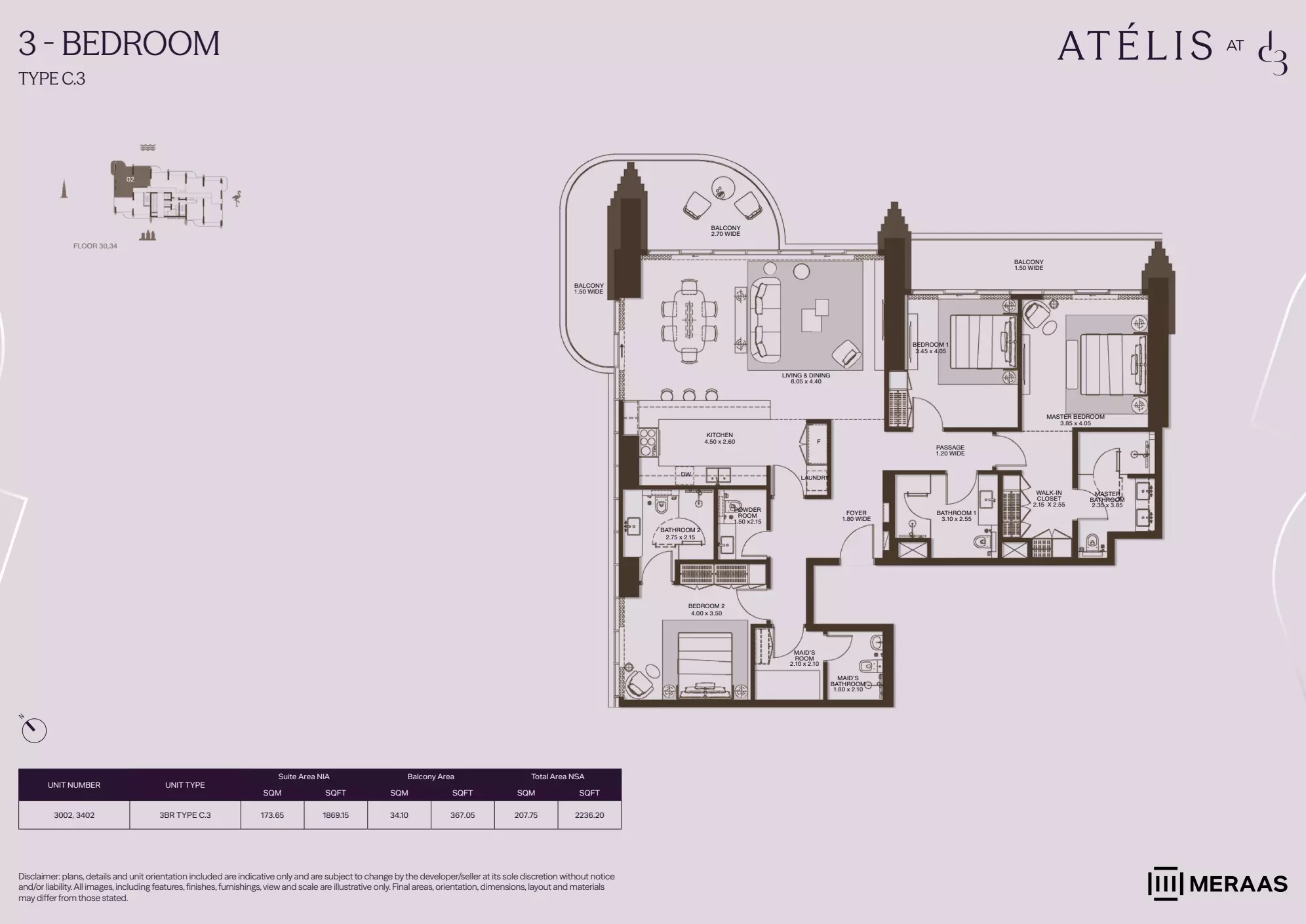 The starting price for Atelis is AED 2,100,000.