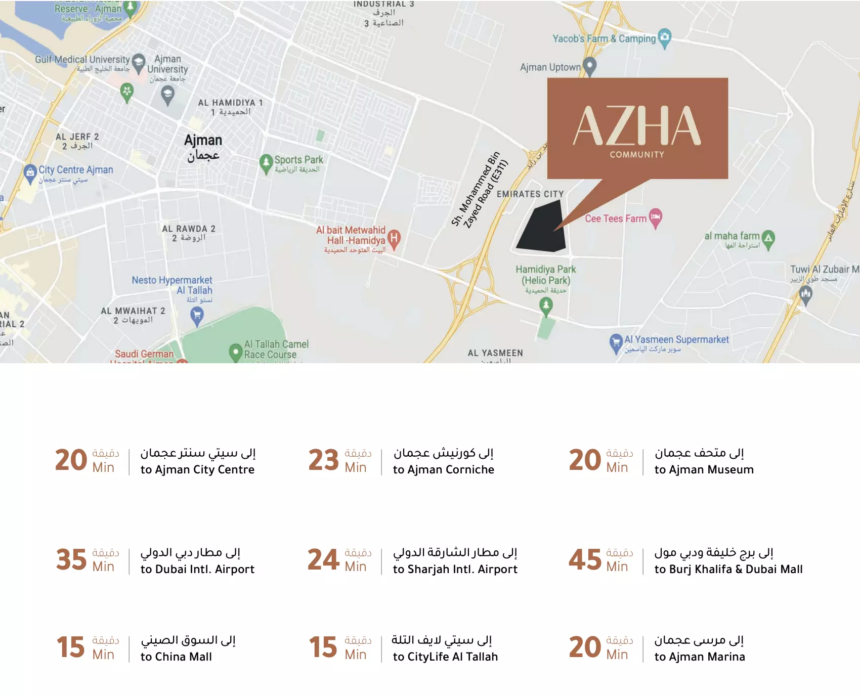 Azha Al Aamra Residences is located in Ajman, offering a strategic position with easy access to key landmarks and amenities.