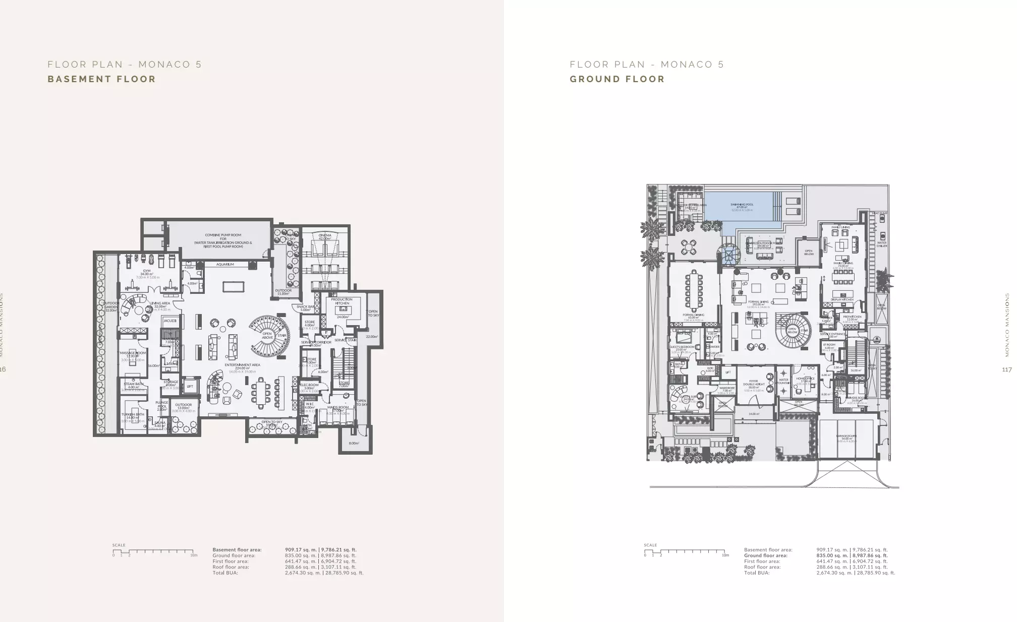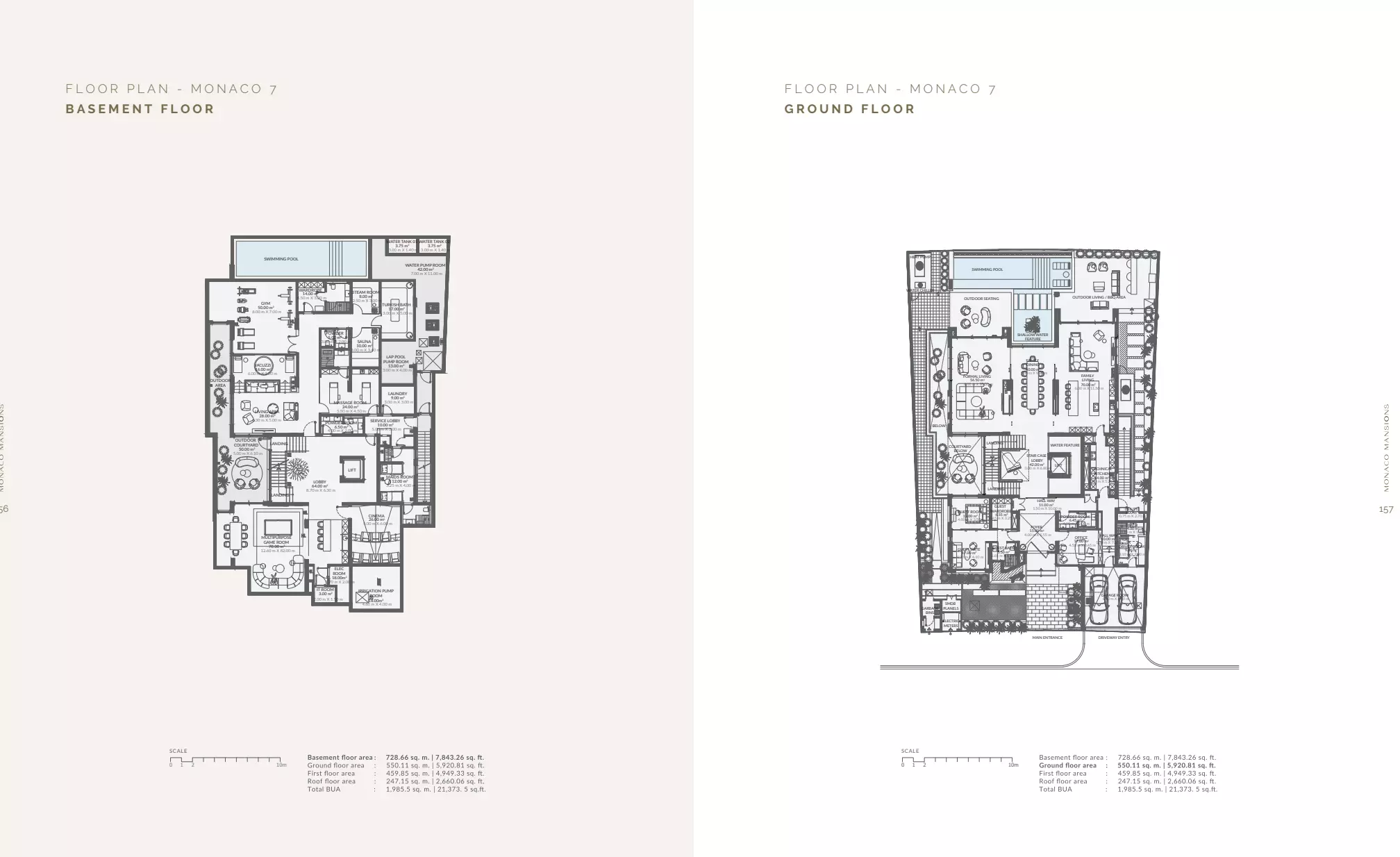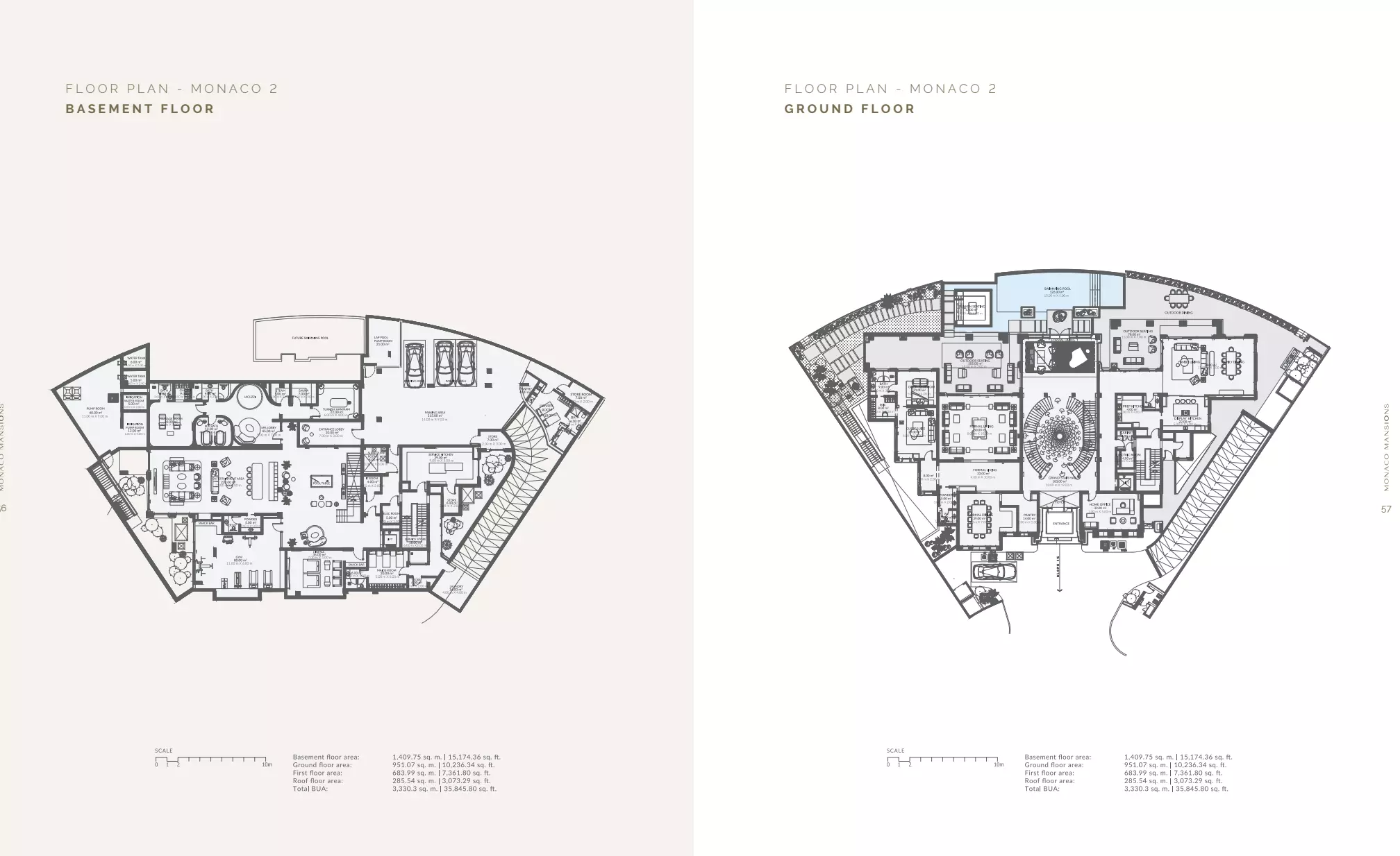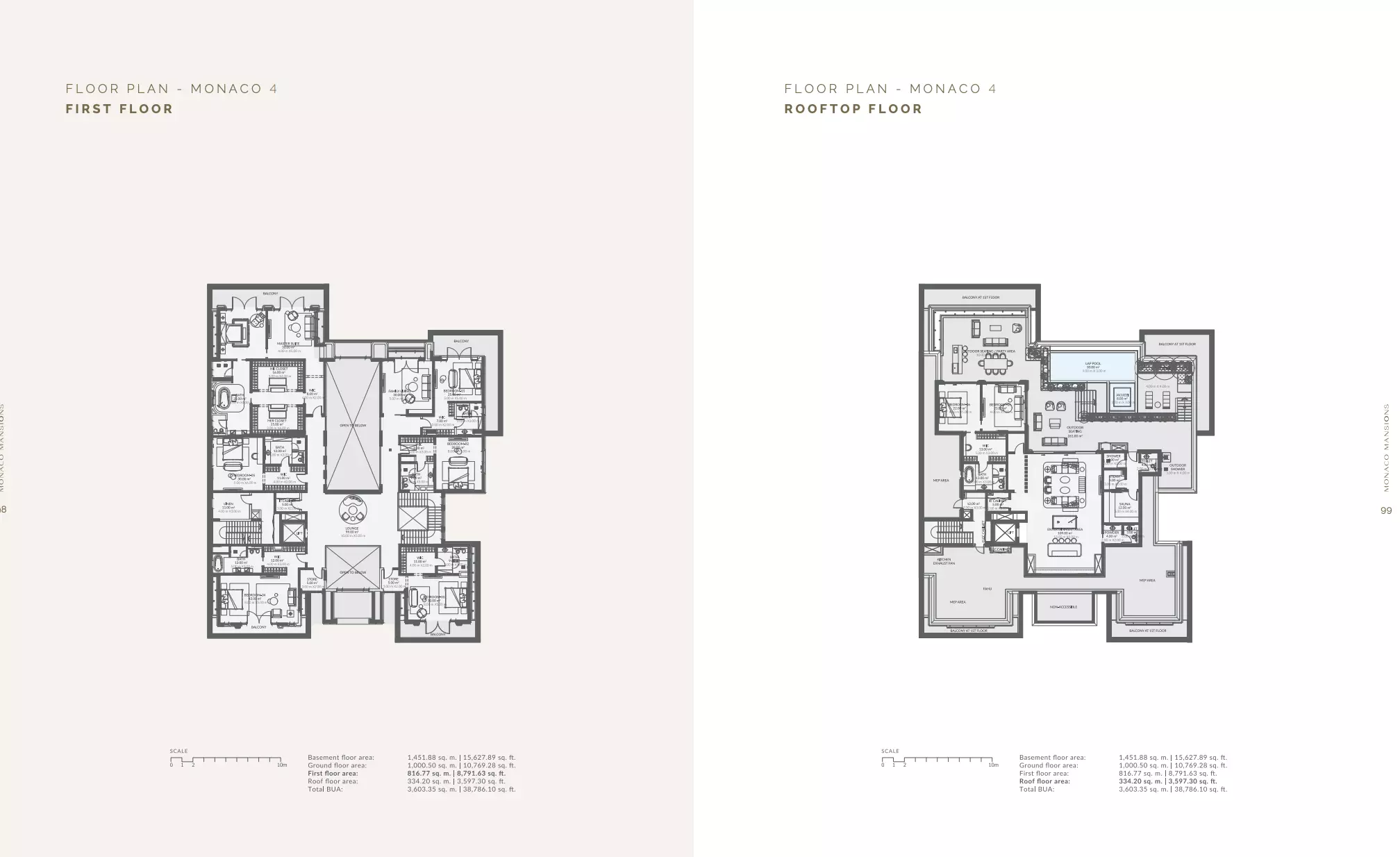 Monaco Mansions offers ultra-luxury villas with the following configurations: • 6-Bedroom Villas: Sizes ranging from 19,971 to 28,815 sqft • 7-Bedroom Villas: Approximately 35,845 sqft • 8-Bedroom Villas: Sizes ranging from 32,764 to 38,786 sqft