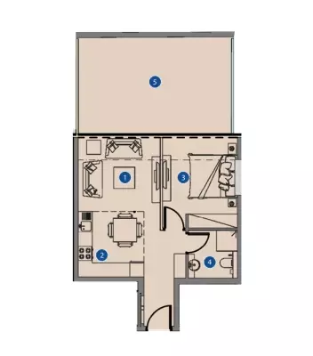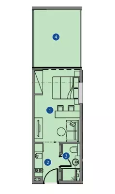 • Studio size: 455 sqft. Ideal for singles or young professionals seeking a compact yet trendy living place.