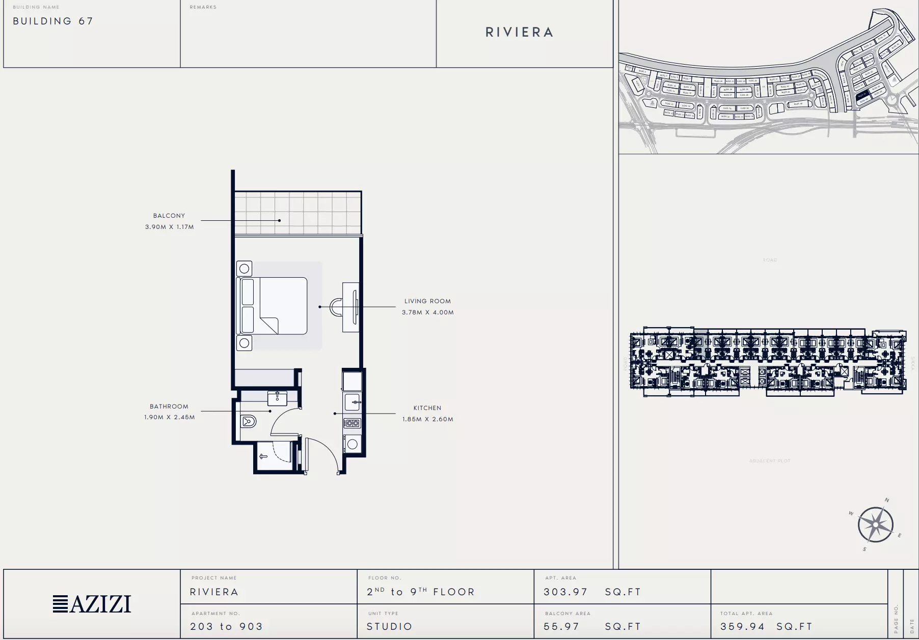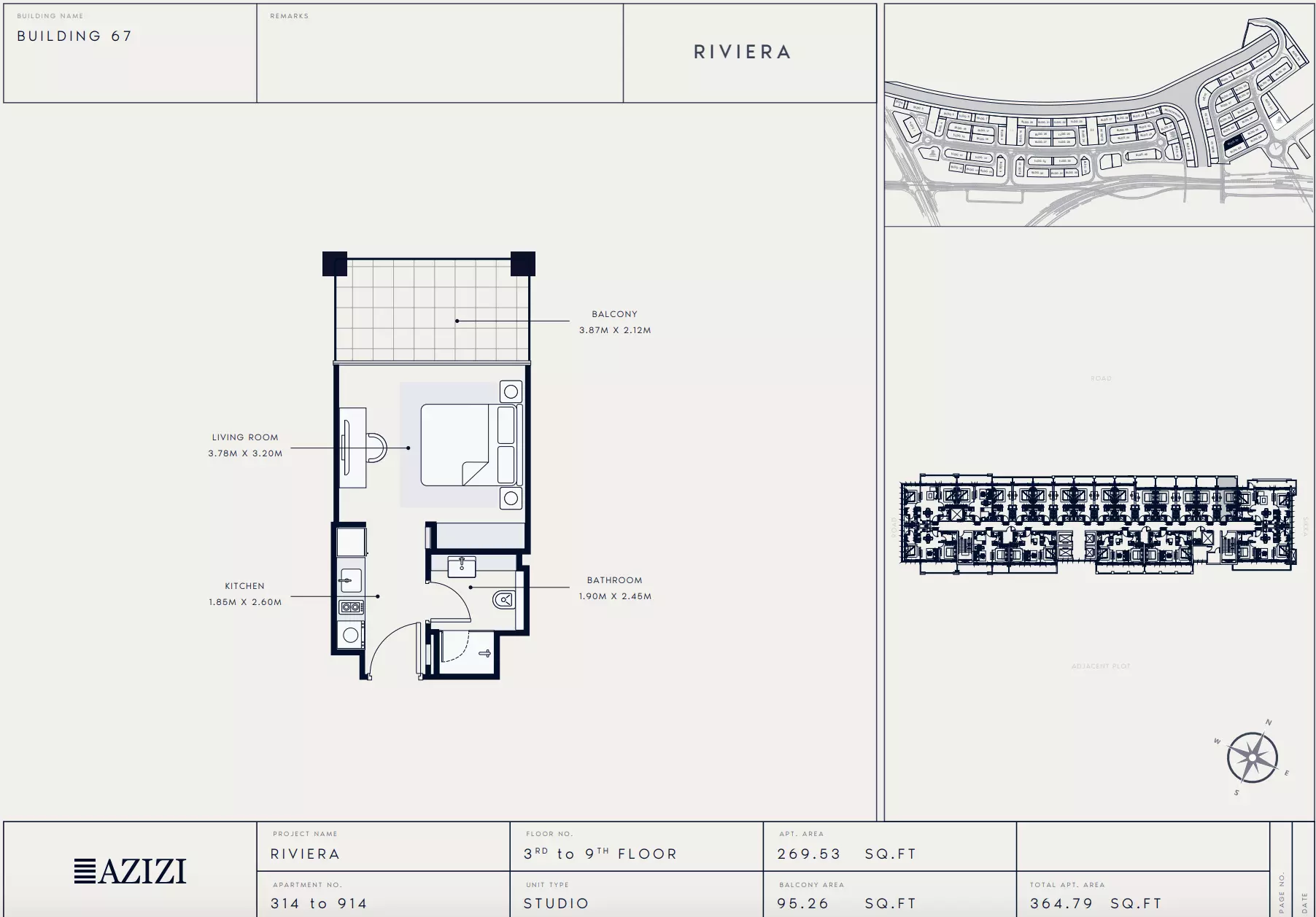 • Apartments in studios:Size range: around 400–500 square feet,Starting cost: 1,134,000 AED, Features include a small living space, bathroom, kitchenette, and sometimes a balcony.
