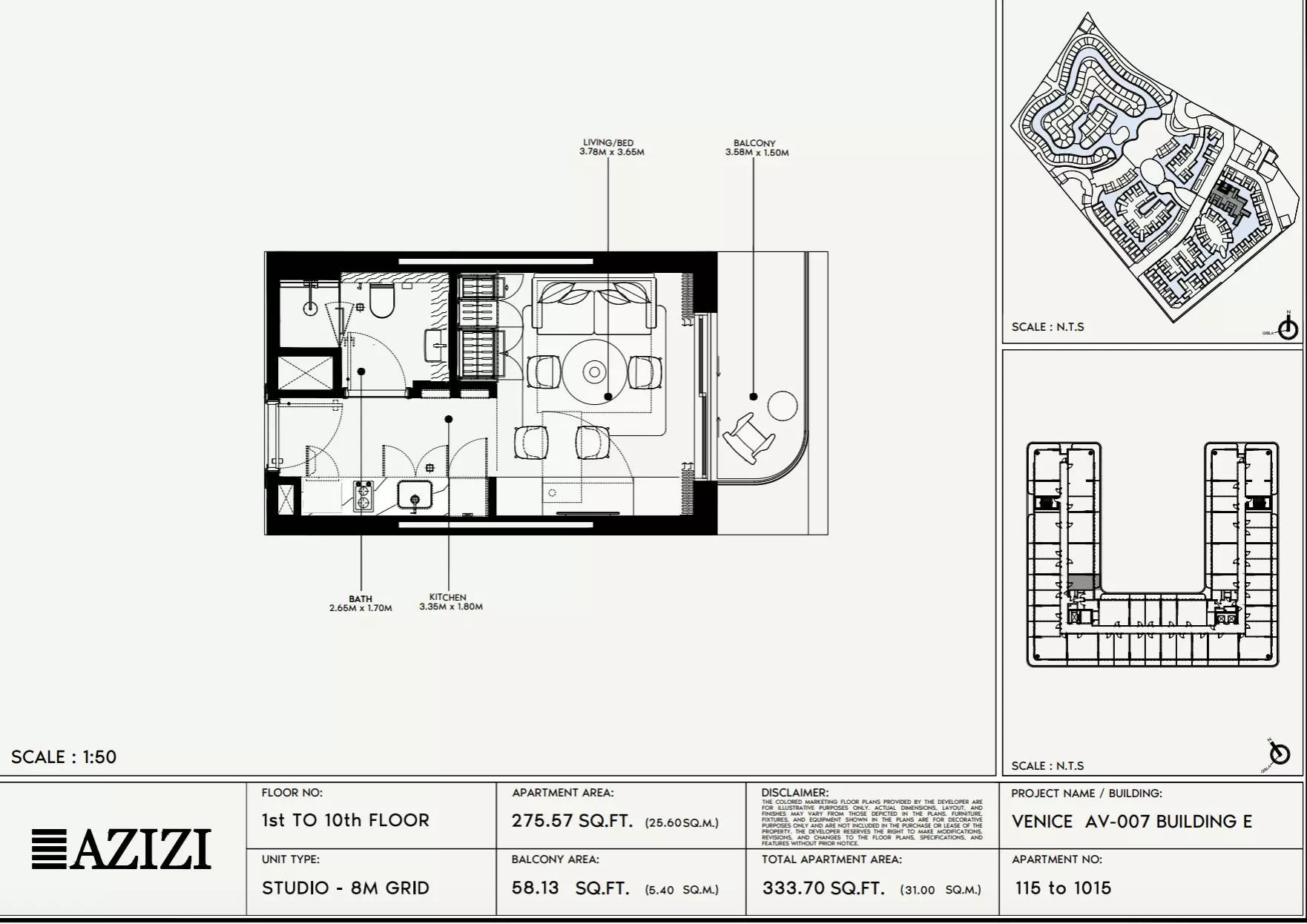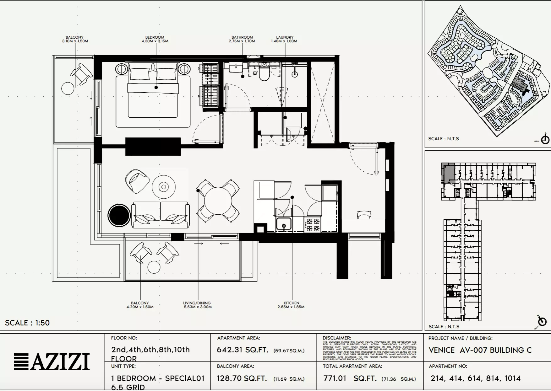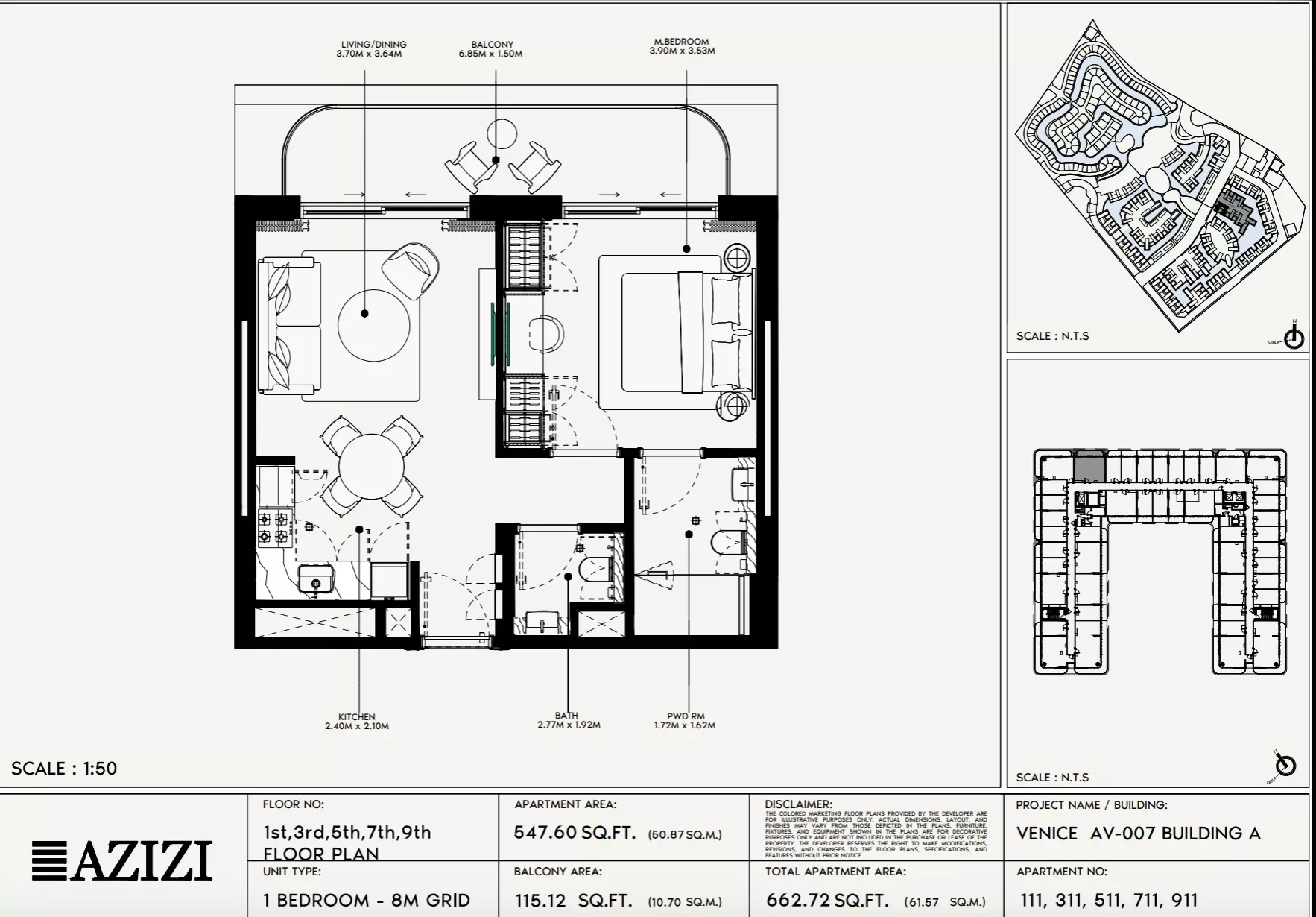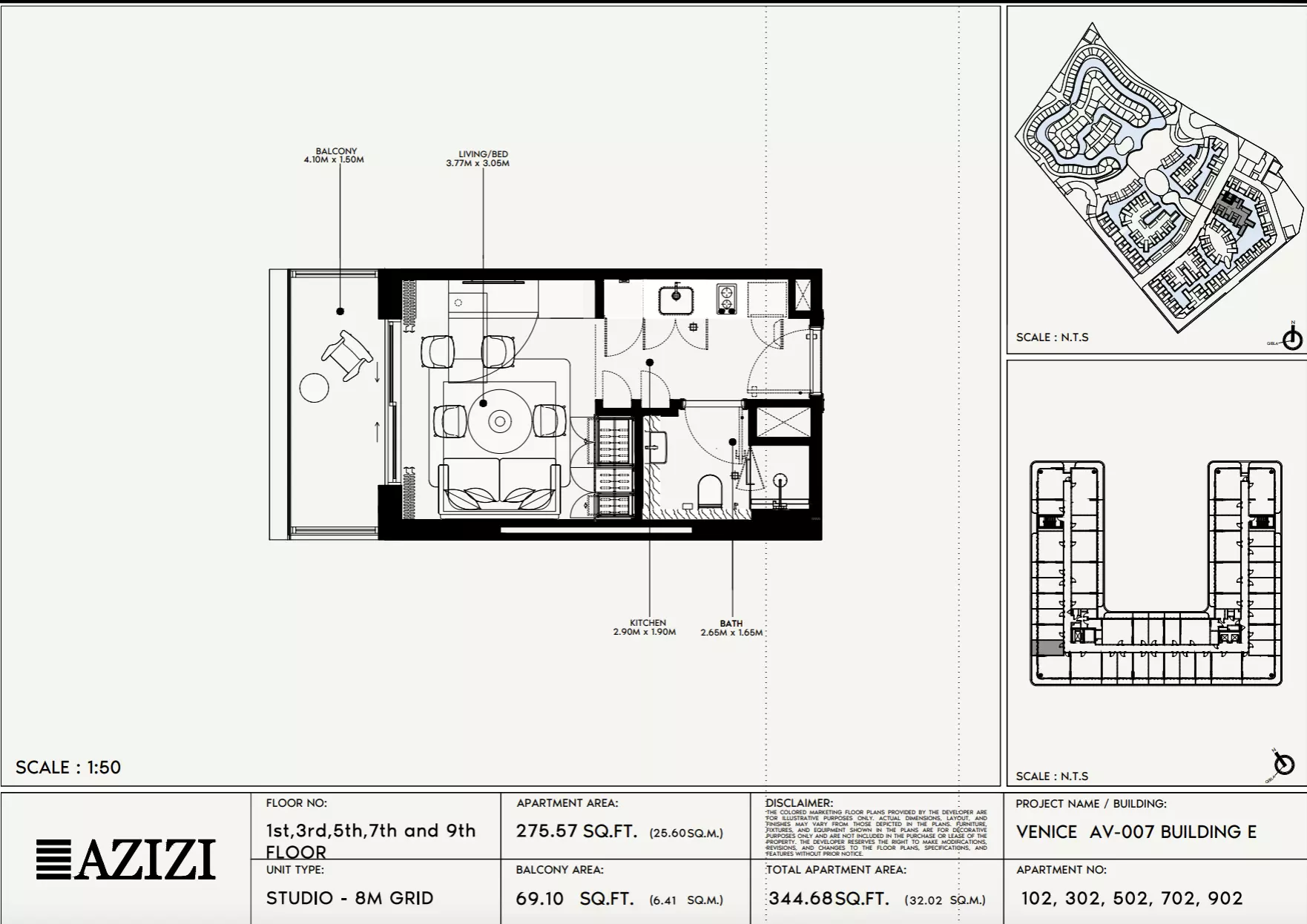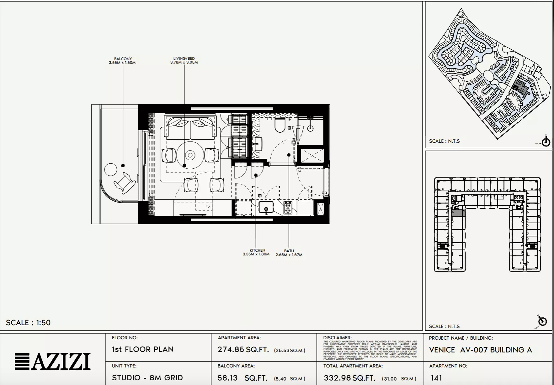 Azizi Venice 7 is an attractive investment opportunity, offering a unique blend of luxury, comfort, and practicality. Located in the rapidly developing Dubai South, it boasts excellent connectivity with proximity to key transportation hubs like Al Maktoum International Airport and Jebel Ali Port, making it ideal for both residents and businesses. The project’s elegant design and high-end finishes appeal to investors seeking premium properties at competitive prices. The surrounding area’s ongoing development, including leisure attractions and shopping centers, ensures a vibrant, community-focused lifestyle, adding to the project's potential for long-term growth and rental demand.