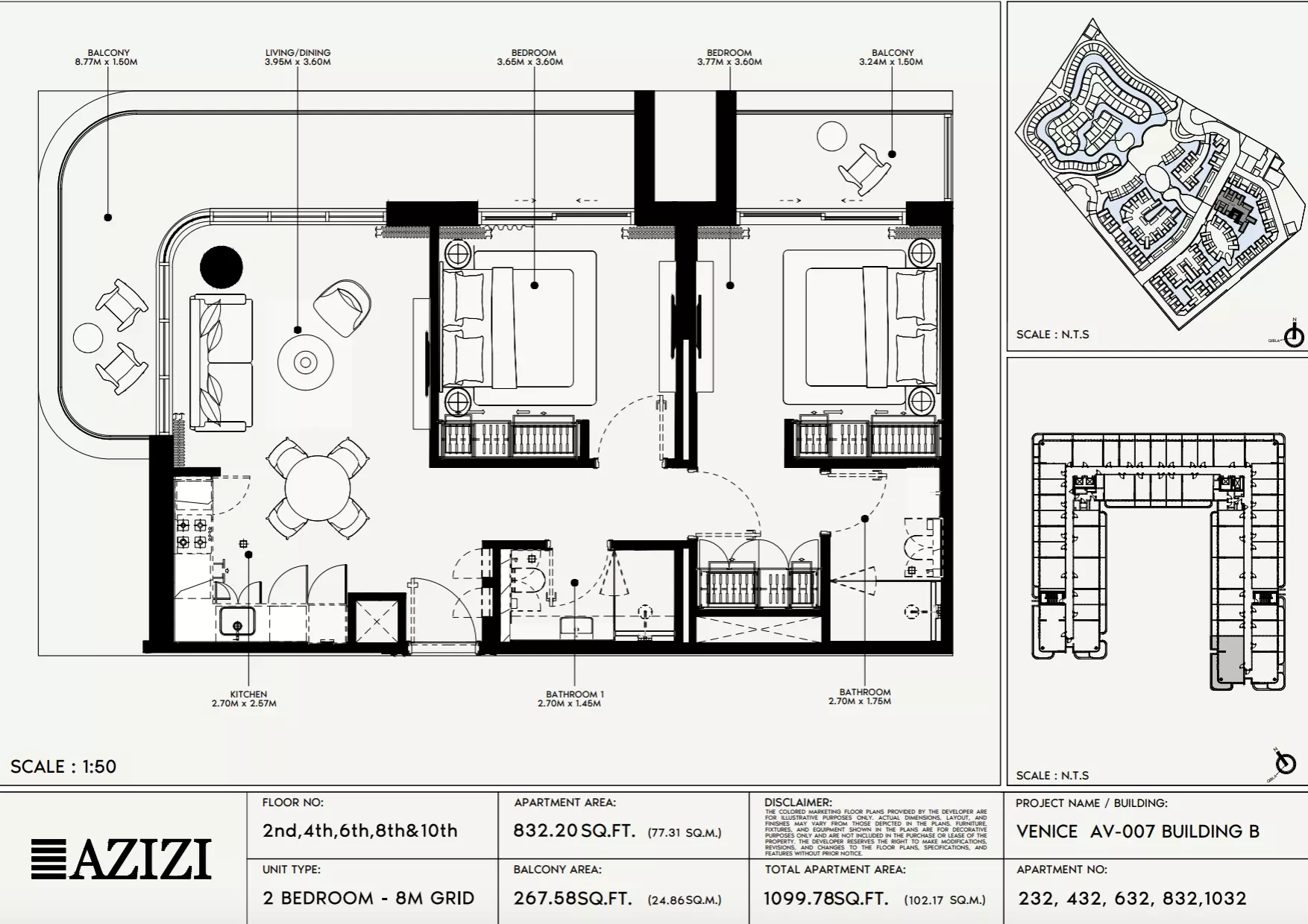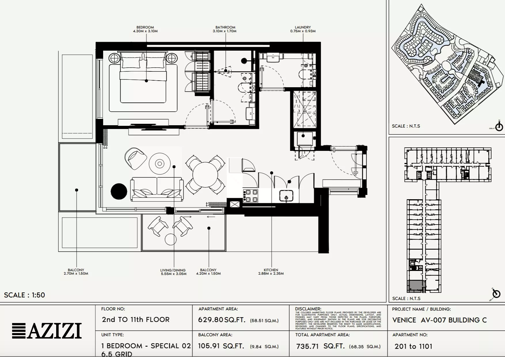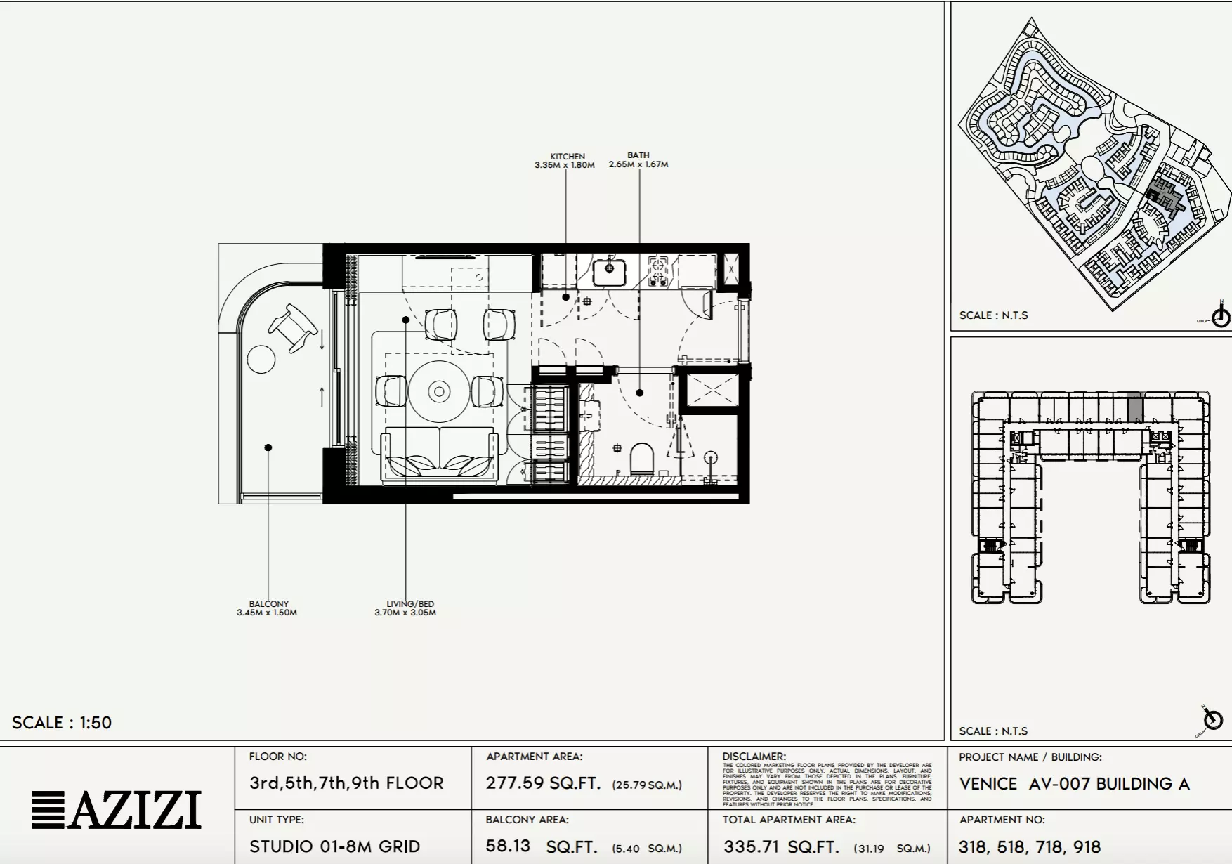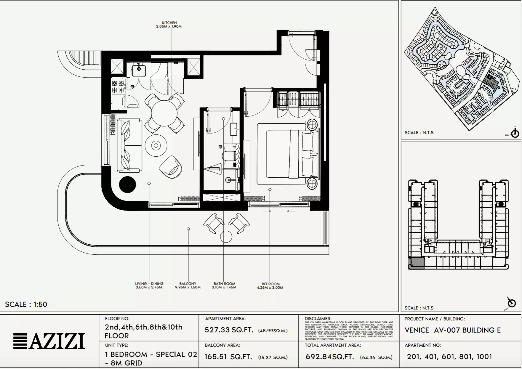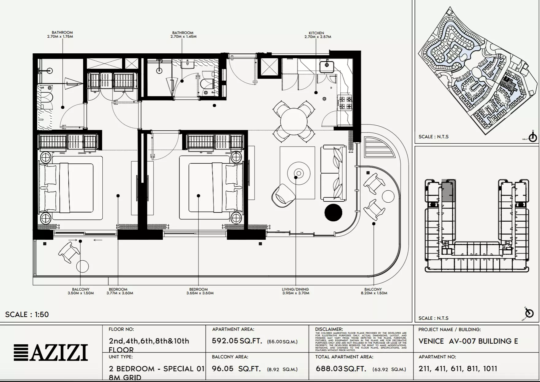 Azizi Venice 7 is an attractive investment opportunity, offering a unique blend of luxury, comfort, and practicality. Located in the rapidly developing Dubai South, it boasts excellent connectivity with proximity to key transportation hubs like Al Maktoum International Airport and Jebel Ali Port, making it ideal for both residents and businesses. The project’s elegant design and high-end finishes appeal to investors seeking premium properties at competitive prices. The surrounding area’s ongoing development, including leisure attractions and shopping centers, ensures a vibrant, community-focused lifestyle, adding to the project's potential for long-term growth and rental demand.