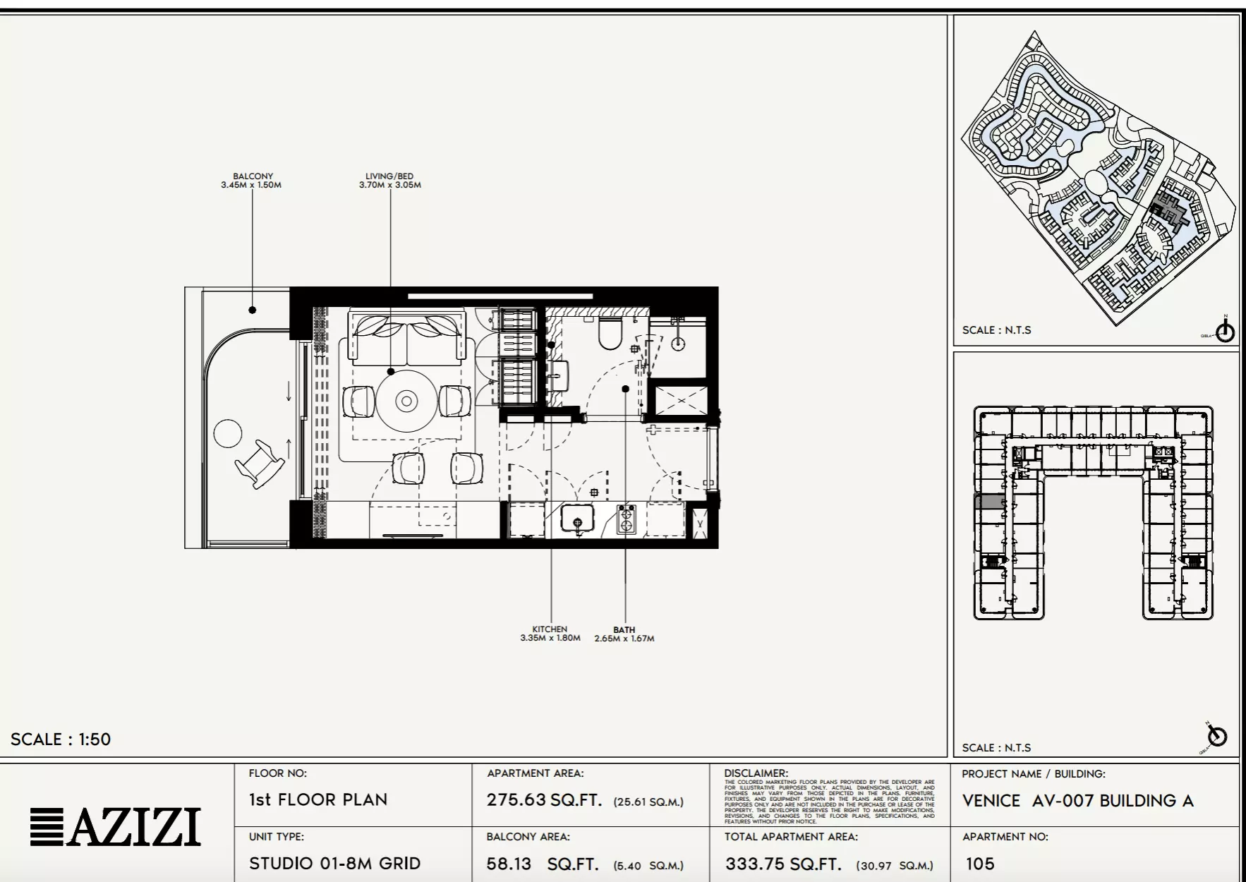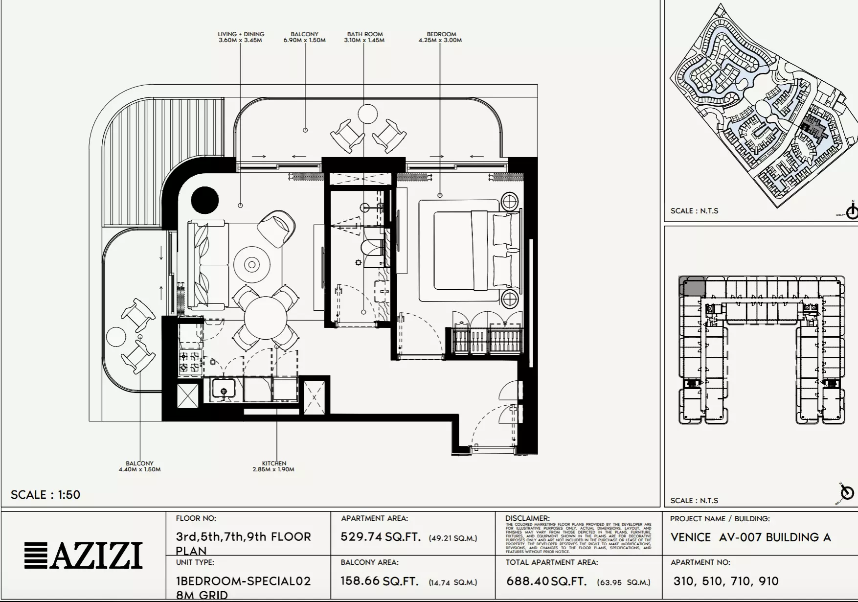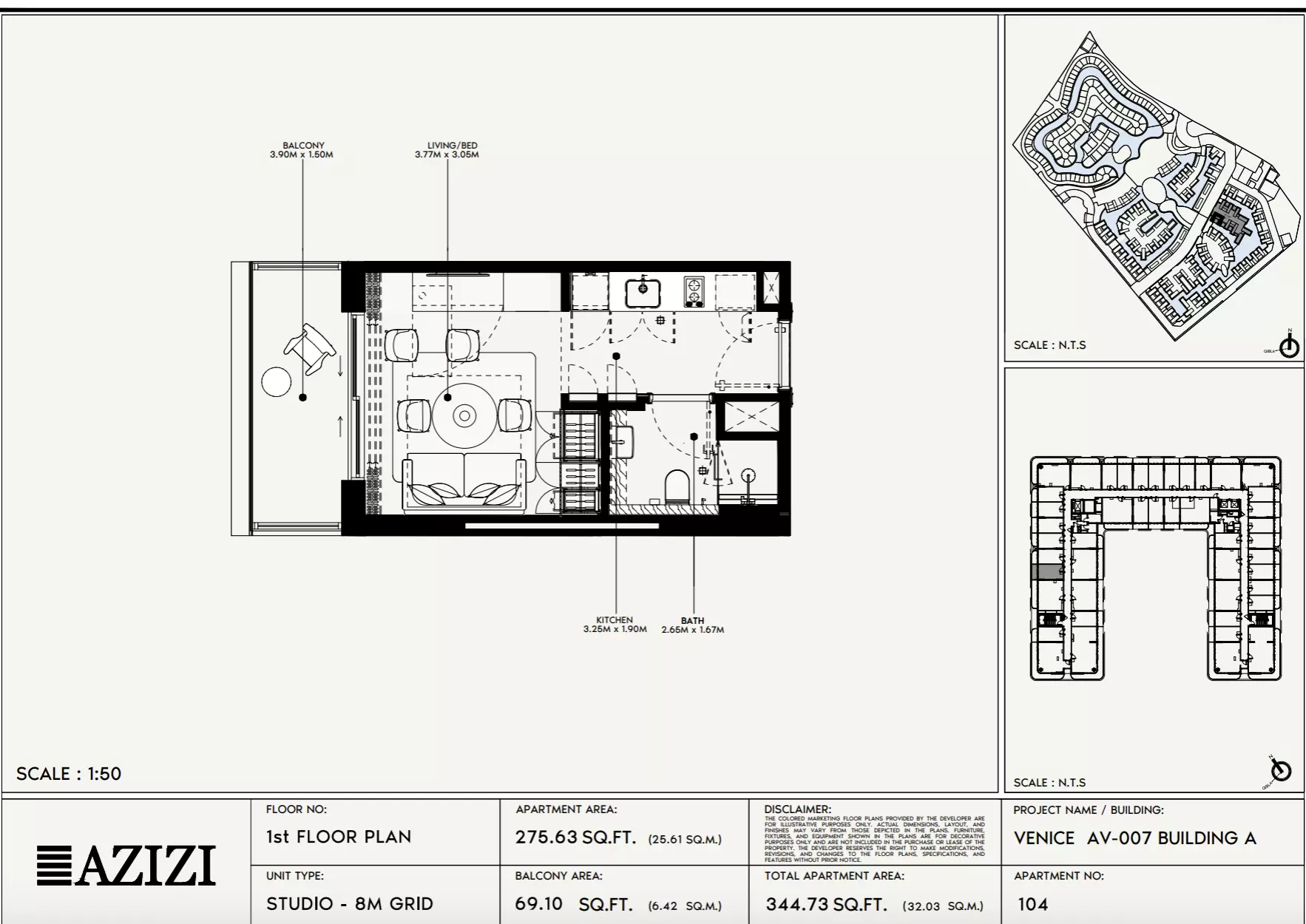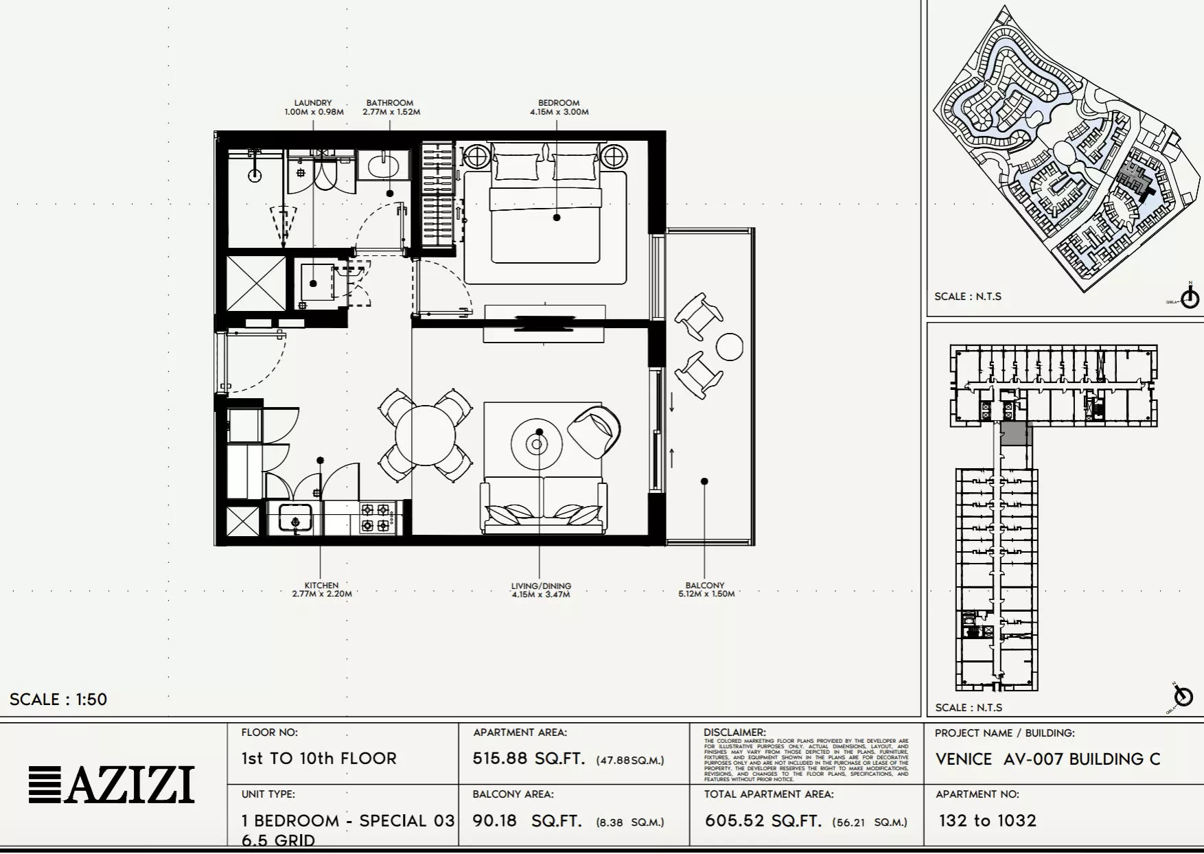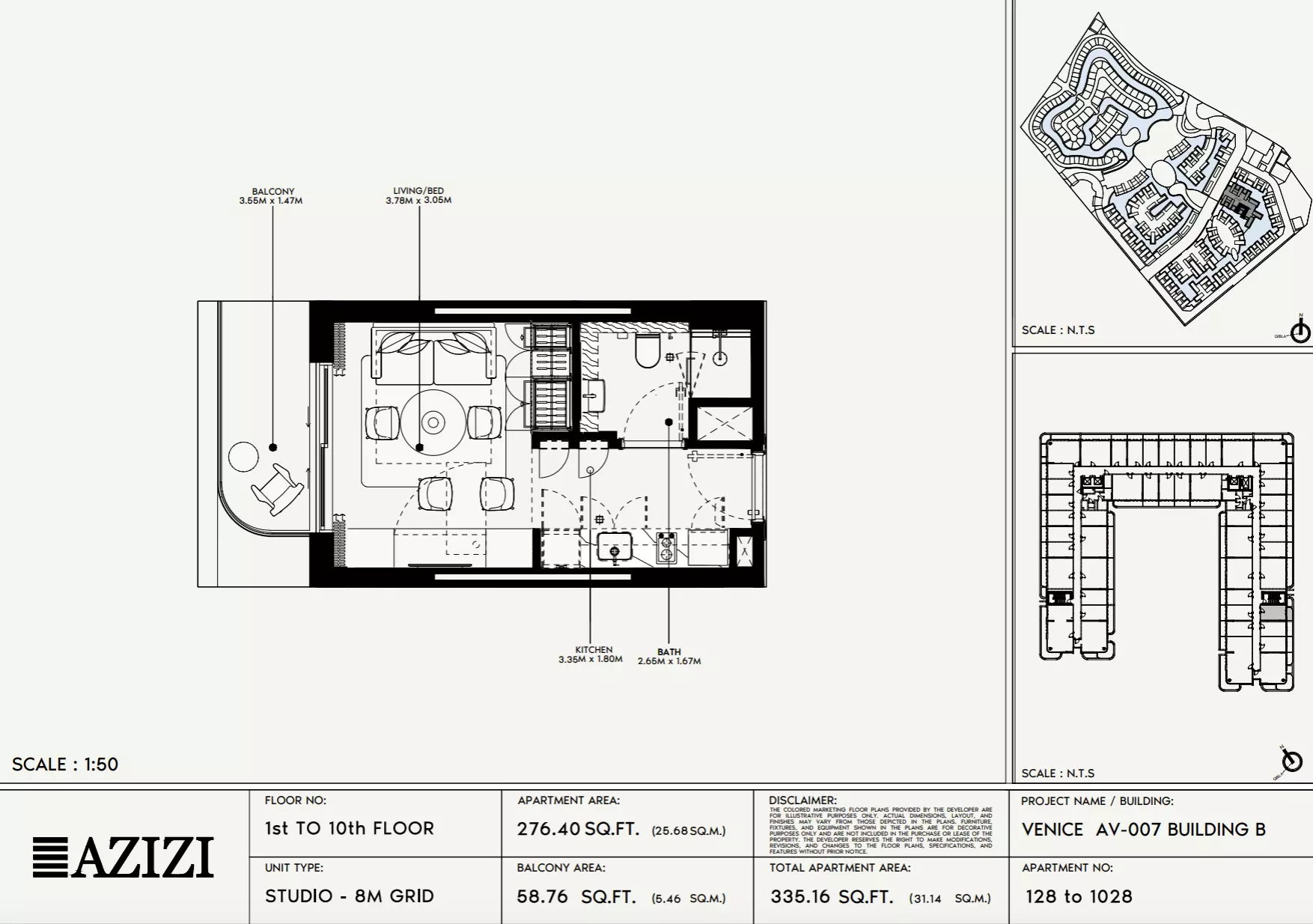 Azizi Venice 7 is an attractive investment opportunity, offering a unique blend of luxury, comfort, and practicality. Located in the rapidly developing Dubai South, it boasts excellent connectivity with proximity to key transportation hubs like Al Maktoum International Airport and Jebel Ali Port, making it ideal for both residents and businesses. The project’s elegant design and high-end finishes appeal to investors seeking premium properties at competitive prices. The surrounding area’s ongoing development, including leisure attractions and shopping centers, ensures a vibrant, community-focused lifestyle, adding to the project's potential for long-term growth and rental demand.