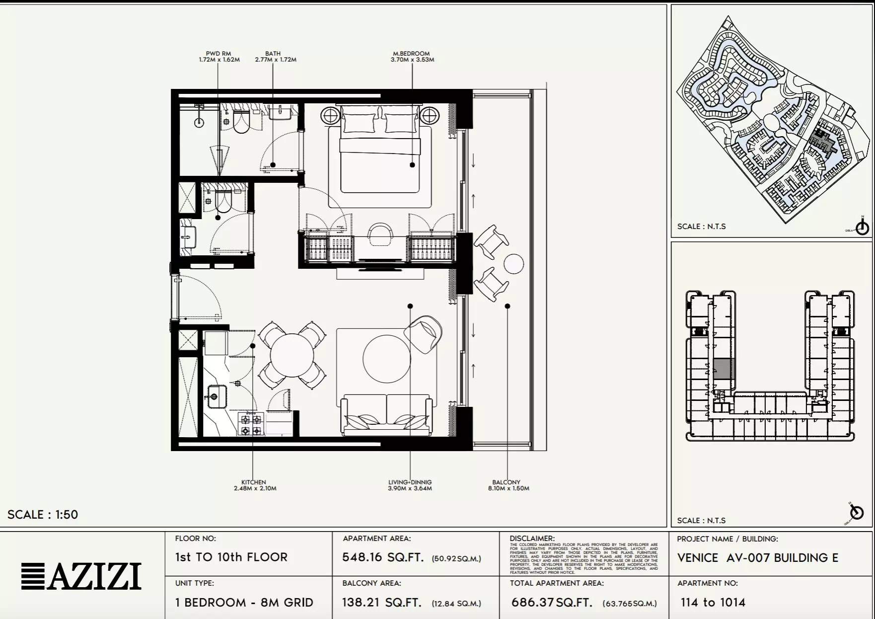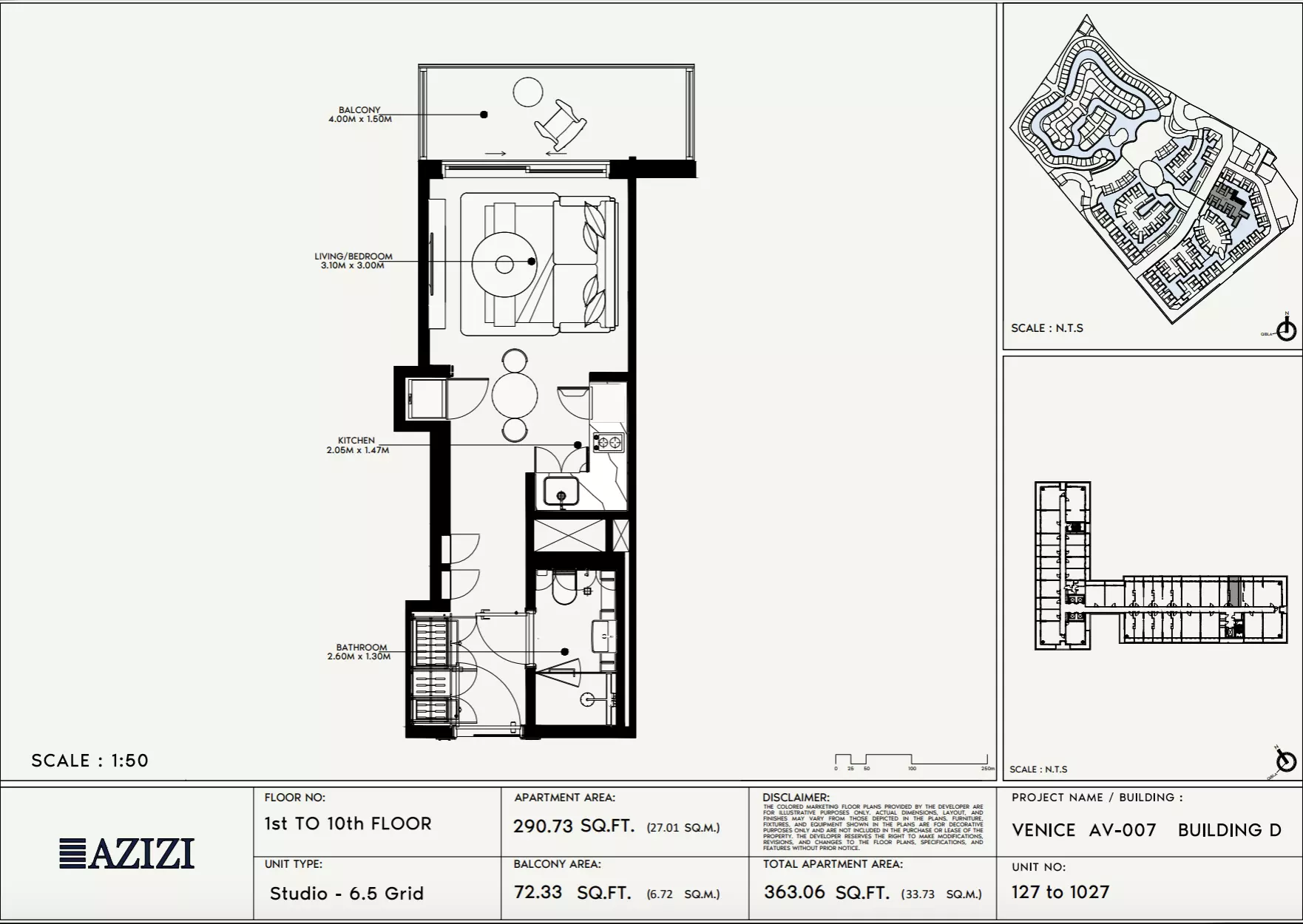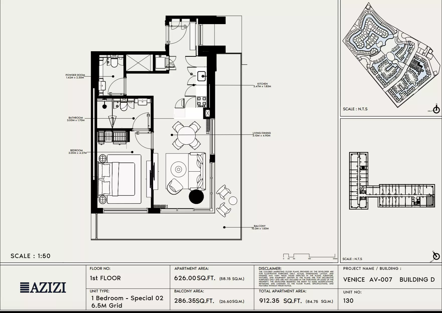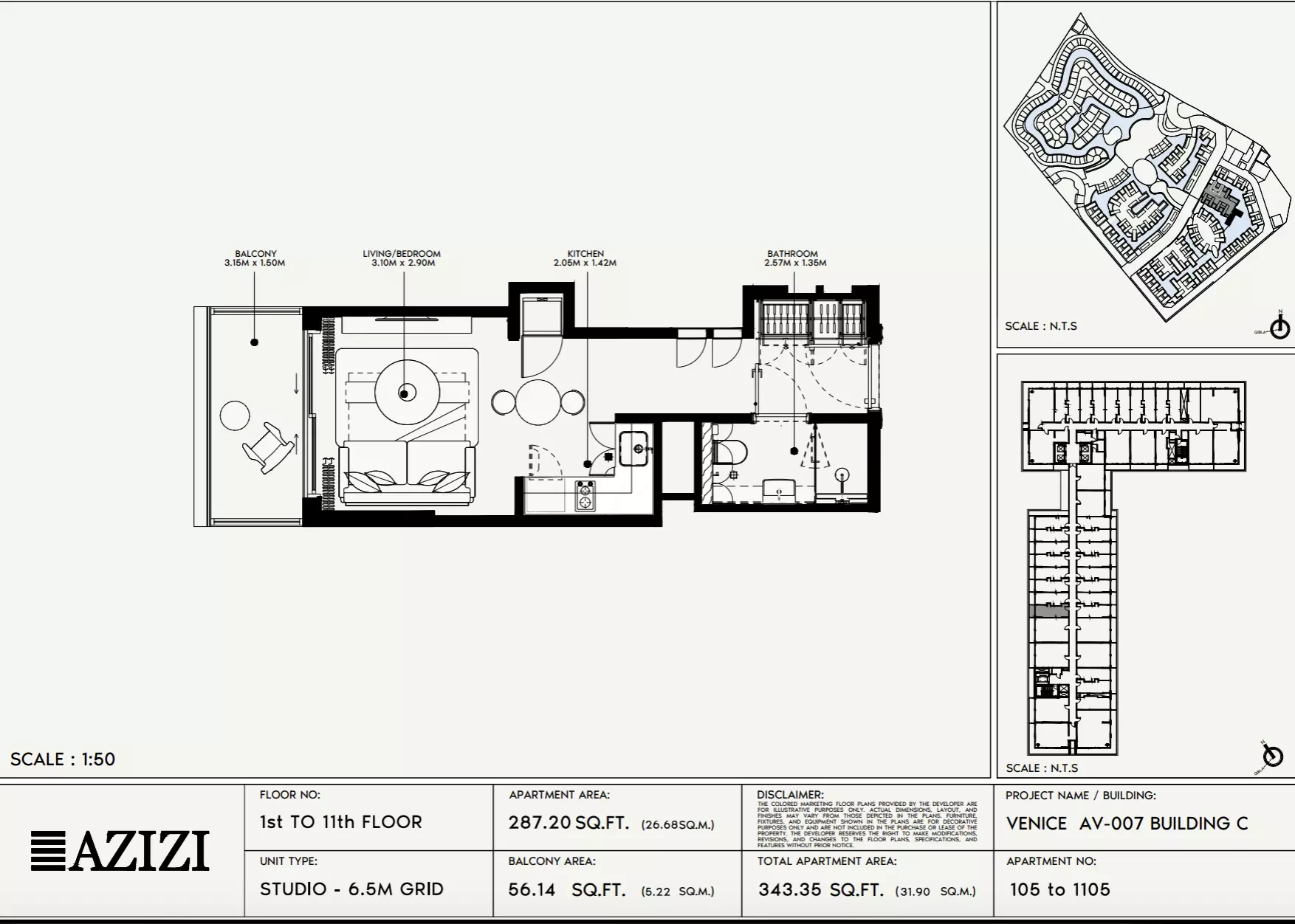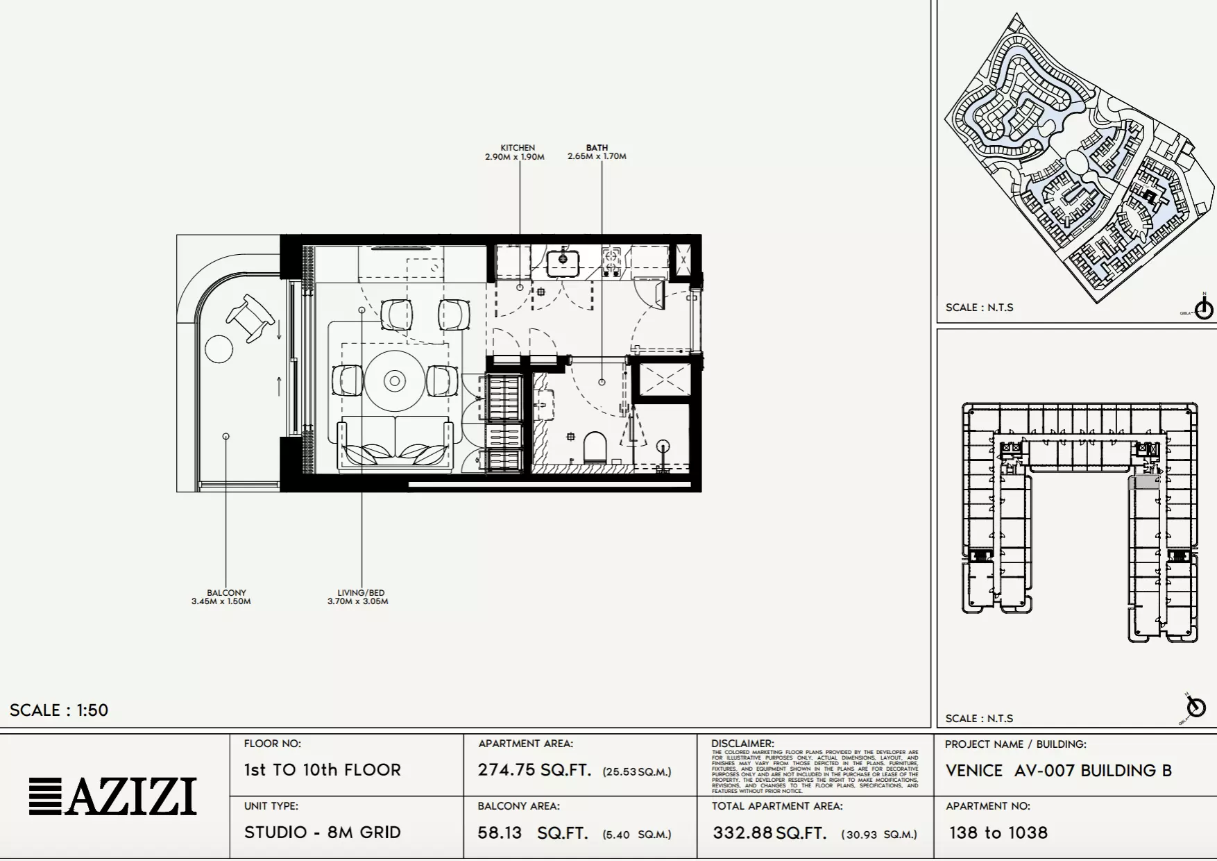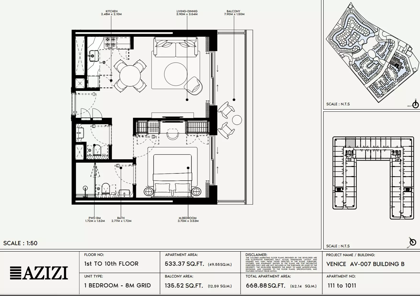 Azizi Venice 7 is an attractive investment opportunity, offering a unique blend of luxury, comfort, and practicality. Located in the rapidly developing Dubai South, it boasts excellent connectivity with proximity to key transportation hubs like Al Maktoum International Airport and Jebel Ali Port, making it ideal for both residents and businesses. The project’s elegant design and high-end finishes appeal to investors seeking premium properties at competitive prices. The surrounding area’s ongoing development, including leisure attractions and shopping centers, ensures a vibrant, community-focused lifestyle, adding to the project's potential for long-term growth and rental demand.