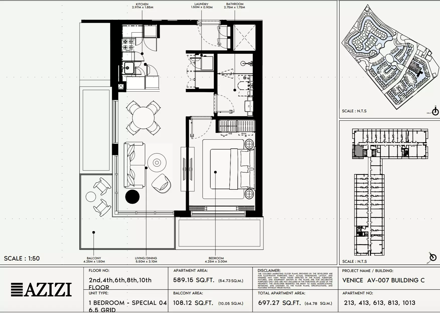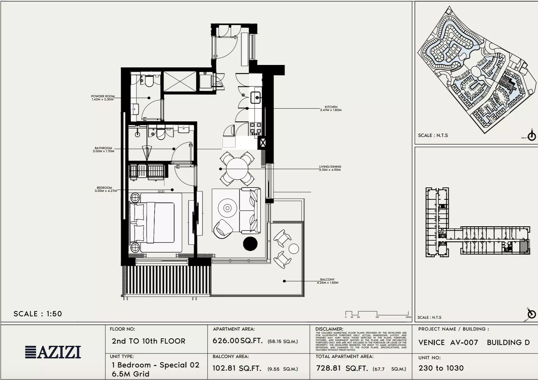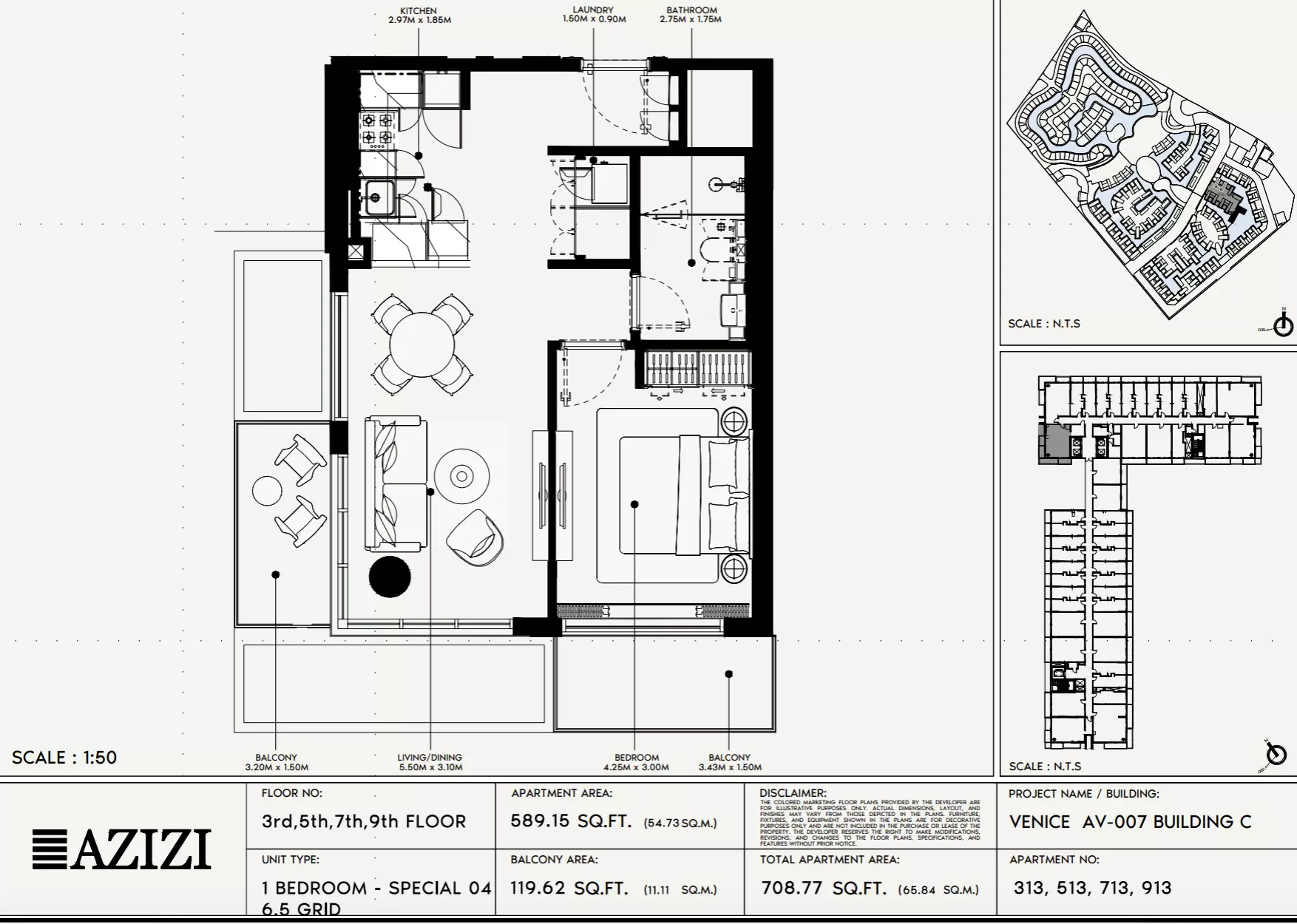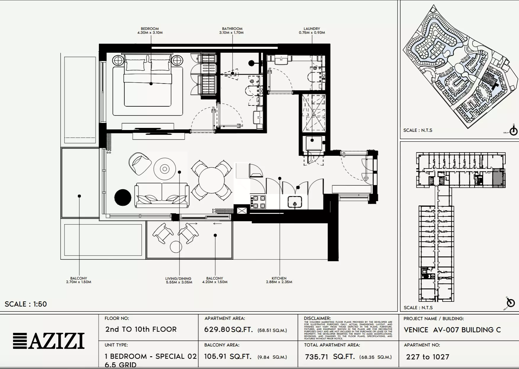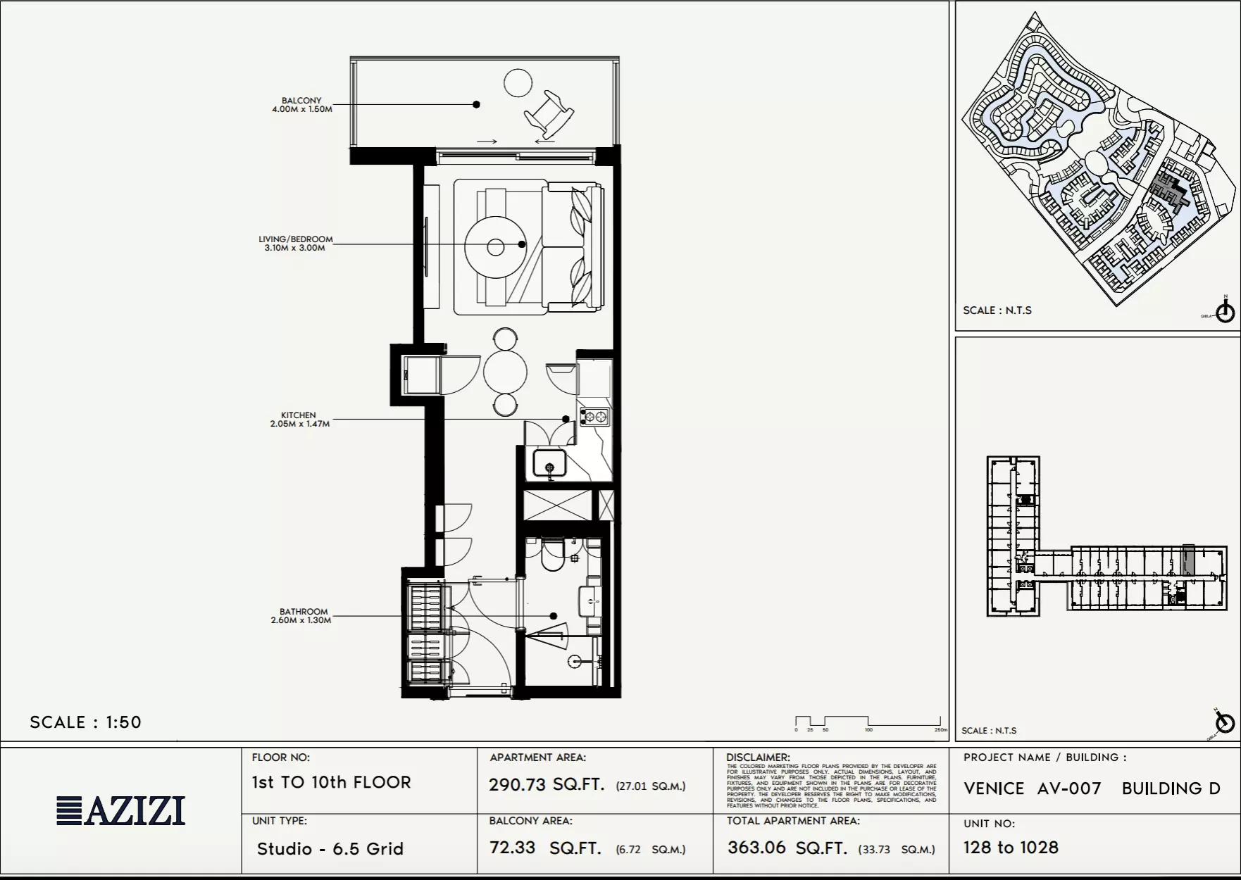 Azizi Venice 7 is an attractive investment opportunity, offering a unique blend of luxury, comfort, and practicality. Located in the rapidly developing Dubai South, it boasts excellent connectivity with proximity to key transportation hubs like Al Maktoum International Airport and Jebel Ali Port, making it ideal for both residents and businesses. The project’s elegant design and high-end finishes appeal to investors seeking premium properties at competitive prices. The surrounding area’s ongoing development, including leisure attractions and shopping centers, ensures a vibrant, community-focused lifestyle, adding to the project's potential for long-term growth and rental demand.