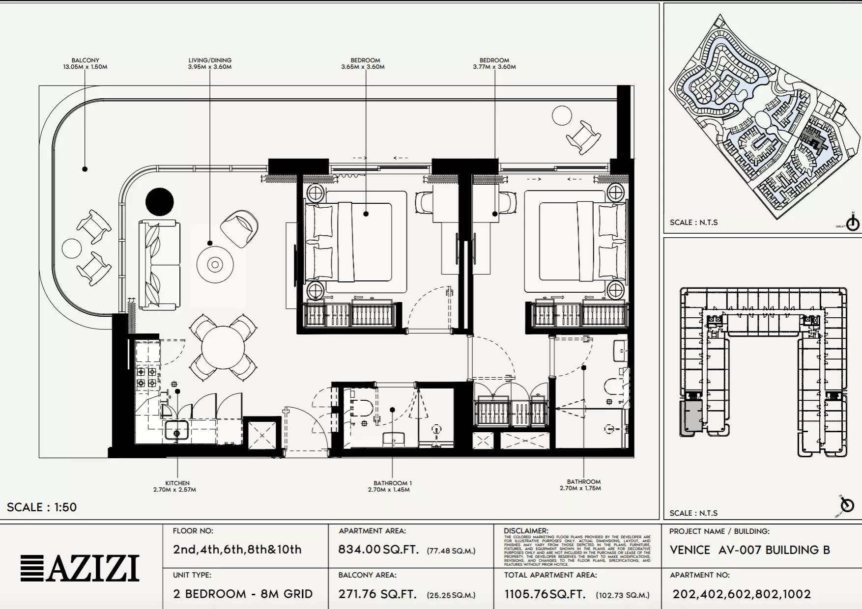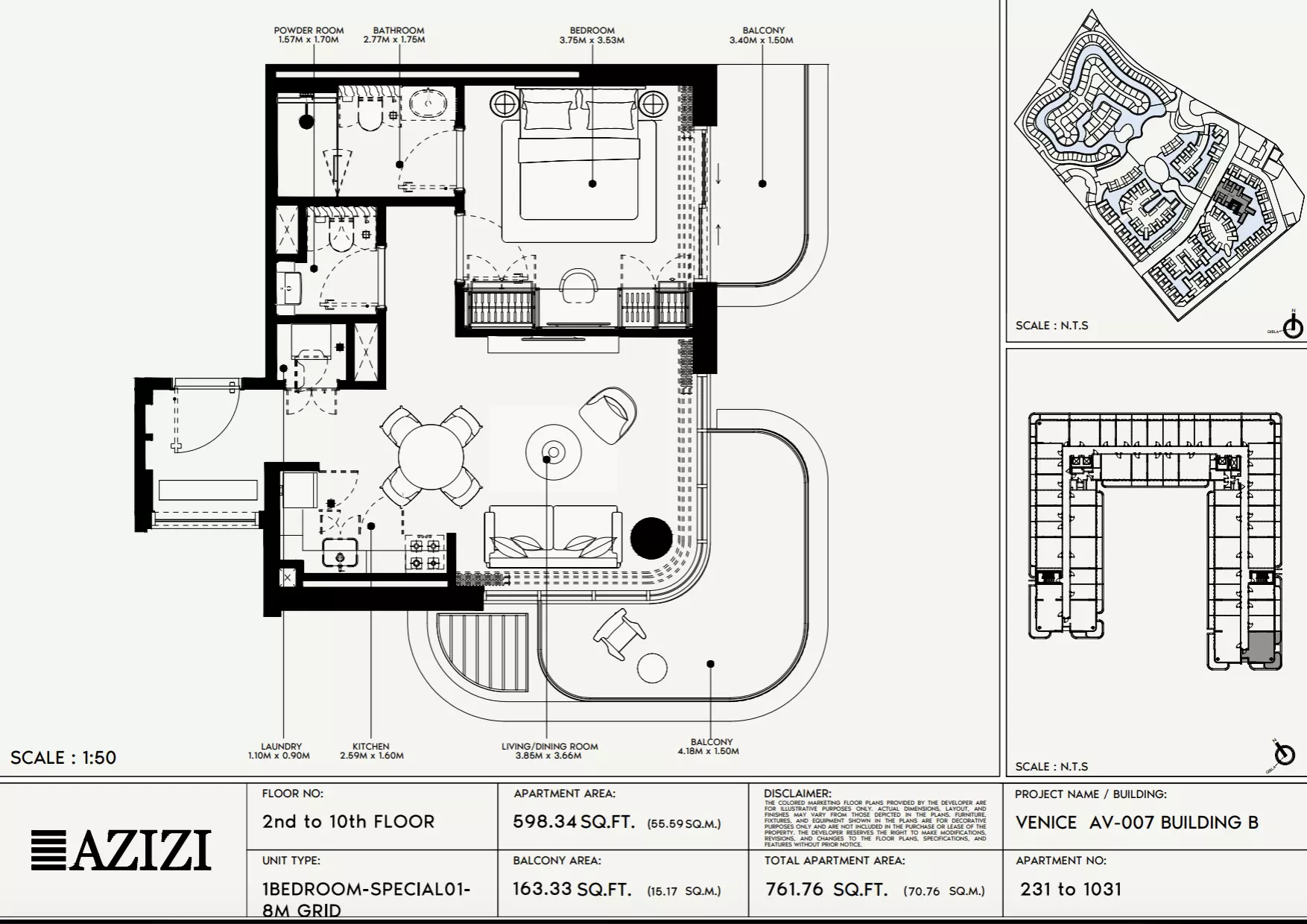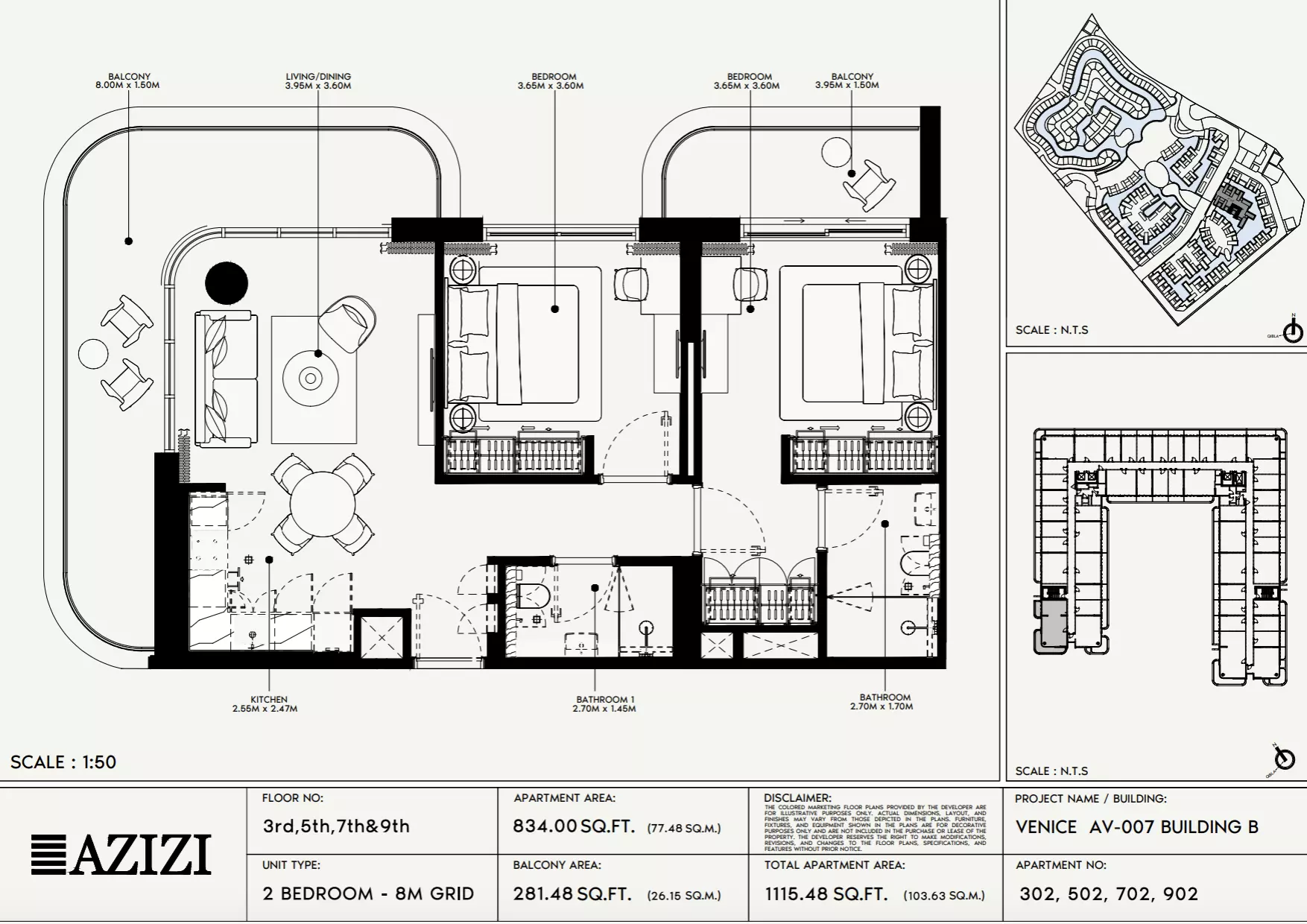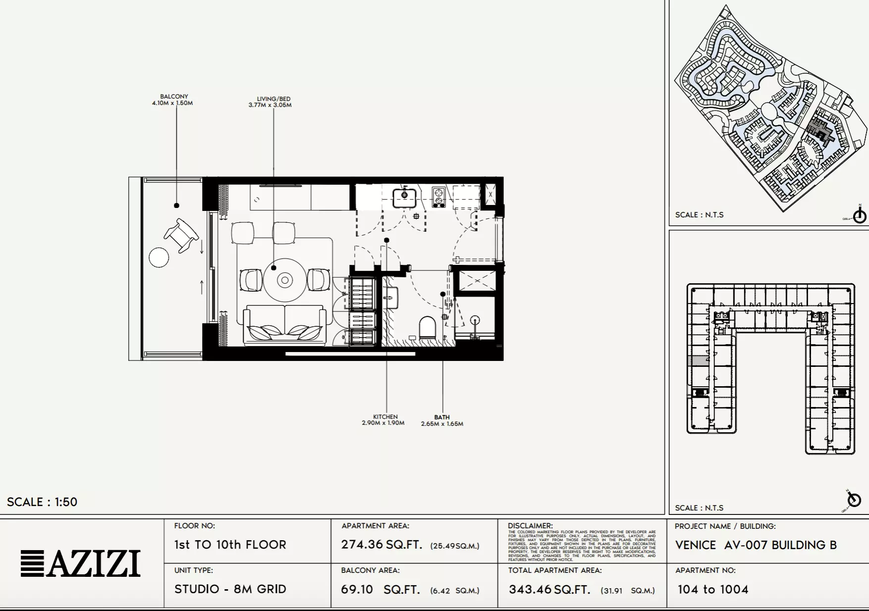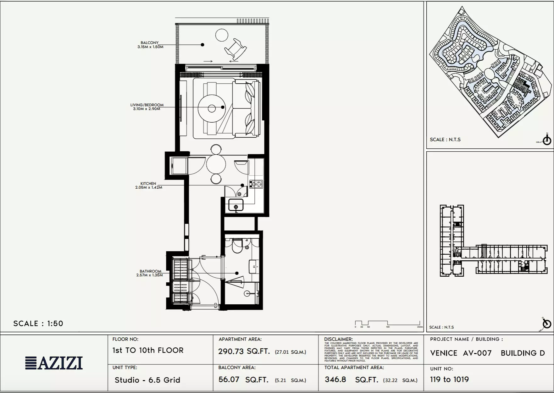 Azizi Venice 7 is an attractive investment opportunity, offering a unique blend of luxury, comfort, and practicality. Located in the rapidly developing Dubai South, it boasts excellent connectivity with proximity to key transportation hubs like Al Maktoum International Airport and Jebel Ali Port, making it ideal for both residents and businesses. The project’s elegant design and high-end finishes appeal to investors seeking premium properties at competitive prices. The surrounding area’s ongoing development, including leisure attractions and shopping centers, ensures a vibrant, community-focused lifestyle, adding to the project's potential for long-term growth and rental demand.
