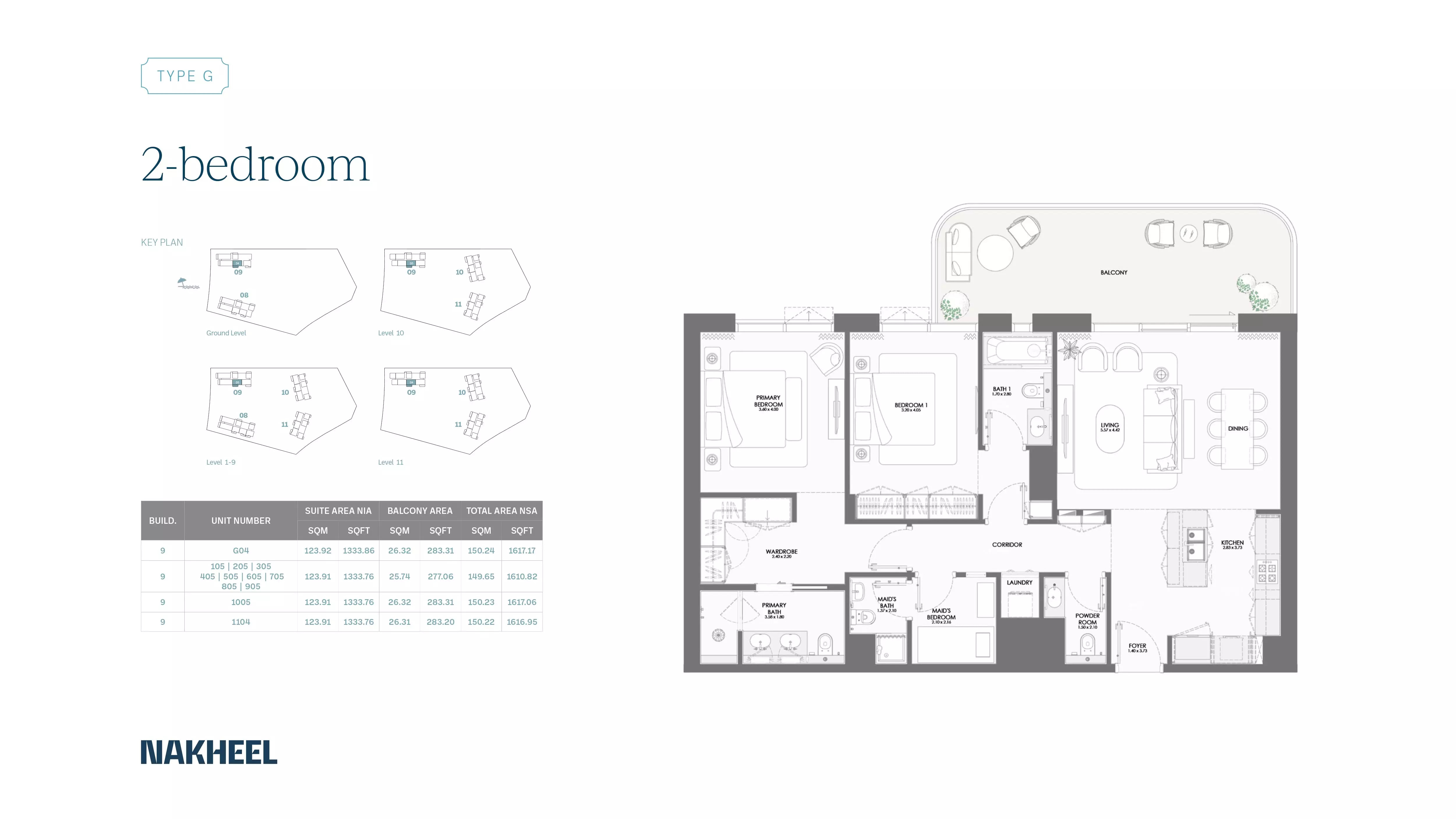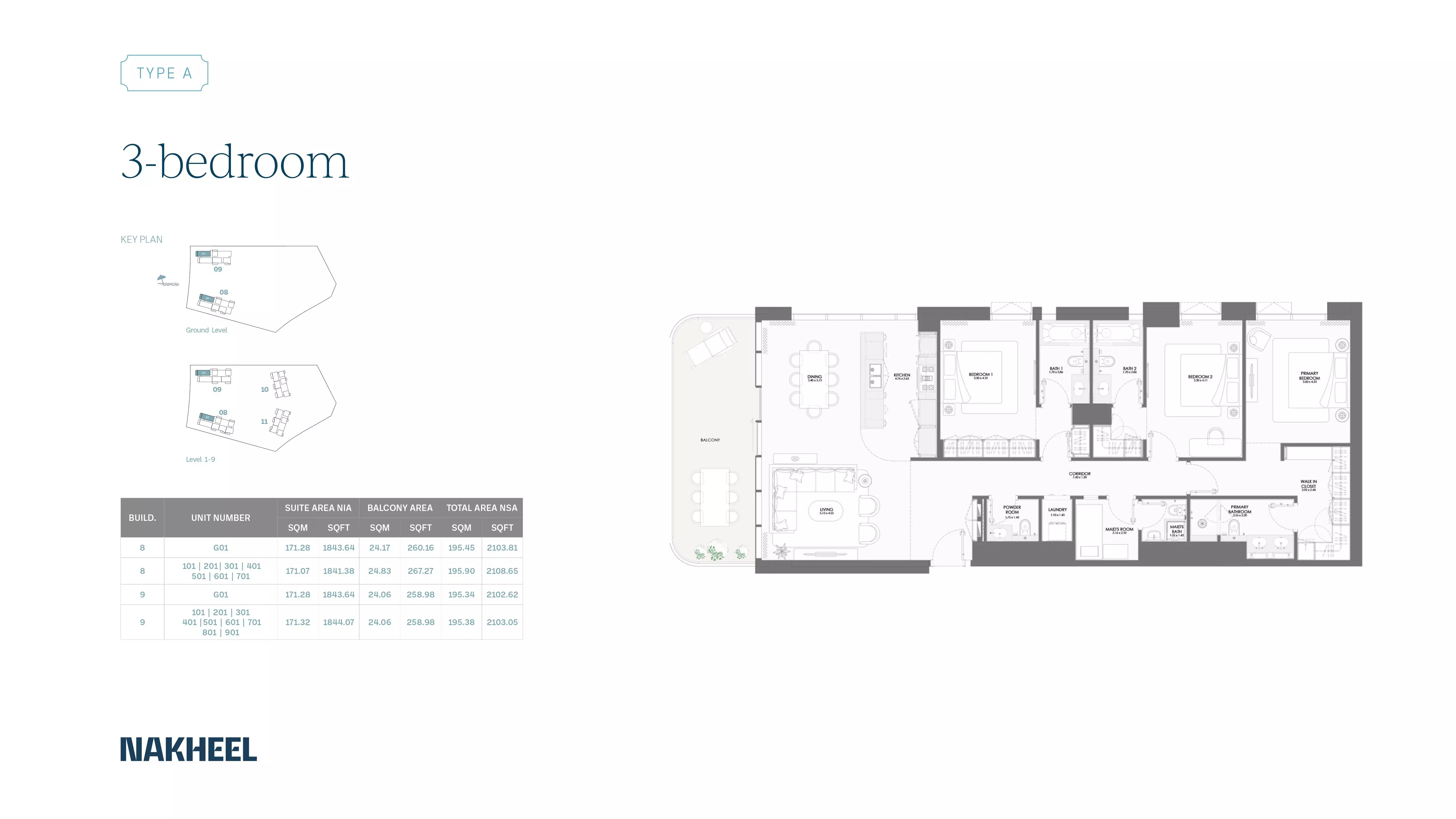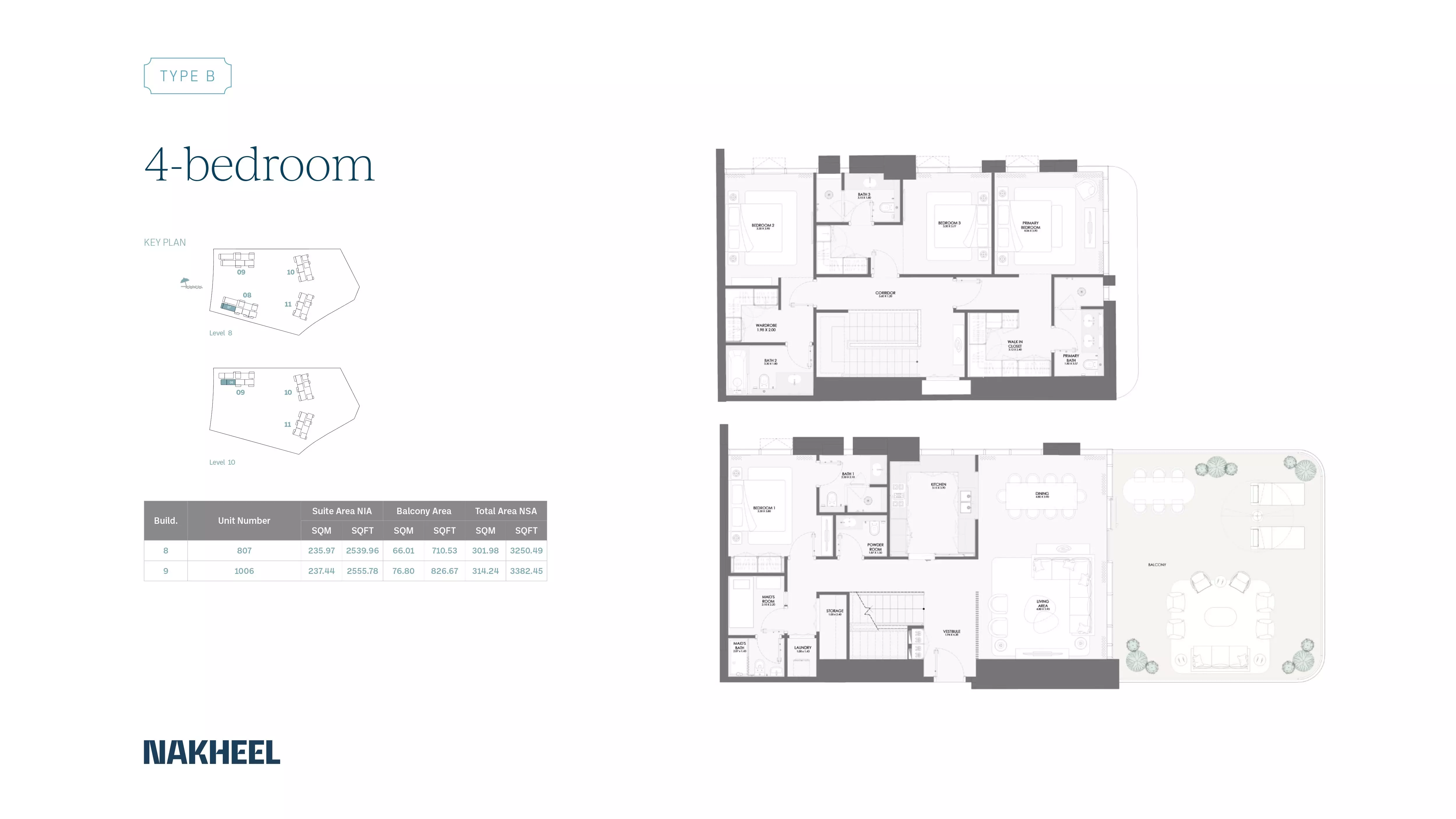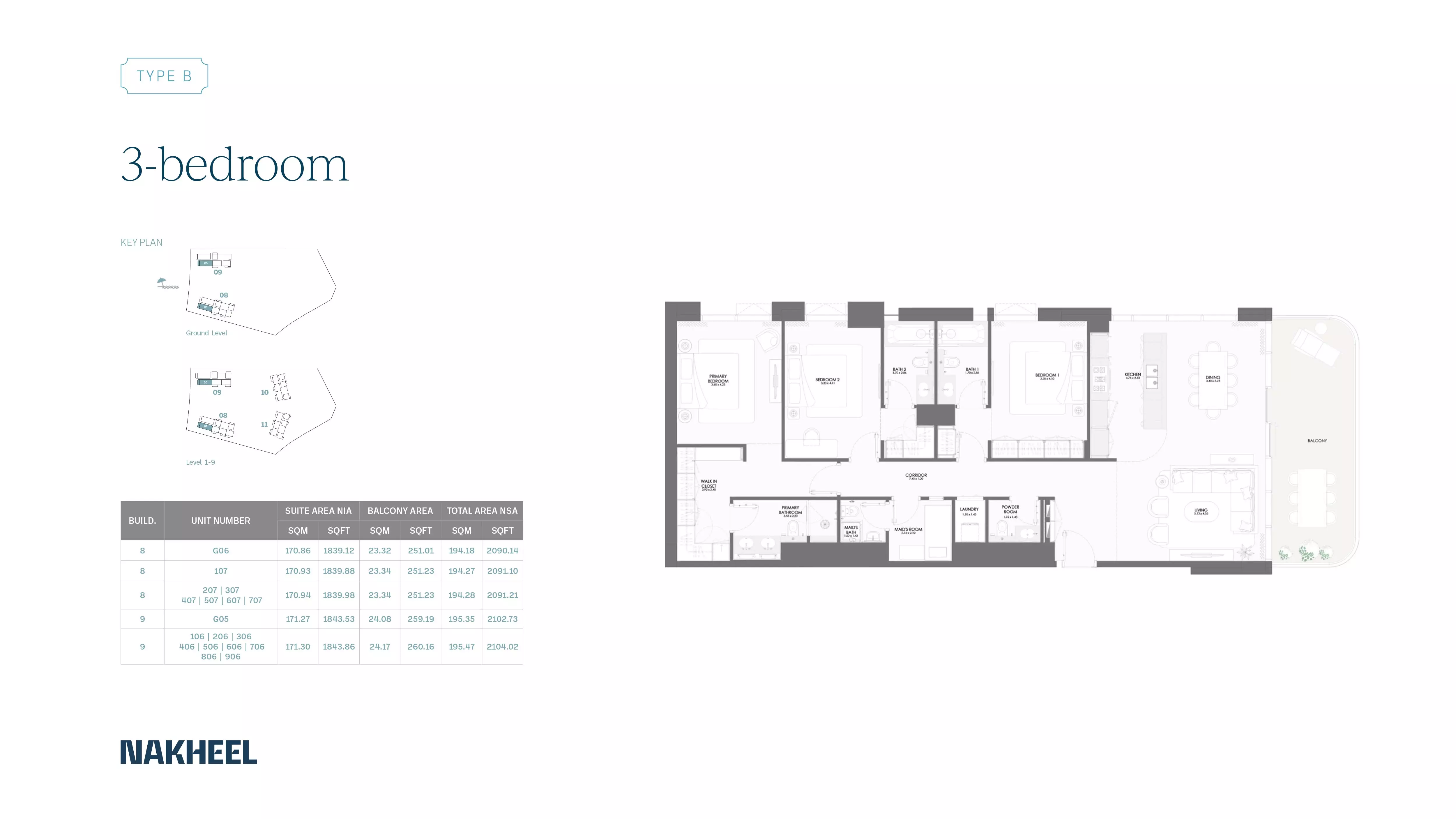 Bay Grove Residences Phase 2 by Nakheel offers a variety of spacious apartments with modern designs and premium finishes. The available housing options include: • 1 Bedroom apartments ranging from 865 to 971 sqft, starting at 1.9M AED. • 2 Bedroom apartments ranging from 1308 to 1617 sqft, starting at 2.7M AED. • 3 Bedroom apartments ranging from 2104 to 2108 sqft, starting at 4.4M AED. • 4 Bedroom apartments ranging from 3371 to 3382 sqft, starting at 8.2M AED. These apartments are designed to cater to various family sizes and offer a luxurious living experience with stunning views and premium amenities.