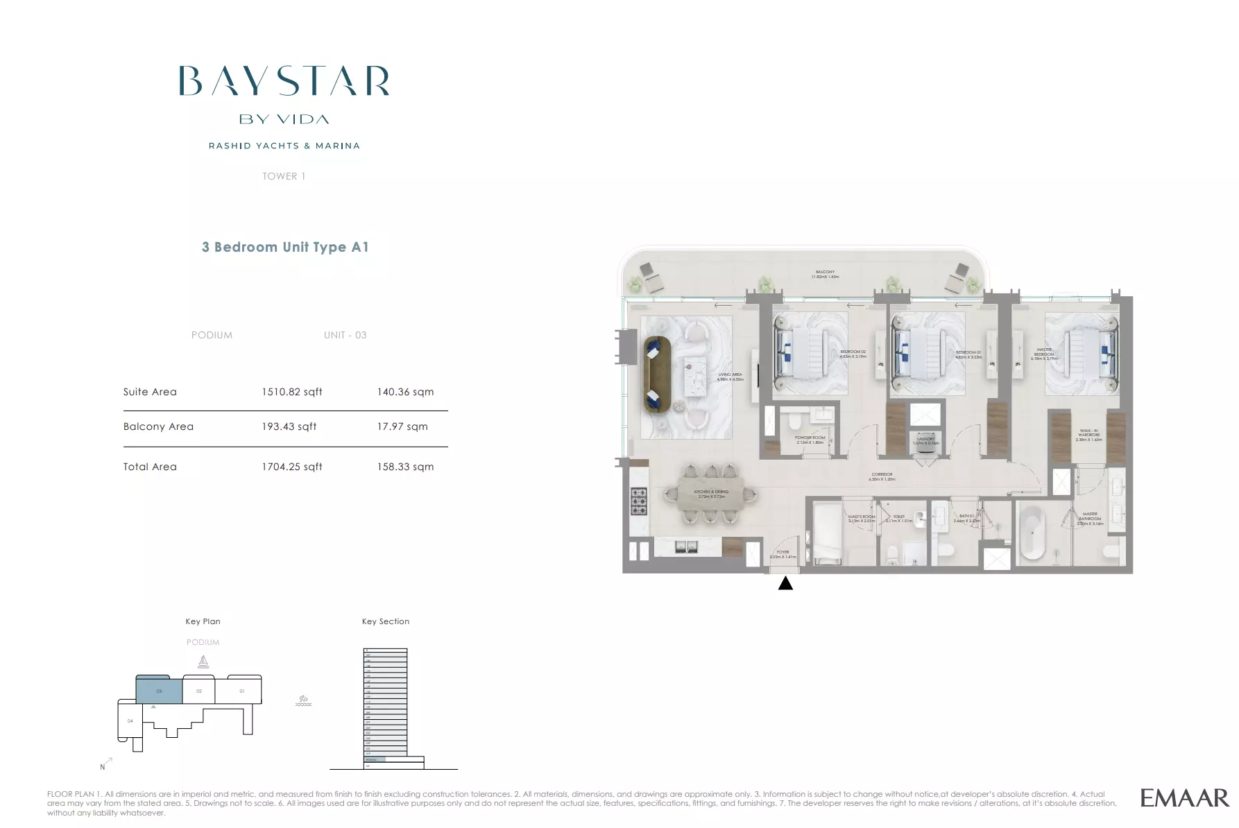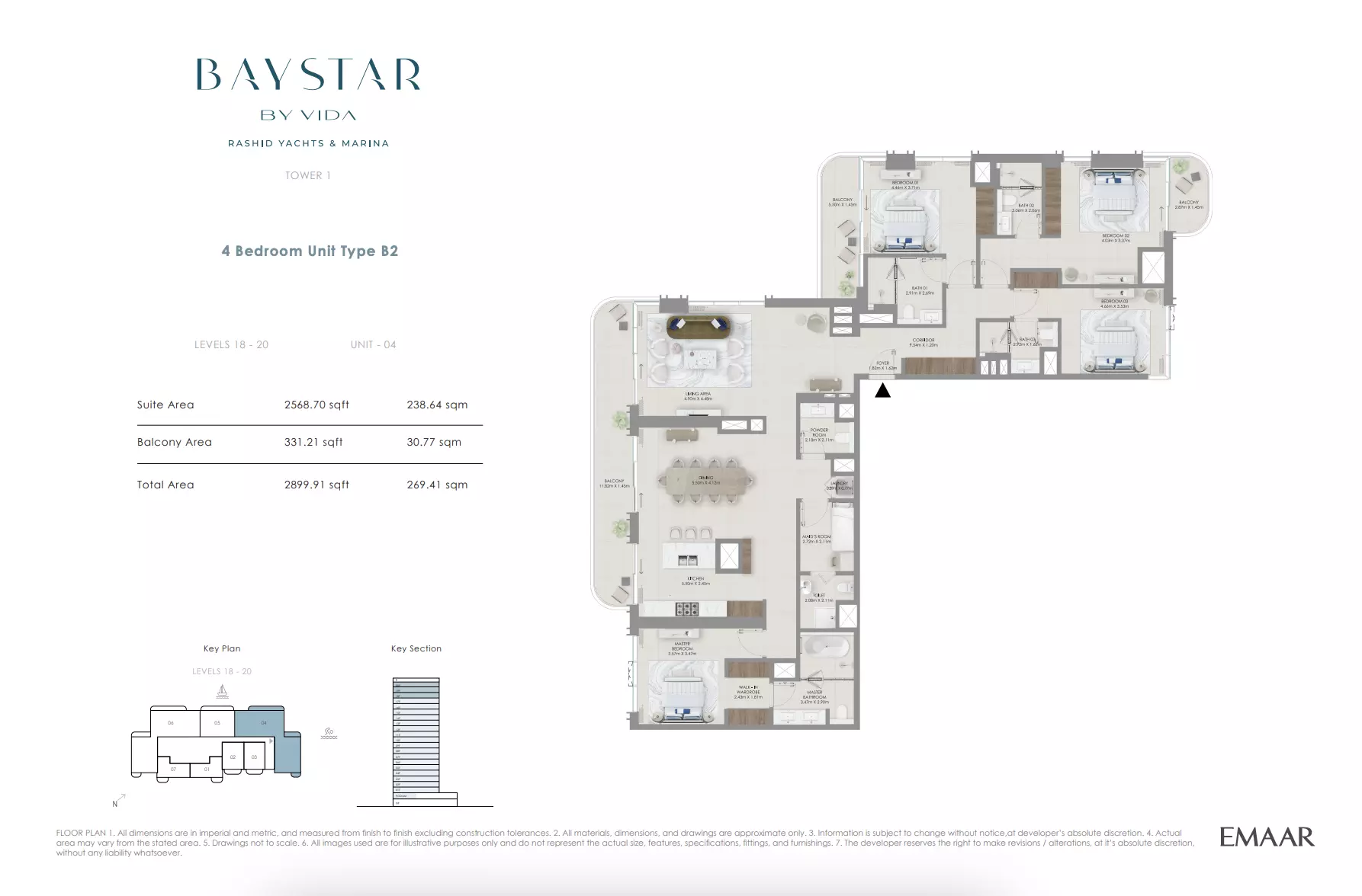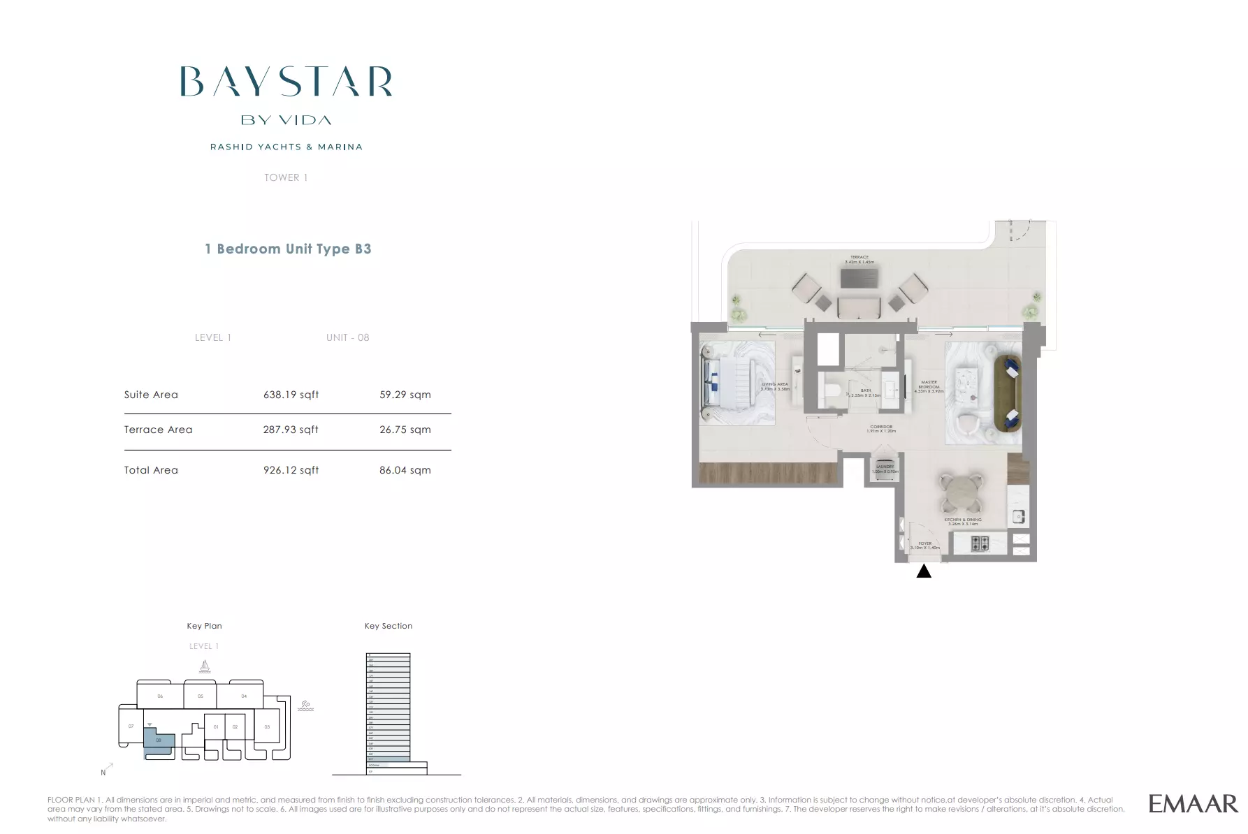 Baystar by Vida is developed by Emaar Properties, a leading real estate developer in the UAE known for creating premium residential communities and landmark developments that define Dubai’s skyline.