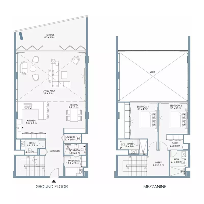 Beach House offers a selection of modern townhouses designed to provide both space and comfort. Buyers can choose between two-bedroom and three-bedroom layouts, each built with practical floor plans and premium finishes. The two-bedroom townhouses start from 5.4 million AED and offer a built-up area of 2,323 square feet. For larger families or those seeking more space, the three-bedroom townhouses are available from 6.2 million AED with a built-up area of 2,543 square feet. These housing options combine functional design with prime location, giving residents both value and convenience within Mina Al Arab, Ras Al Khaimah.