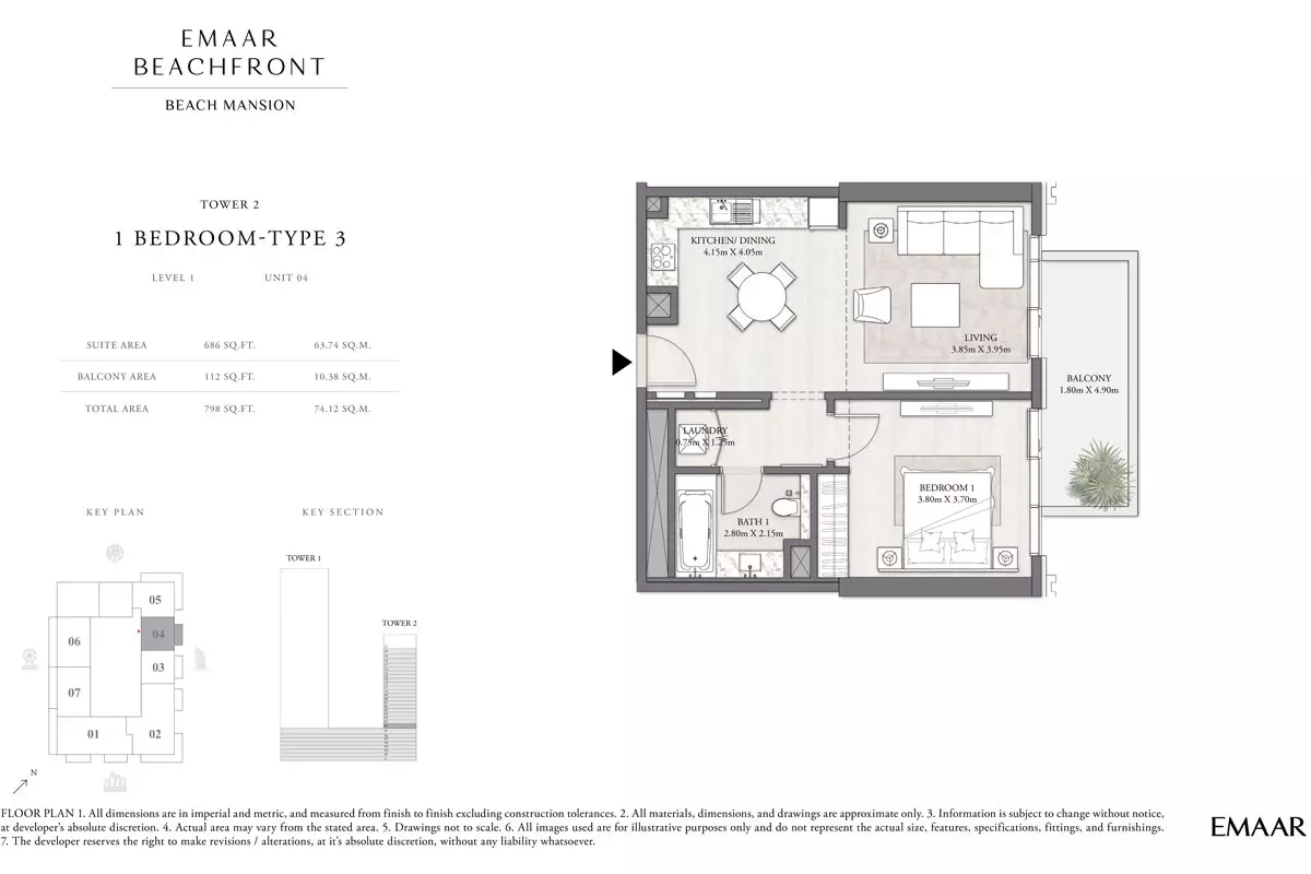 | Tower 2 Type 3, Level 1, unit 04 | 798.00 | View |