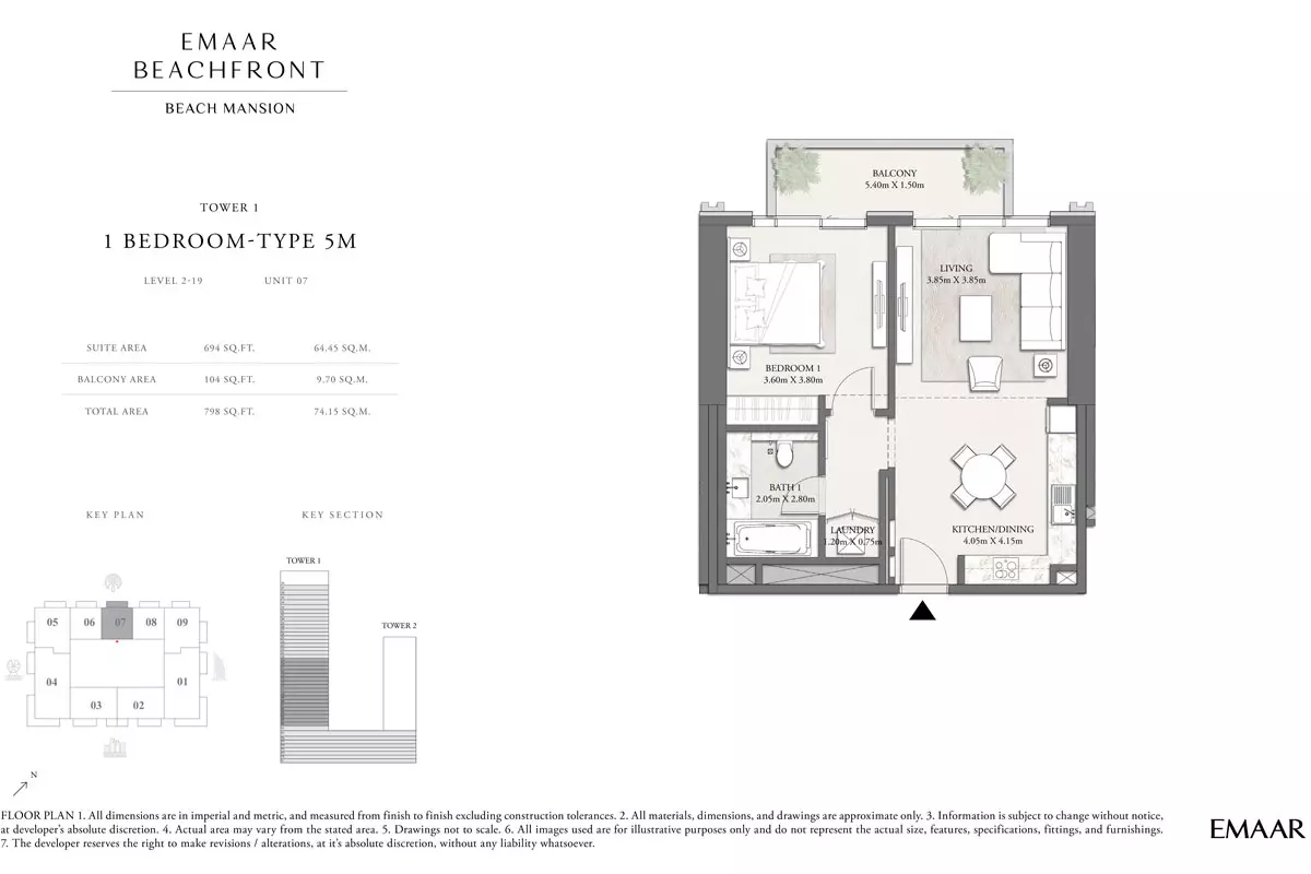 | Tower 1 Type 5M, Level 2-19, unit 07 | 798.00 | View |