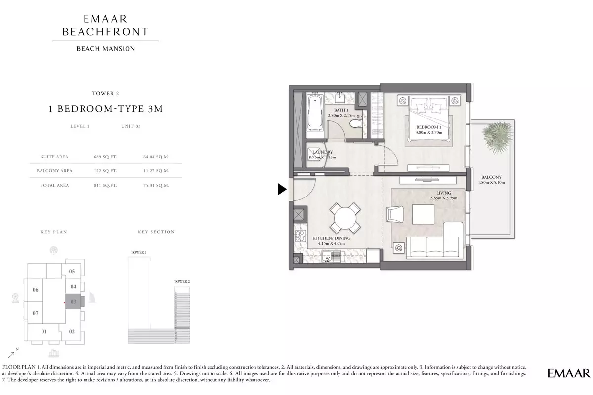 | Tower 2 Type 3M, Level 1, unit 03 | 811.00 | View |