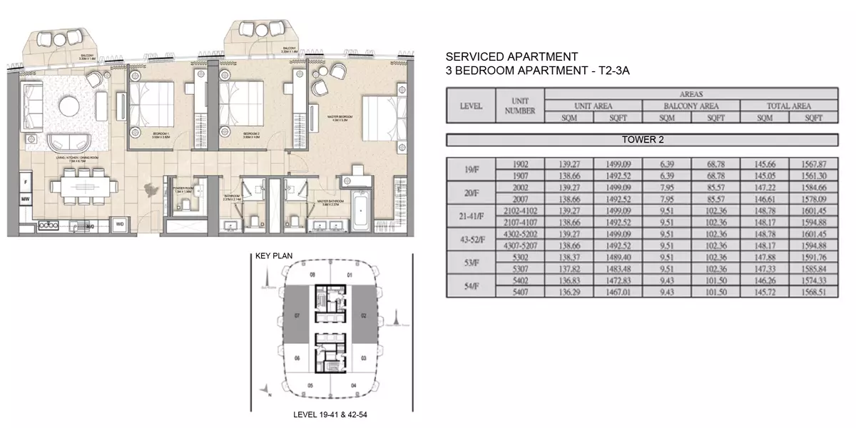 | Tower 1 Type 3M, Level 2-19, unit 09 | 1,266.00 | View |