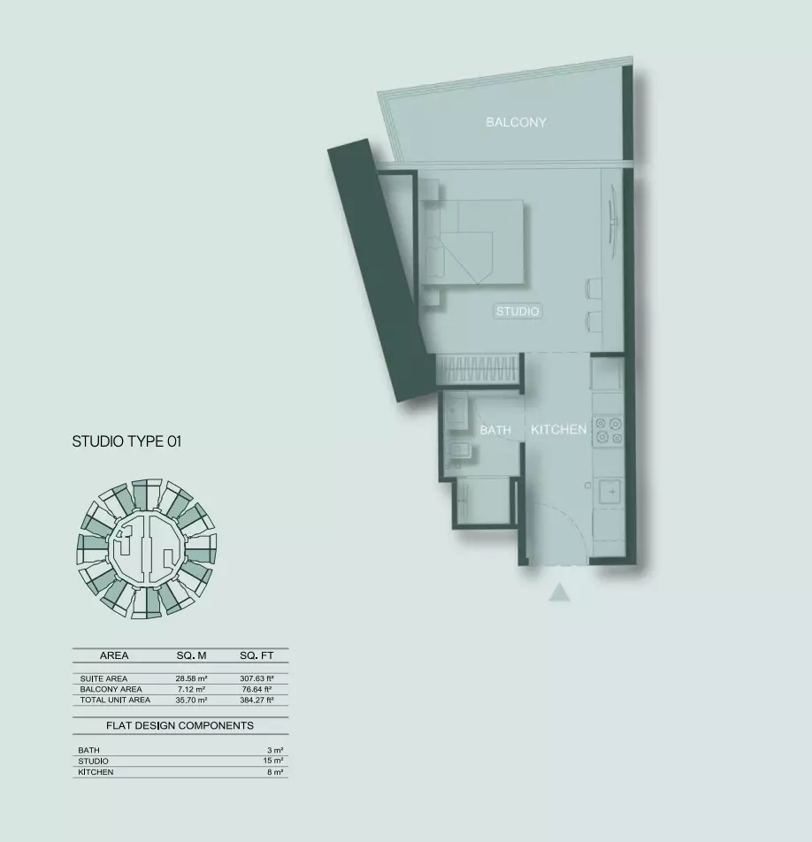 Binghatti Circle presents a variety of housing options designed to meet different lifestyle needs, with thoughtfully planned layouts and competitive pricing. The project offers studios, one-bedroom, two-bedroom, and three-bedroom apartments, each crafted with efficient space utilization. Studios start from 675,000 AED and range between 373 to 404 sqft, making them suitable for singles or investors. One-bedroom units are available from 1,000,000 AED, with sizes spanning 762 to 765 sqft, ideal for couples or professionals. For families, two-bedroom apartments are offered from 1,600,000 AED, sized between 1163 to 1178 sqft, while larger households can choose three-bedroom apartments starting at 2,300,000 AED, with 1552 sqft of living space. These options ensure buyers have a wide selection based on budget and lifestyle.
