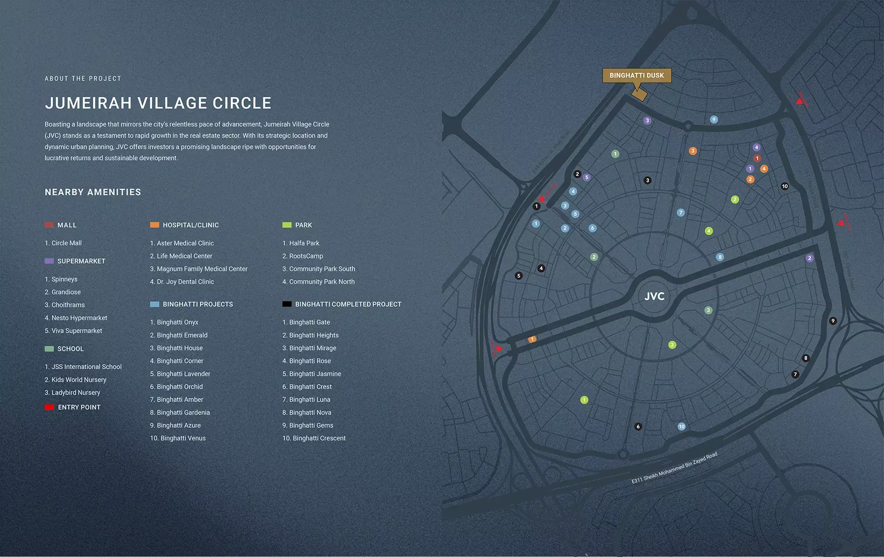 Binghatti Dusk offers a strong investment opportunity with its modern design and prime location in Jumeirah Village Circle. Its connectivity, luxury features, and proximity to key attractions in Dubai make it highly attractive for long-term growth.