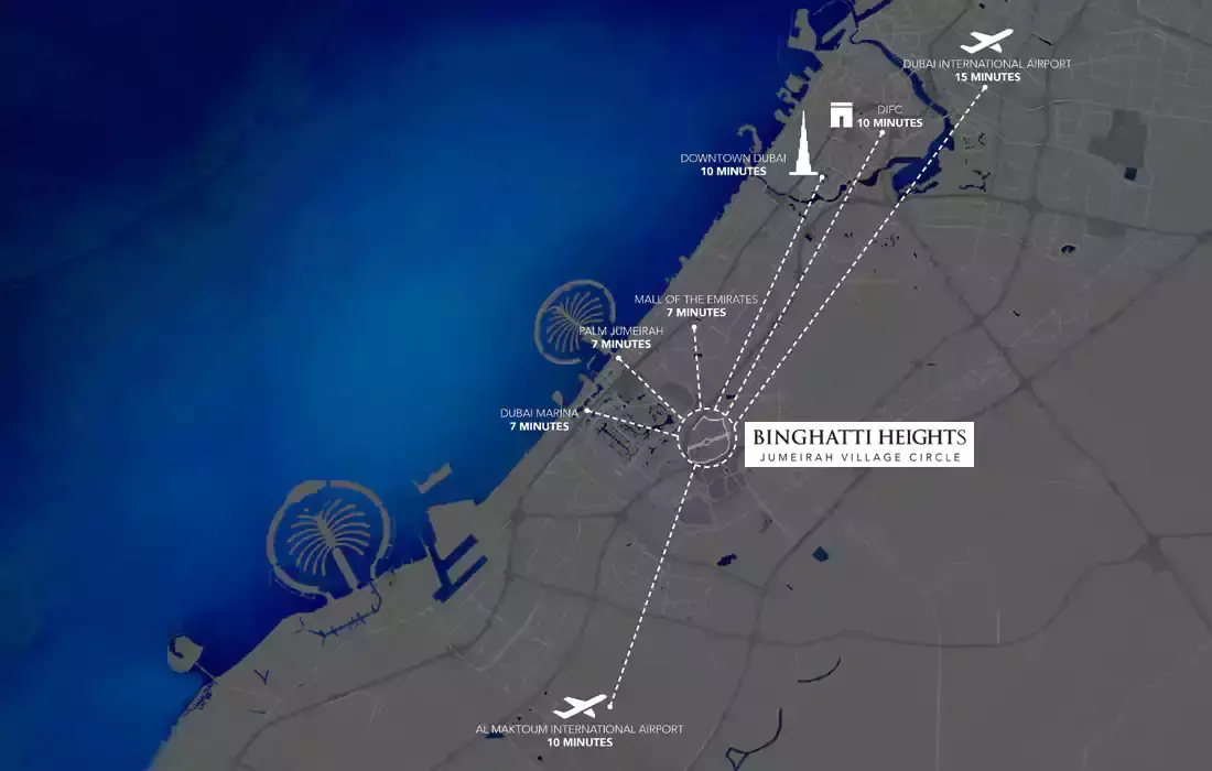 Binghatti Heights offers an exceptional investment opportunity in the heart of Jumeirah Village Circle (JVC), Dubai. Its prime location ensures easy access to key attractions such as Dubai Marina, Dubai Sports City, and Dubai Autodrome. The development features a distinctive design, luxurious living spaces, and world-class facilities, including a swimming pool, gym, and playground. Its proximity to retail and entertainment venues like Al Khail Avenue and The Circle Mall adds to its appeal. Binghatti Heights promises an unparalleled living experience, making it an ideal choice for investors seeking high rental yields and long-term value in a thriving area.