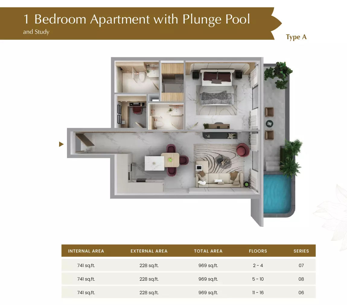 | 1 Bedroom with study and Plunge Pool-Type A | 969.00 | View |