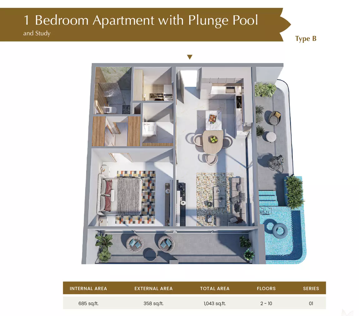 | 1 Bedroom with study and Plunge Pool-Type B | 1,043.00 | View |