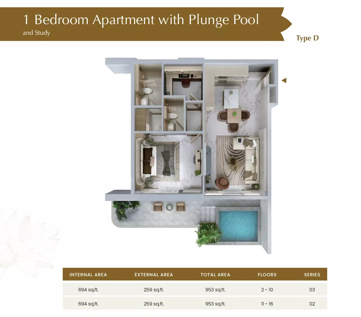 | 1 Bedroom with study and Plunge Pool-Type D | 953.00 | View |