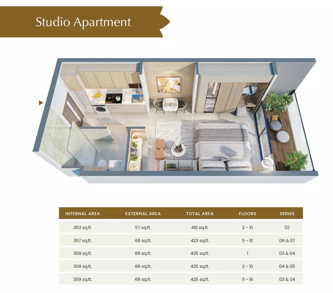 | 1 Bedroom with study-Type A | 1,038.00 | View |