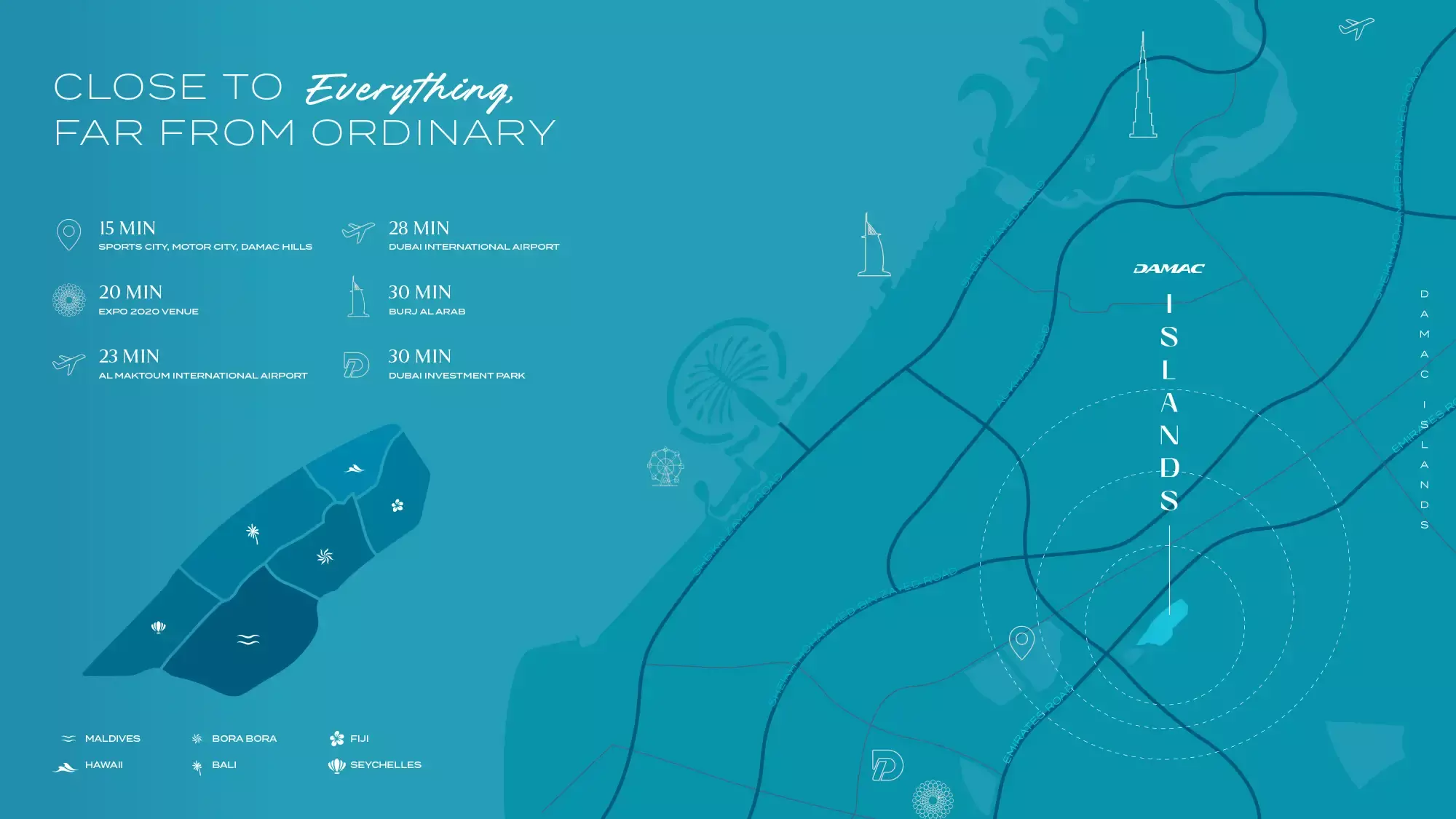 It is located in DAMAC Islands, Dubai, offering exclusive waterfront living with direct beach access.