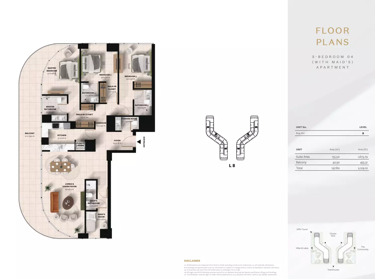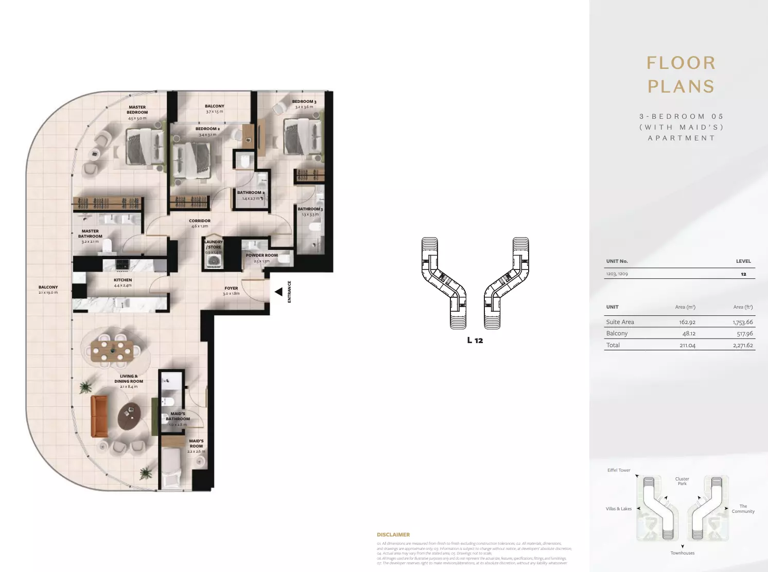 Cascada offers a range of modern apartment options designed for various lifestyles and space needs. The development includes 1, 2, and 3-bedroom apartments, each thoughtfully planned for comfort and functionality. • 1-bedroom units start at AED 872,000, with sizes around 760 sq. ft. • 2-bedroom apartments are priced from AED 1.2 million, ranging in size from 1,084 to 1,753 sq. ft. • 3-bedroom units begin at AED 1.7 million, offering larger spaces between 1,534 and 2,812 sq. ft. These apartments combine efficient layouts, spacious interiors, and contemporary finishes, making them suitable for both residents and investors seeking value and quality.