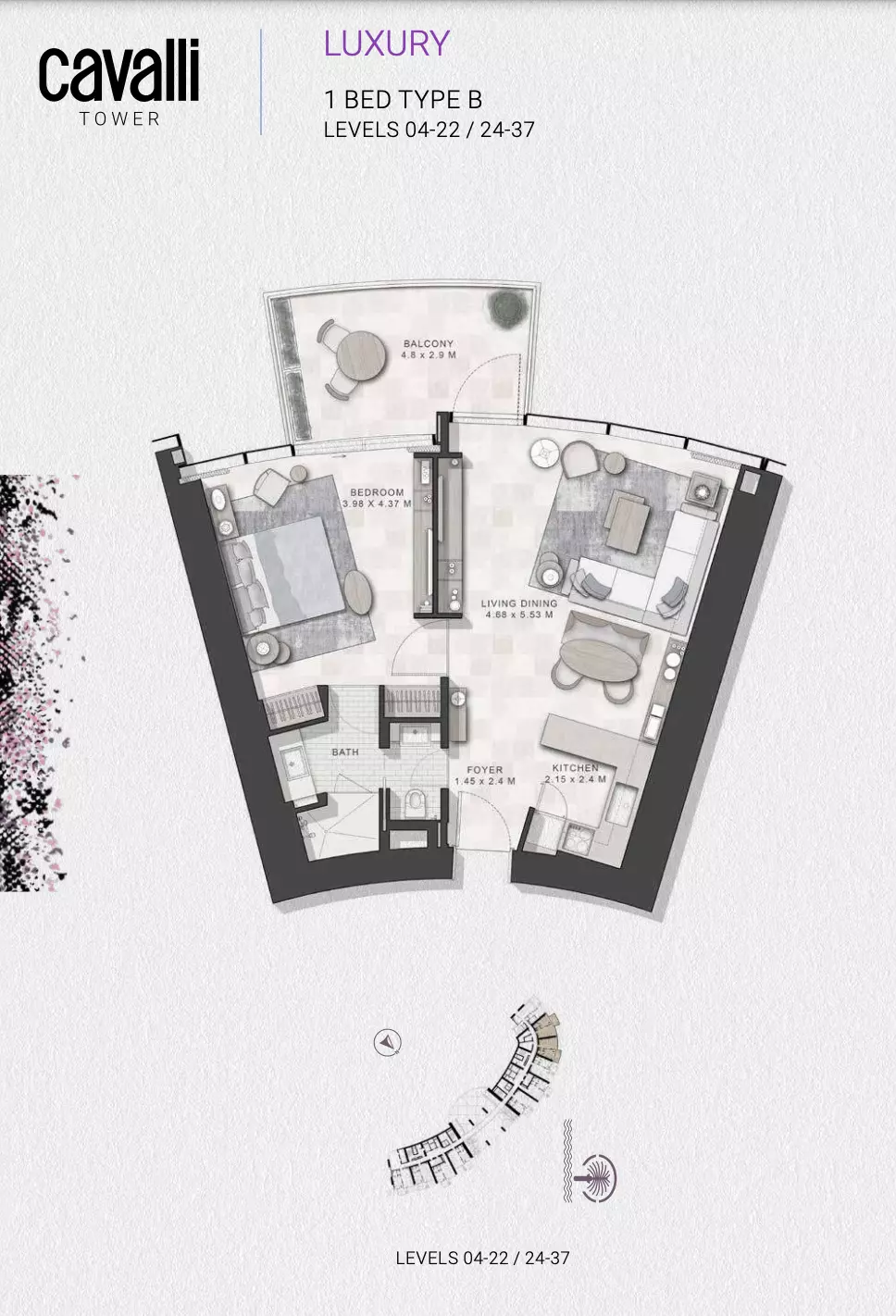Cavalli Tower is a strong investment due to its iconic location in Dubai Marina and exceptional design by Shaun Killa. It provides unparalleled exclusivity and sophistication, ensuring high value appreciation in Dubai’s competitive market.