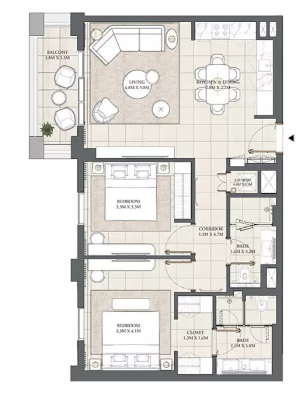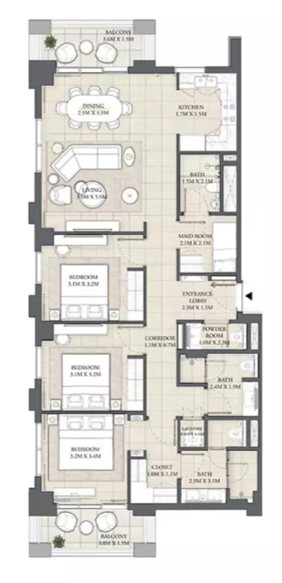 The starting price of Cedar Creek Beach is 3.4M AED.