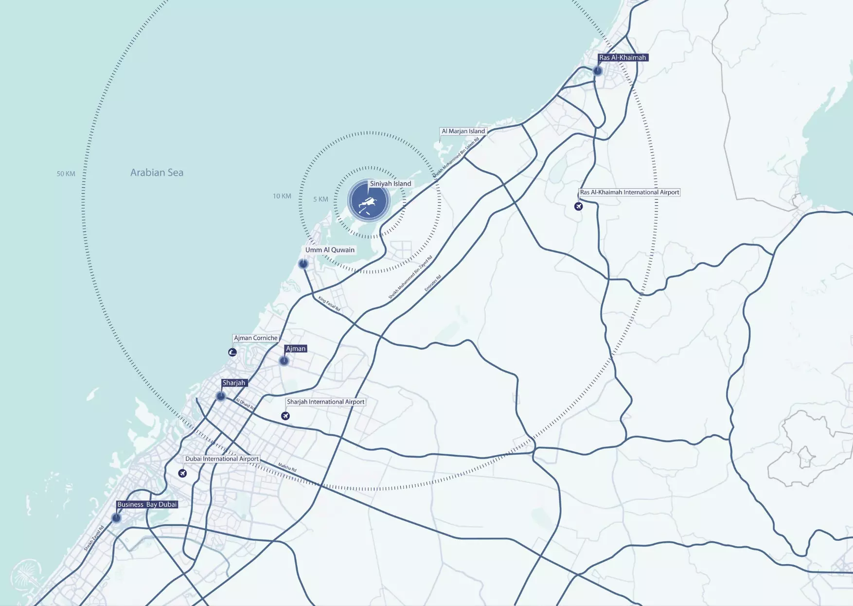 Coral Beach Villas is located in Umm Al Quwain, within the Umm Al Quwain Marina on Siniyah Island.