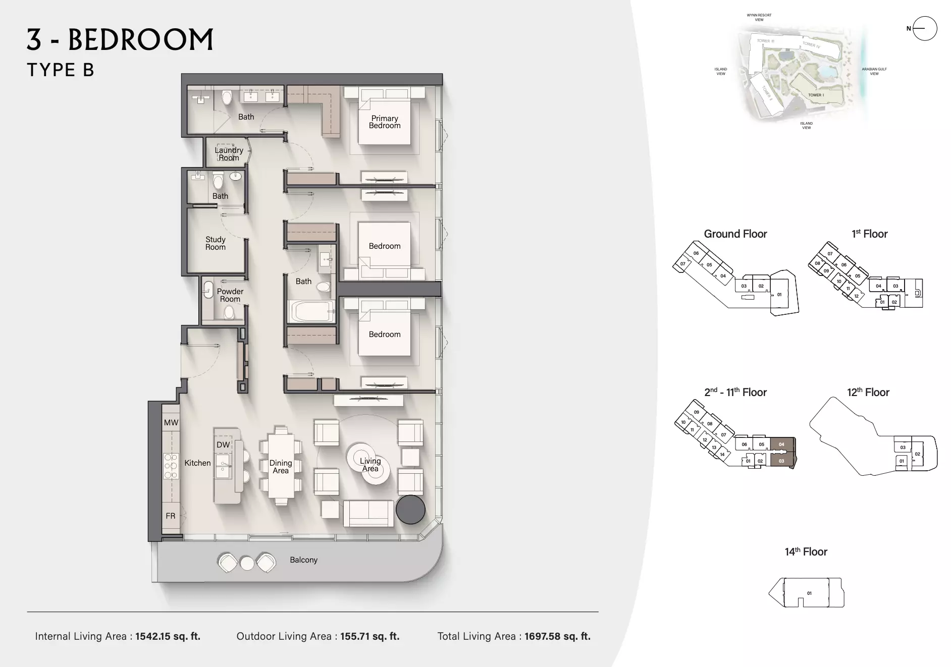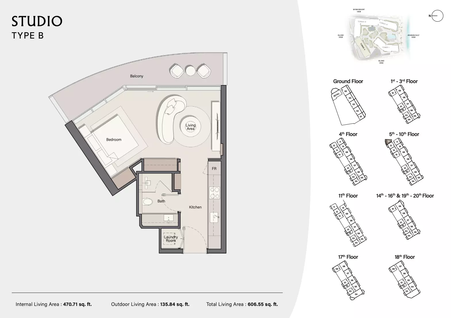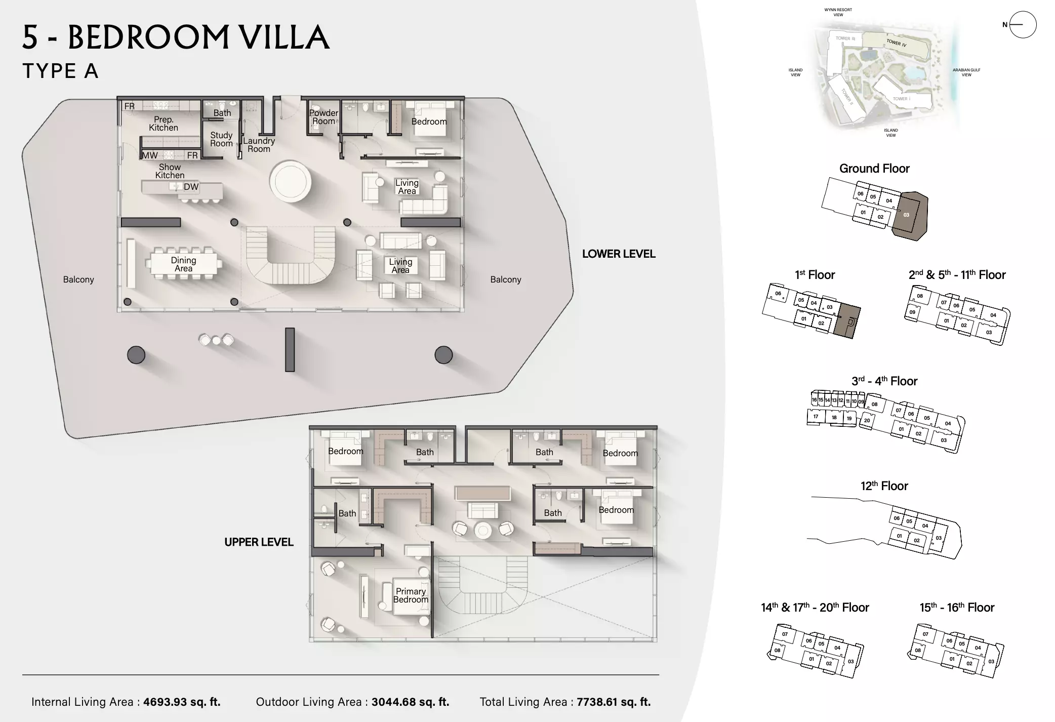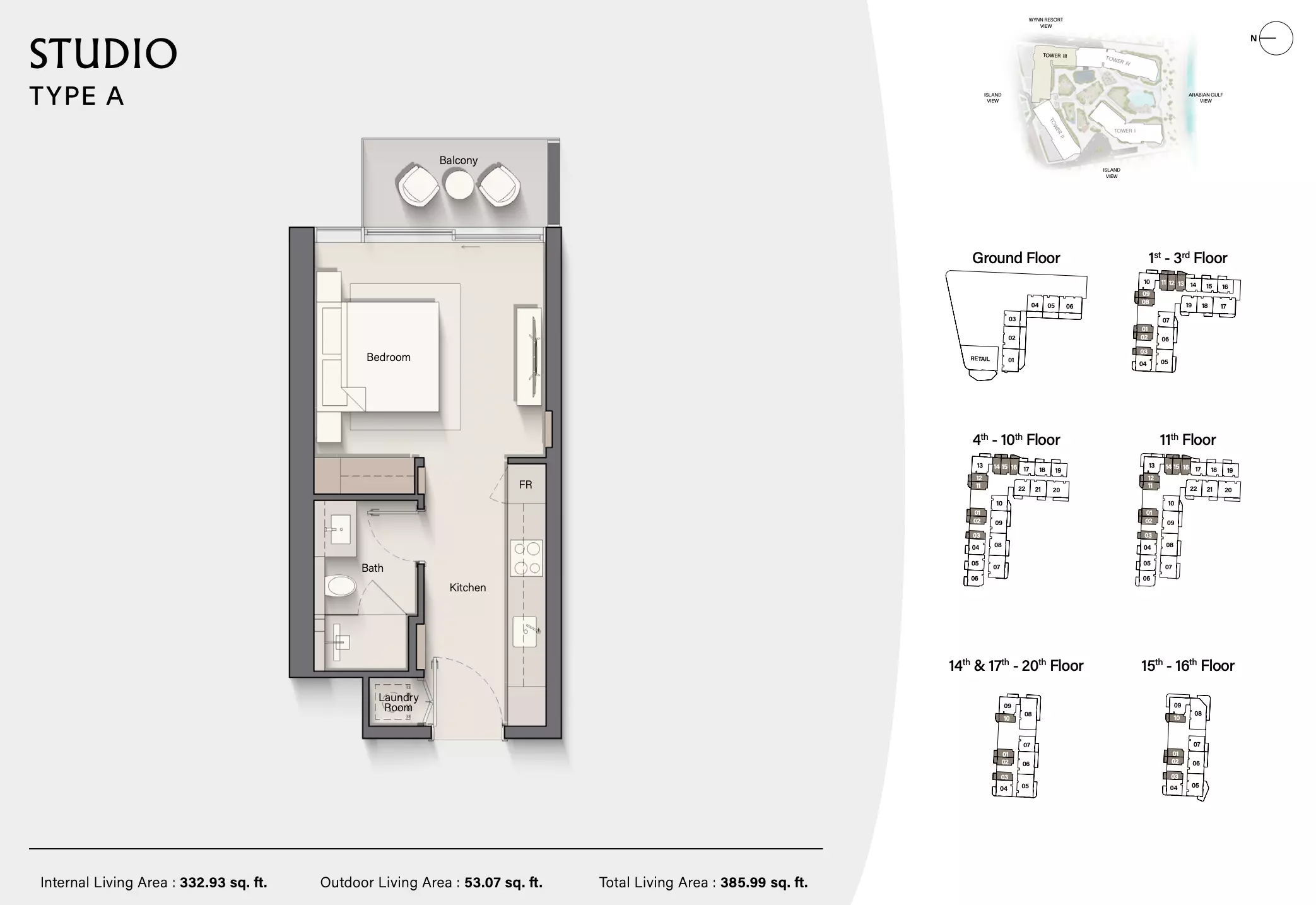 • Apartment Studio Apartments: from 385 sq ft to 606 sq ft 1-Bedroom Apartments: from 840 sq ft to 951 sq ft with starting price 2.8M AED 2-Bedroom Apartments: from 1,096 sq ft to 1,530 sq ft with starting price 3.4M AED 3-Bedroom Apartments: from 1.697 sq ft to 1982 sq ft • Duplex 1-bedroom Duplex: from 1,321 sq ft to 1,345 sq ft 2-Bedroom Duplex: from 2,025 to 2,149 sq ft 3-Bedroom Duplex: 5,471 sq ft 4-Bedroom Duplex: 5,471 sq ft • Penthouses 6 bedroom penthouses : 13,759 sq ft • Villas 5 bedroom villas : from 7,735 sq ft to 7,738