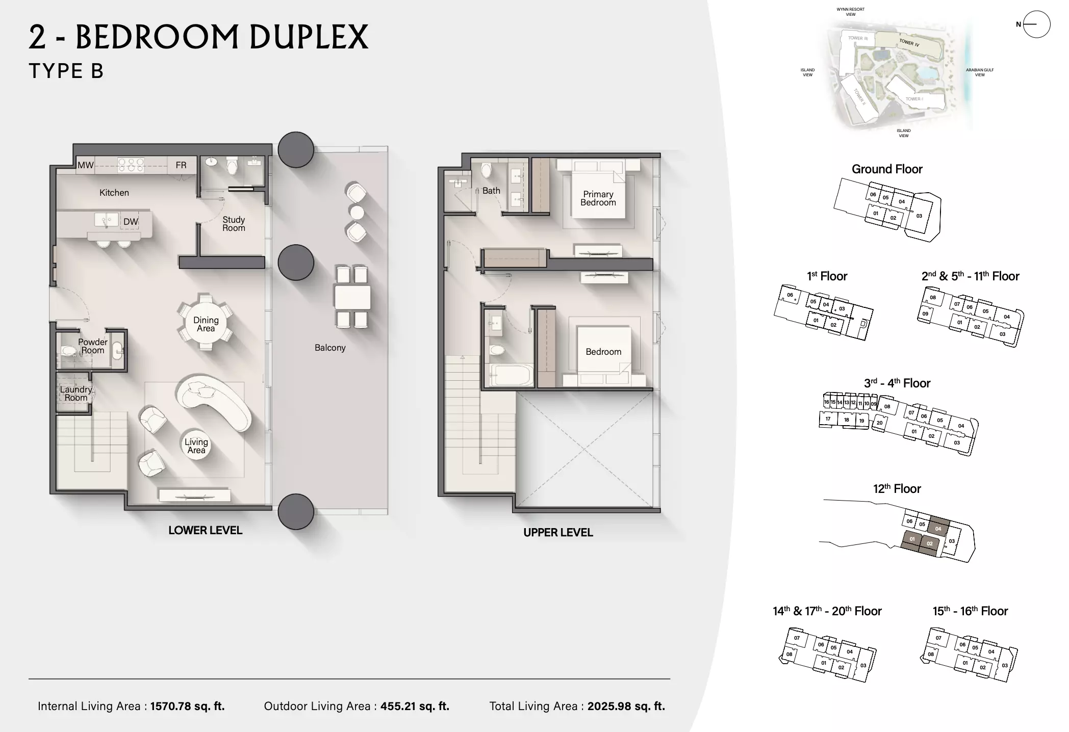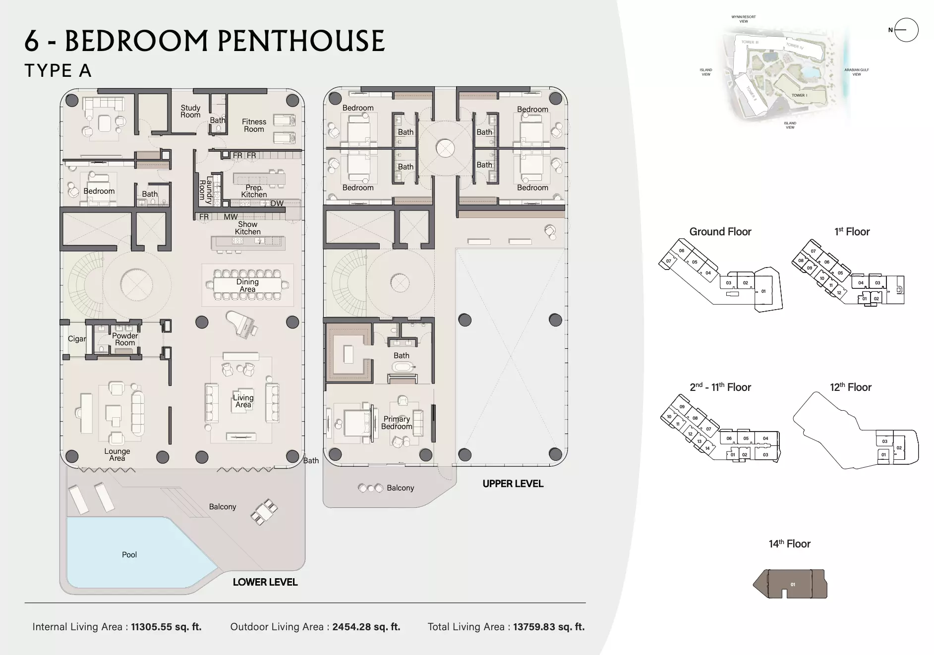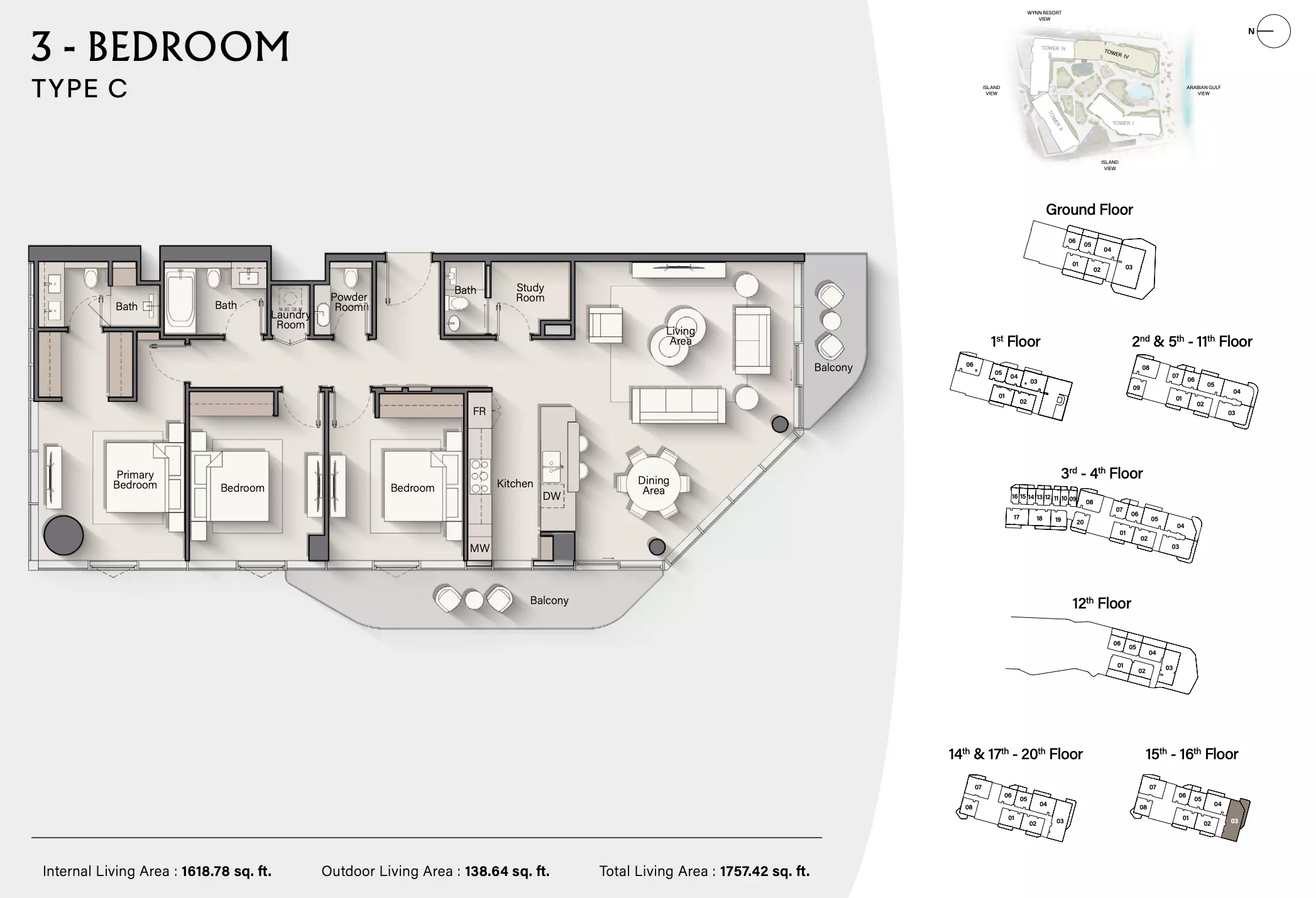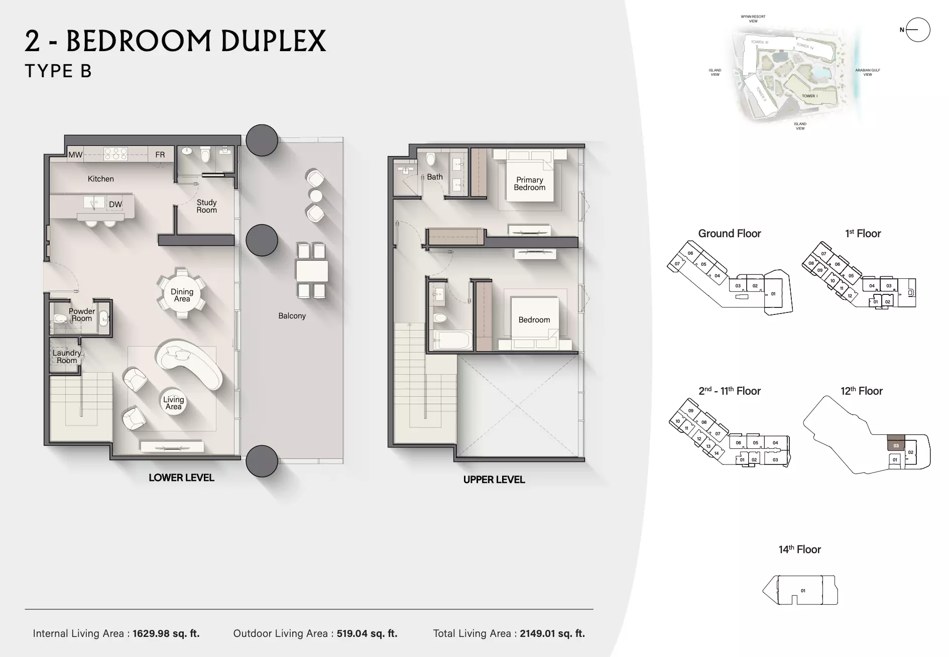 • Apartment Studio Apartments: from 385 sq ft to 606 sq ft 1-Bedroom Apartments: from 840 sq ft to 951 sq ft with starting price 2.8M AED 2-Bedroom Apartments: from 1,096 sq ft to 1,530 sq ft with starting price 3.4M AED 3-Bedroom Apartments: from 1.697 sq ft to 1982 sq ft • Duplex 1-bedroom Duplex: from 1,321 sq ft to 1,345 sq ft 2-Bedroom Duplex: from 2,025 to 2,149 sq ft 3-Bedroom Duplex: 5,471 sq ft 4-Bedroom Duplex: 5,471 sq ft • Penthouses 6 bedroom penthouses : 13,759 sq ft • Villas 5 bedroom villas : from 7,735 sq ft to 7,738