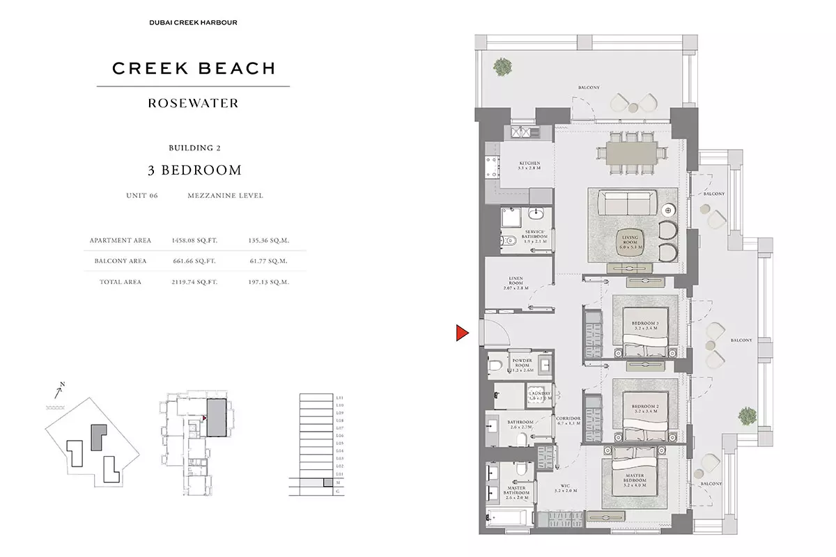 Creek Beach Rosewater offers strong investment potential due to its premium waterfront location, exceptional architectural design, and seamless connectivity to Dubai’s key landmarks. Its vibrant lifestyle and tranquil environment cater to high demand, ensuring excellent value growth for investors.