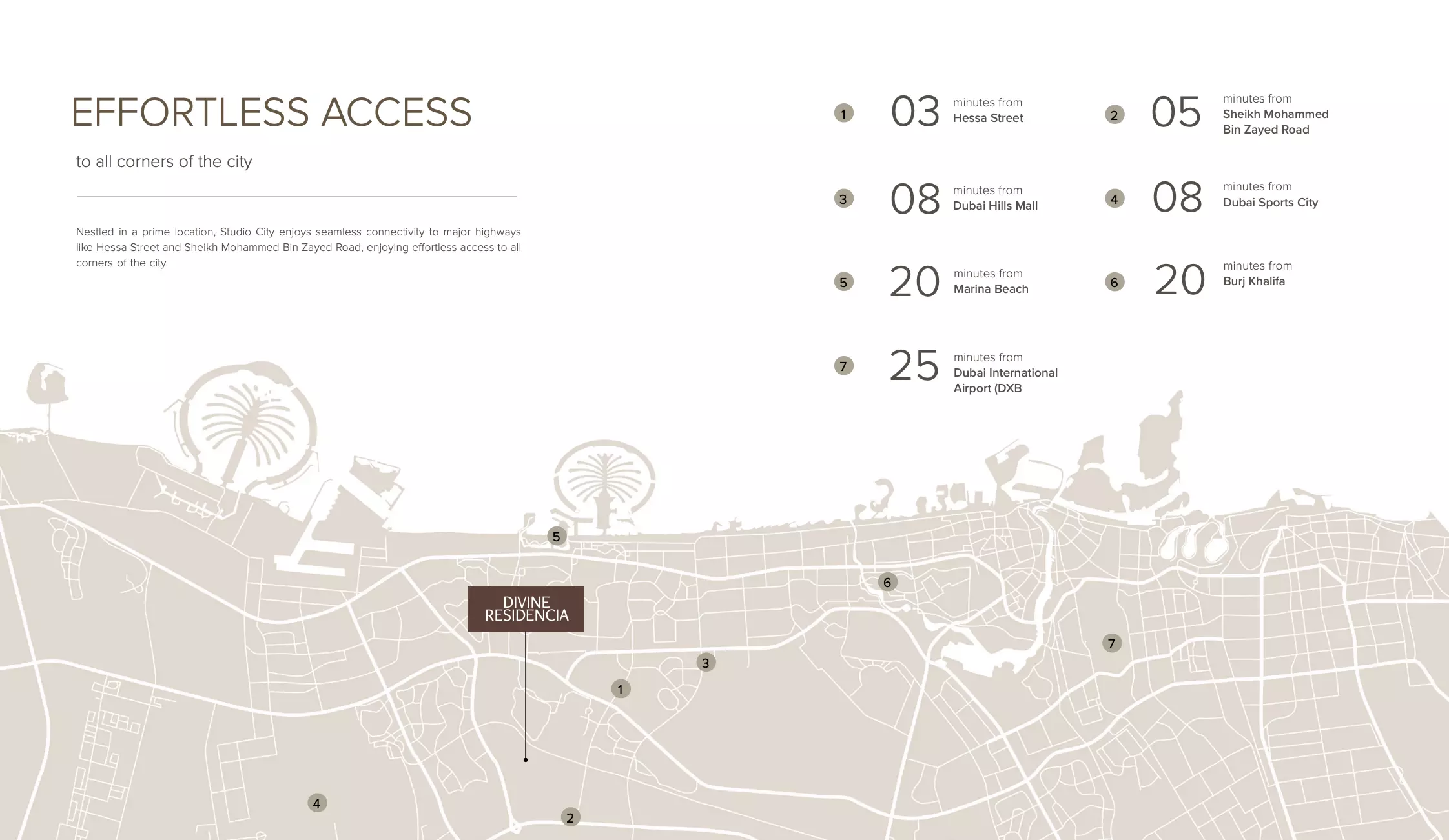 Divine Residencia is a great investment opportunity due to its prime location in Dubai Studio City, offering a seamless blend of urban living and natural elements. The project features spacious 1, 2, and 3-bedroom apartments with functional designs, ensuring an elevated lifestyle. The development’s family-friendly environment, along with amenities such as fitness centers, swimming pools, and parks, makes it ideal for families and young professionals. With easy access to major parts of the city, including Dubai Hills Mall and Dubai International Airport, Divine Residencia offers excellent connectivity and growth potential. Its focus on wellness and community living further enhances its appeal as a solid investment.