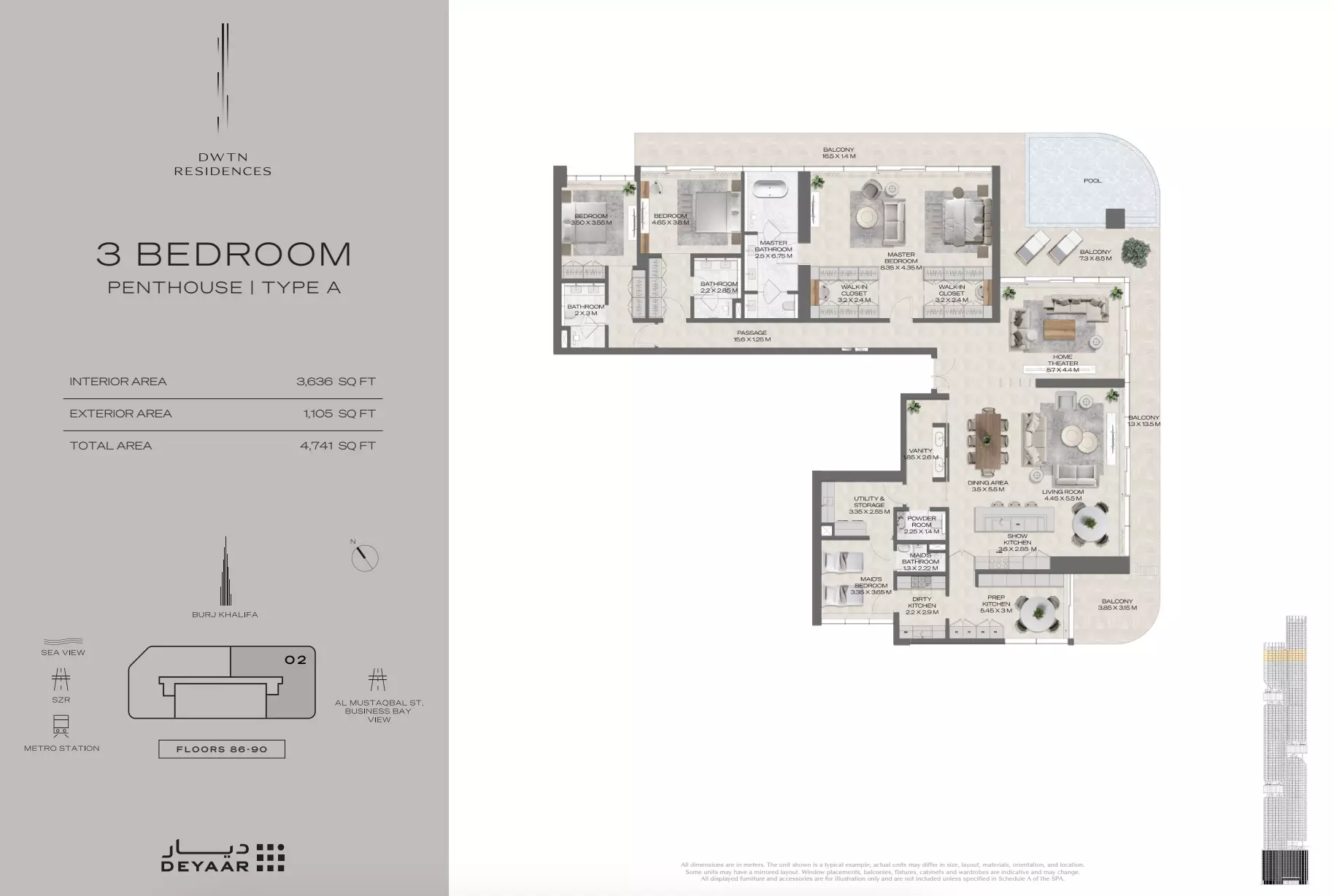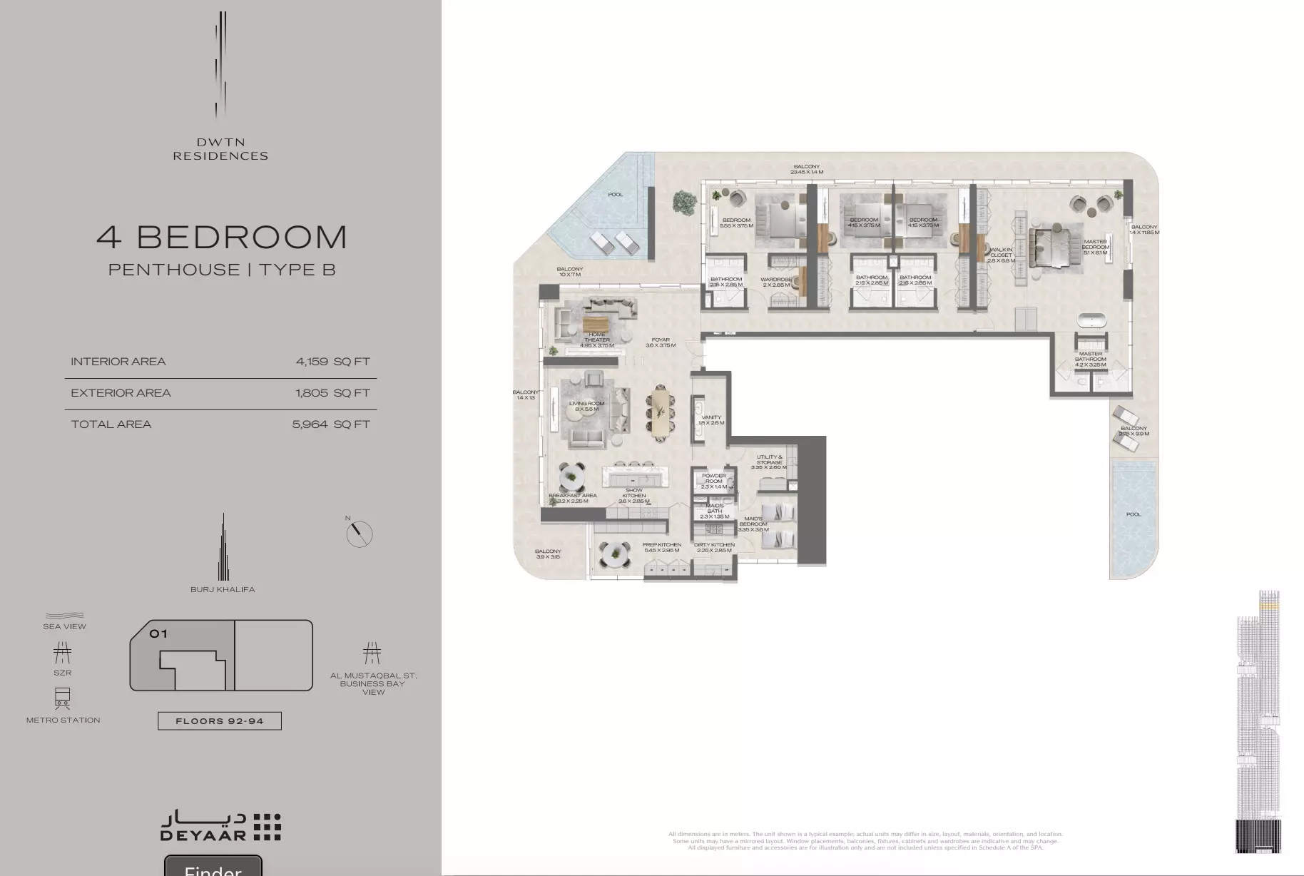The scheduled delivery date for DWTN Residences is December 2029. This timeline allows for the completion of its 110-floor structure and integration of over 75,000 square feet of world-class amenities. Developed by Deyaar Leasing, the project is set to become one of Dubai’s tallest and most prestigious residential towers, offering luxury living in Business Bay. The completion date aligns with the developer’s commitment to delivering premium-quality residences designed for modern urban lifestyles. Investors and future residents can plan confidently, knowing the project has a clear and targeted handover schedule backed by a reputable developer.
