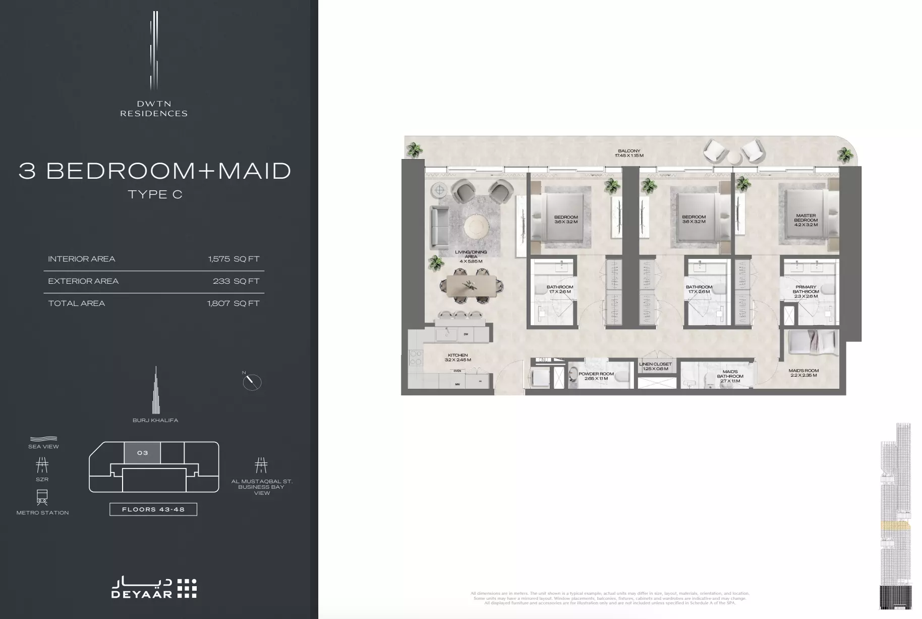 DWTN Residences is owned by Deyaar Leasing, a subsidiary of Deyaar Development, one of the UAE’s leading real estate companies. Known for its high-quality residential and commercial developments, Deyaar Leasing oversees the management and leasing of premium properties across Dubai. With a focus on delivering exceptional living standards, Deyaar Leasing ensures DWTN Residences upholds luxury, convenience, and long-term value. Their proven track record in property development and tenant services reinforces the project’s reliability and appeal to both investors and end-users seeking a high-end lifestyle in a prime location.