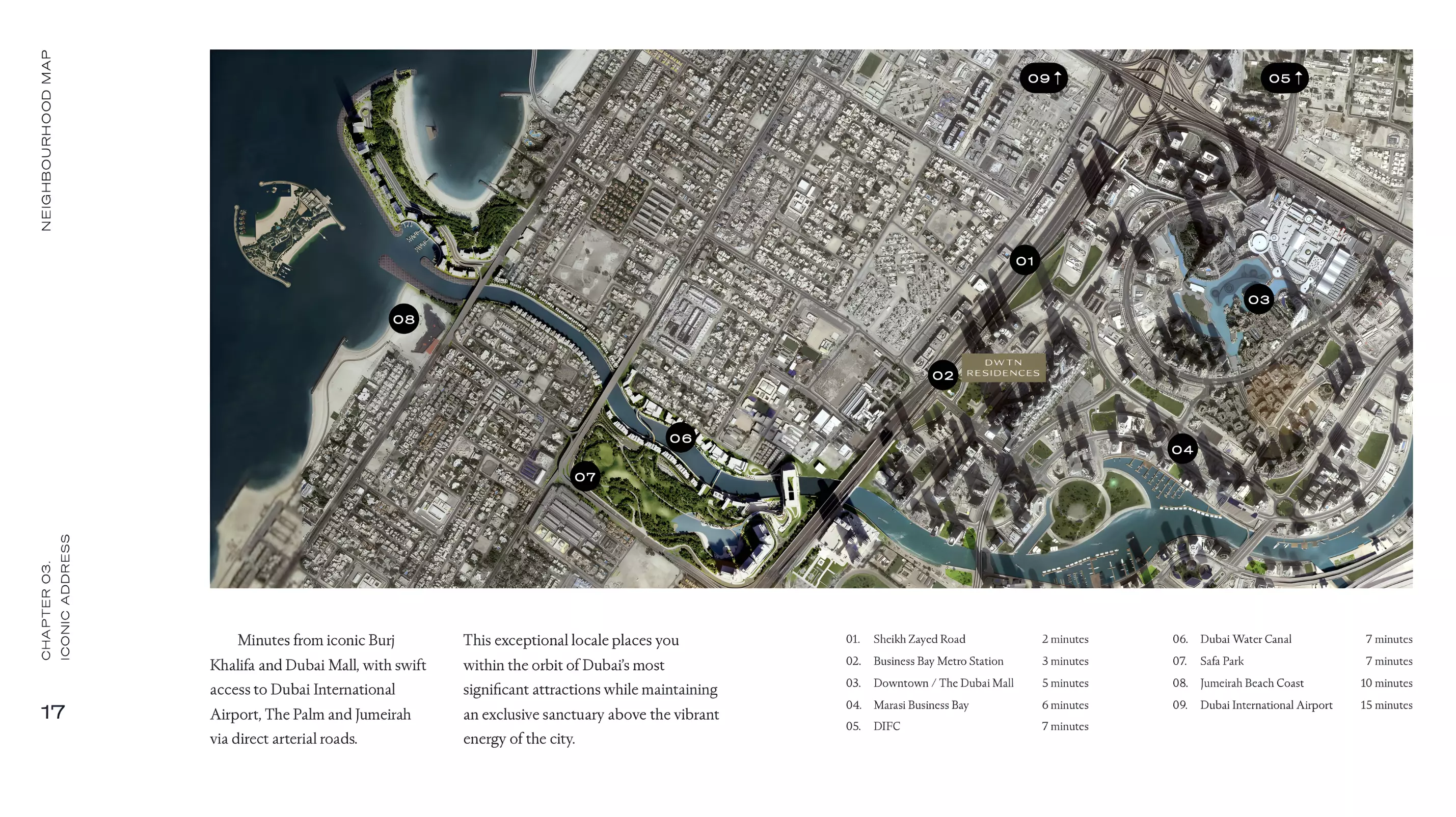 DWTN Residences is located in Dubai, Business Bay, offering direct access to major landmarks, business hubs, and key road networks.