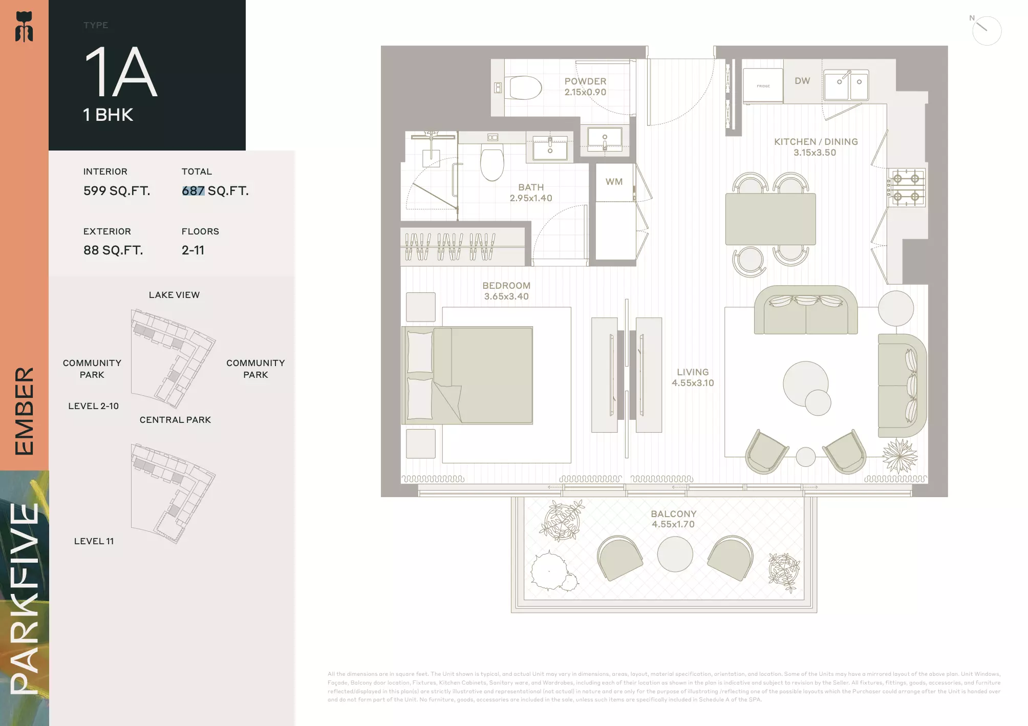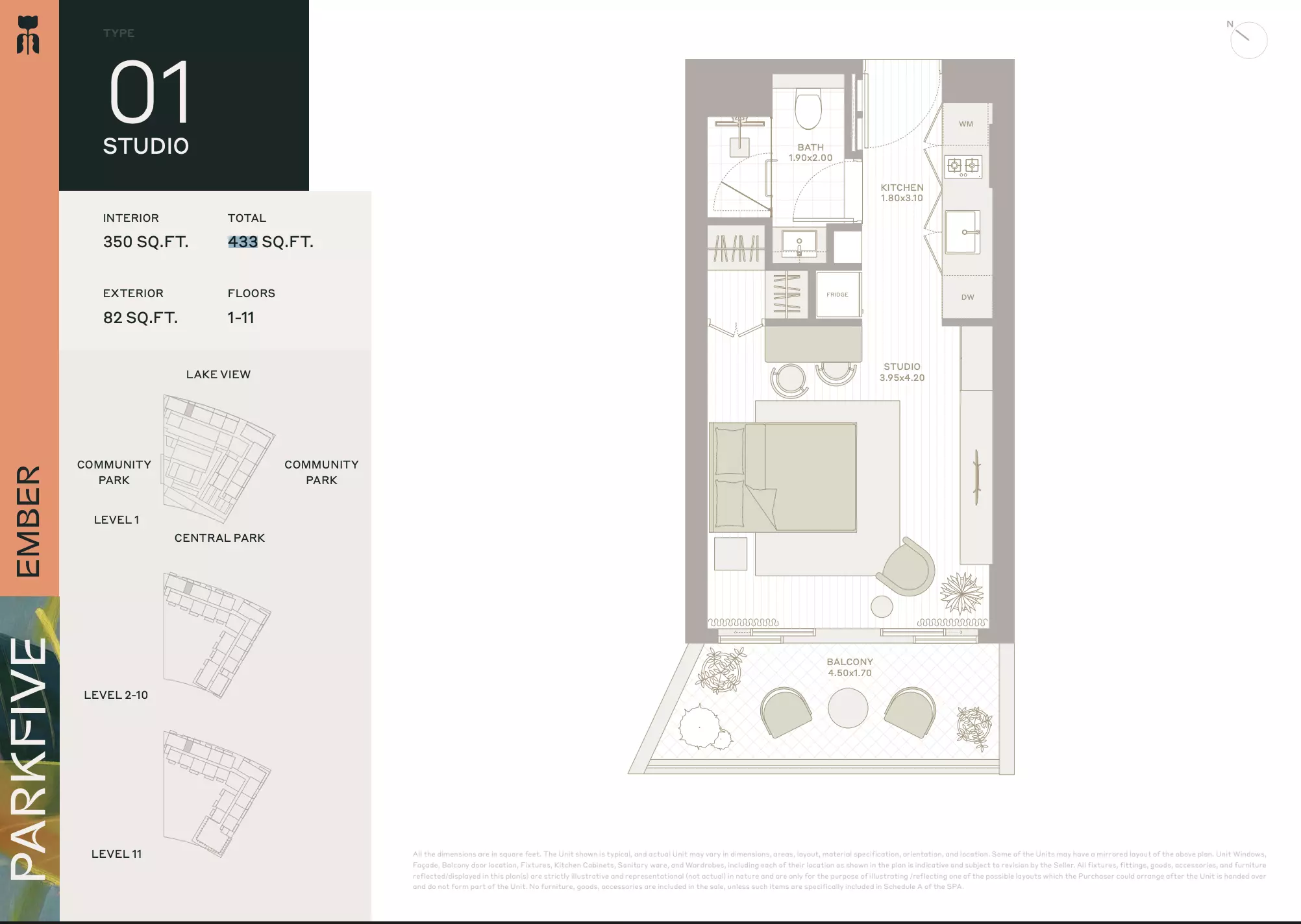 Ember Park Five offers a variety of apartment options with different layouts and sizes. The available unit types include studio, one-bedroom, two-bedroom, and three-bedroom apartments. • Studio – 433 sq. ft. • 1-Bedroom – Ranging from 687 to 817 sq. ft. • 2-Bedroom – Ranging from 1,153 to 1,425 sq. ft. • 3-Bedroom – Ranging from 1,777 to 1,827 sq. ft. Pricing information may vary based on availability, lease terms, and specific unit features.
