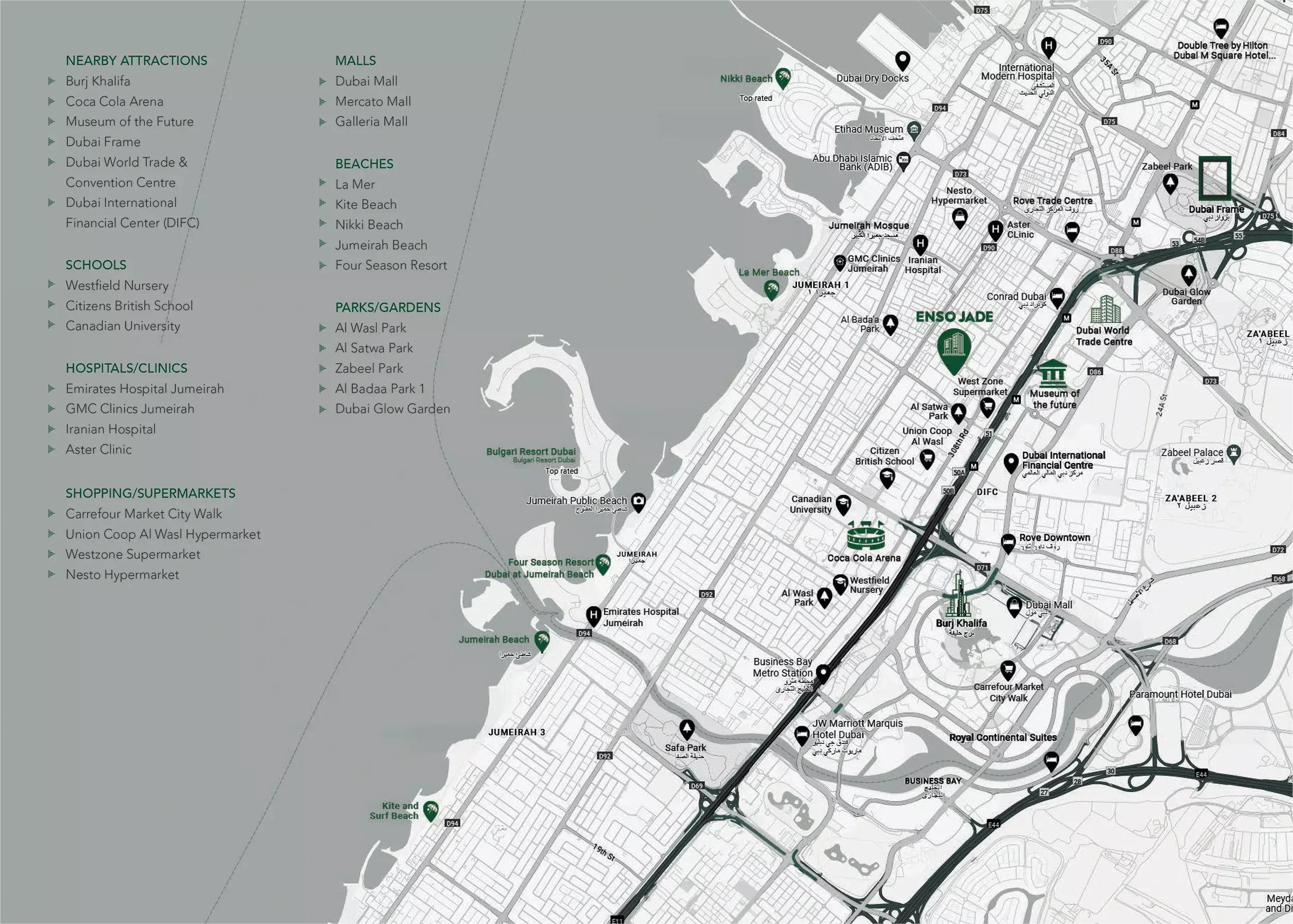 Enso Jade is located in Dubai, within Al Satwa, Jumeirah Garden City.