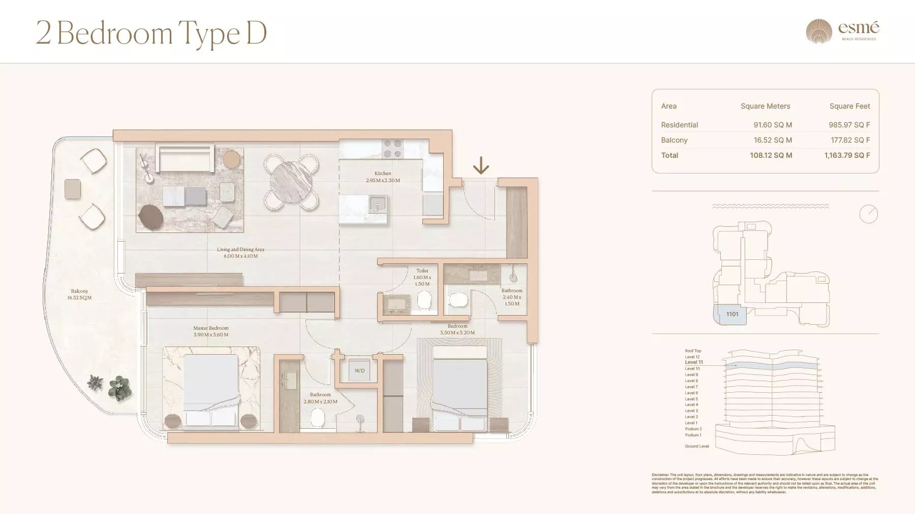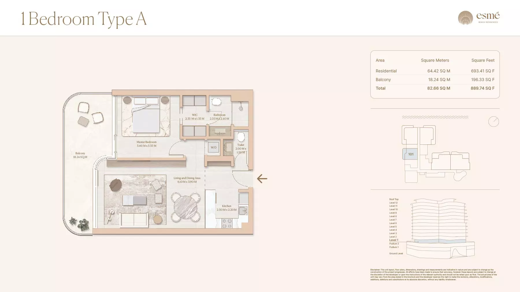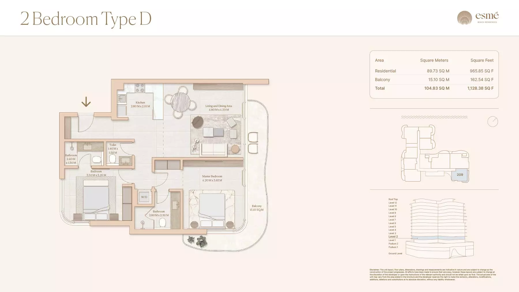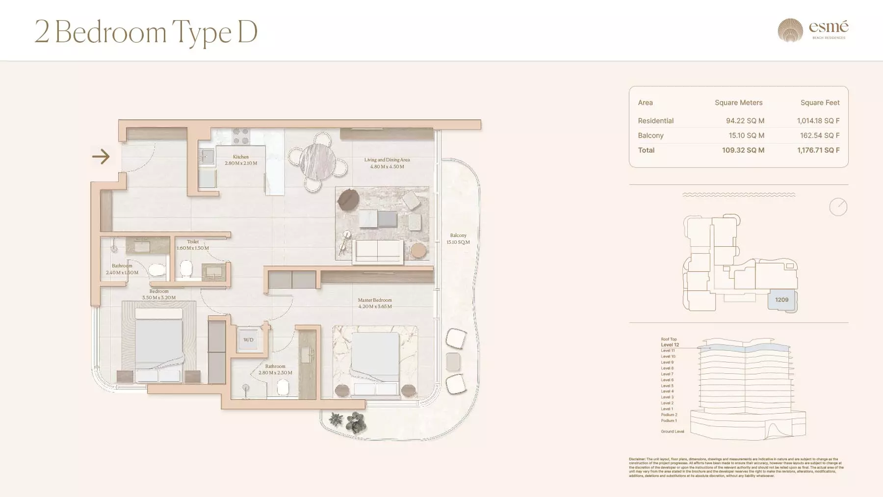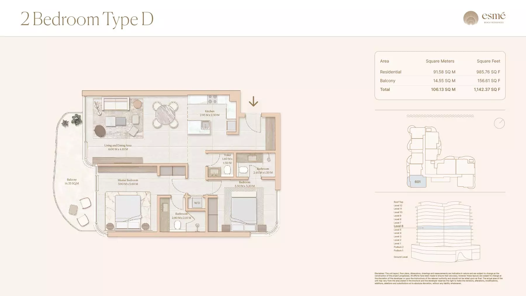 Esme Beach Residences offers a selection of 1, 2, and 3-bedroom apartments with various layouts: 1-Bedroom Apartments: Sizes range from 756 to 1,264 square feet. 2-Bedroom Apartments: Sizes range from 1,104 to 1,854 square feet. 3-Bedroom Apartments: Sizes vary; specific details can be obtained from the developer.