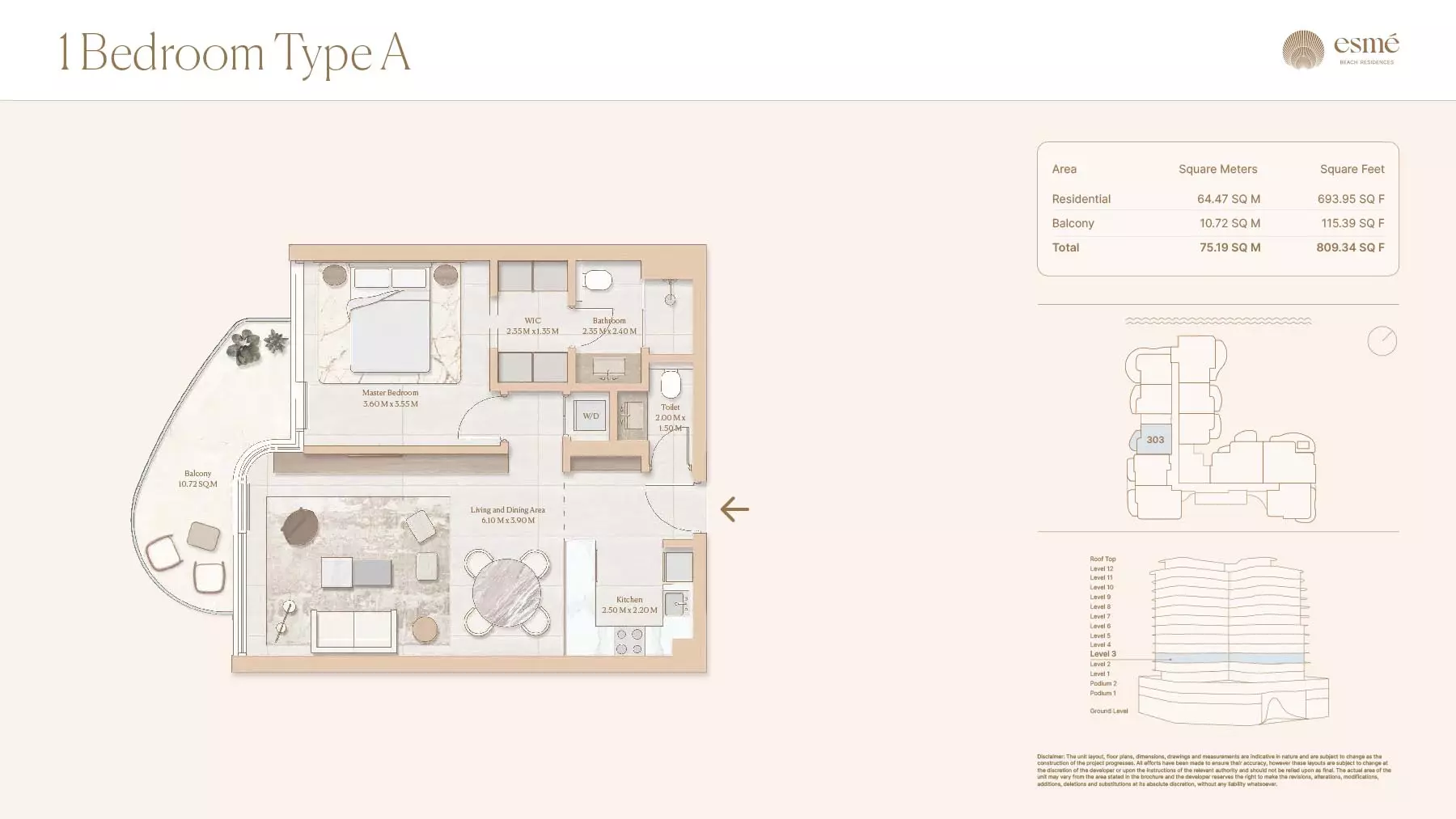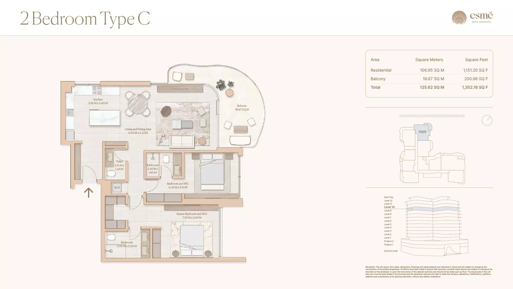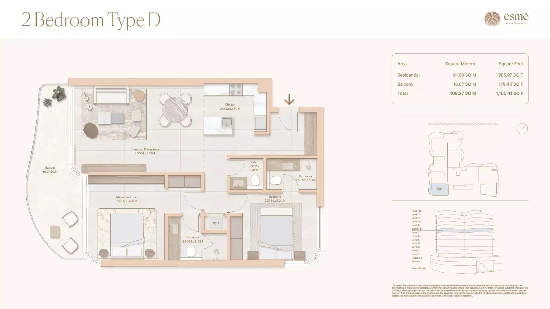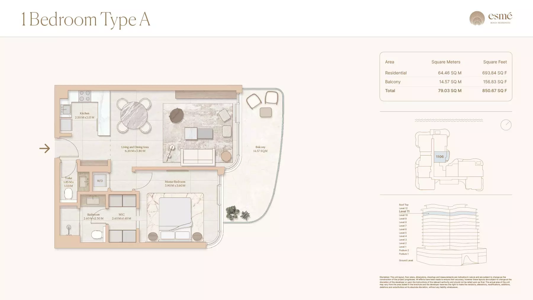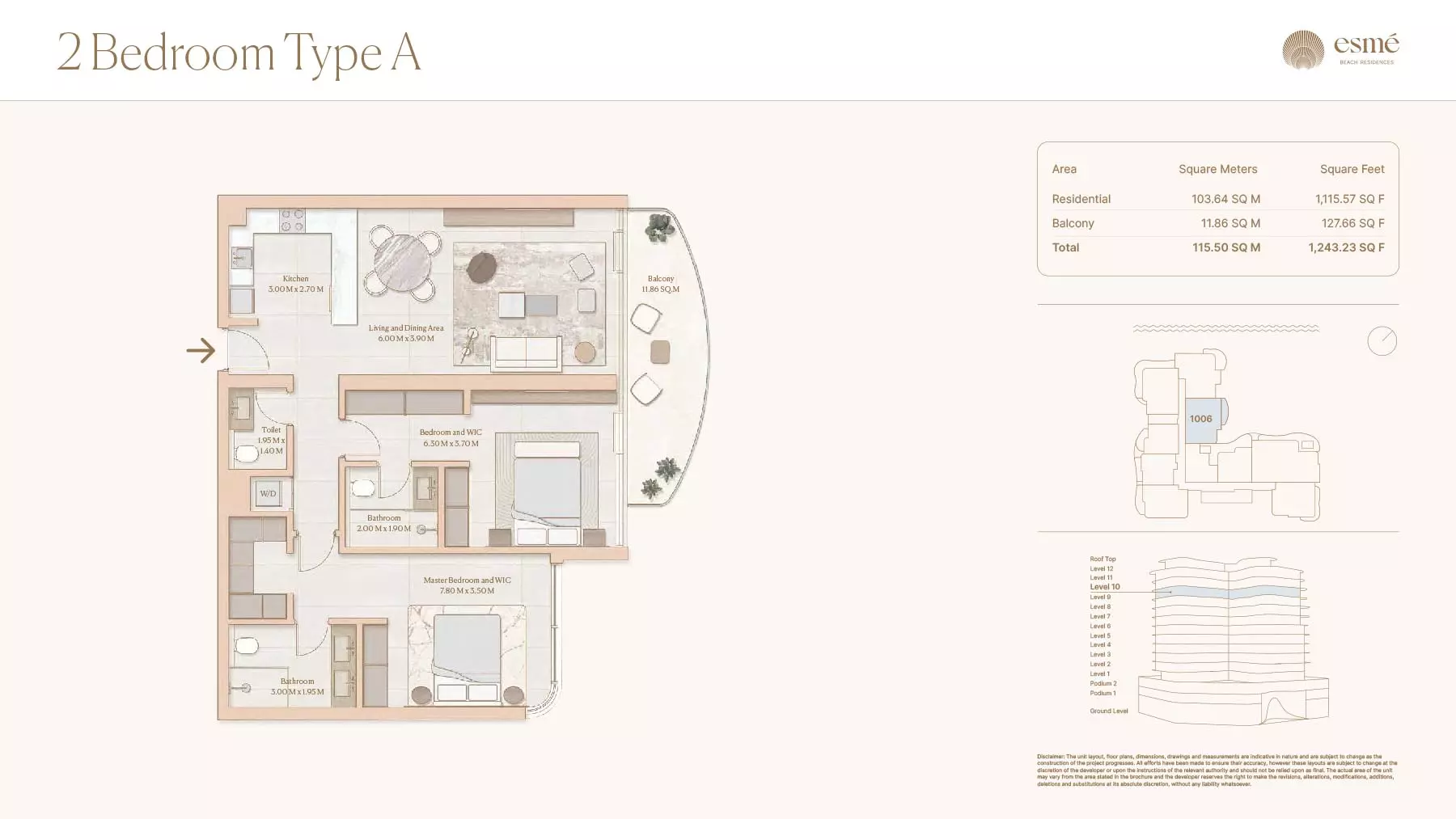 Esme Beach Residences offers a selection of 1, 2, and 3-bedroom apartments with various layouts: 1-Bedroom Apartments: Sizes range from 756 to 1,264 square feet. 2-Bedroom Apartments: Sizes range from 1,104 to 1,854 square feet. 3-Bedroom Apartments: Sizes vary; specific details can be obtained from the developer.