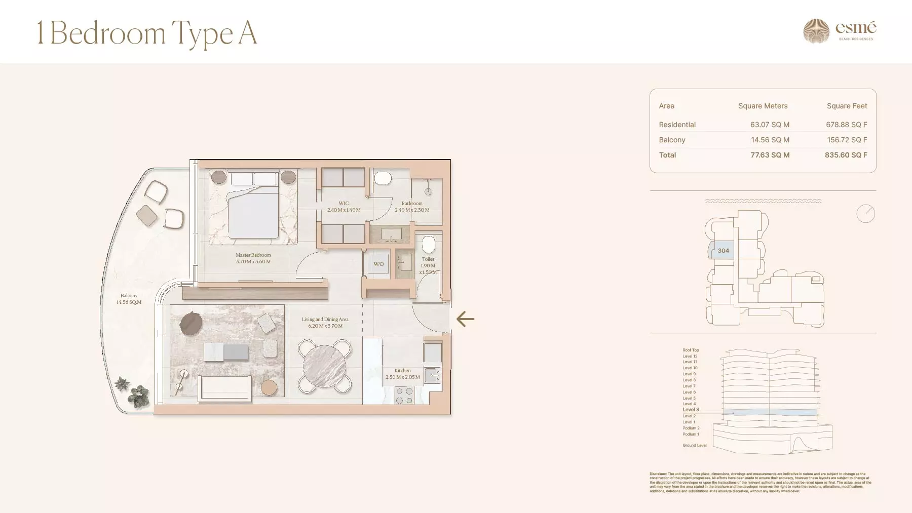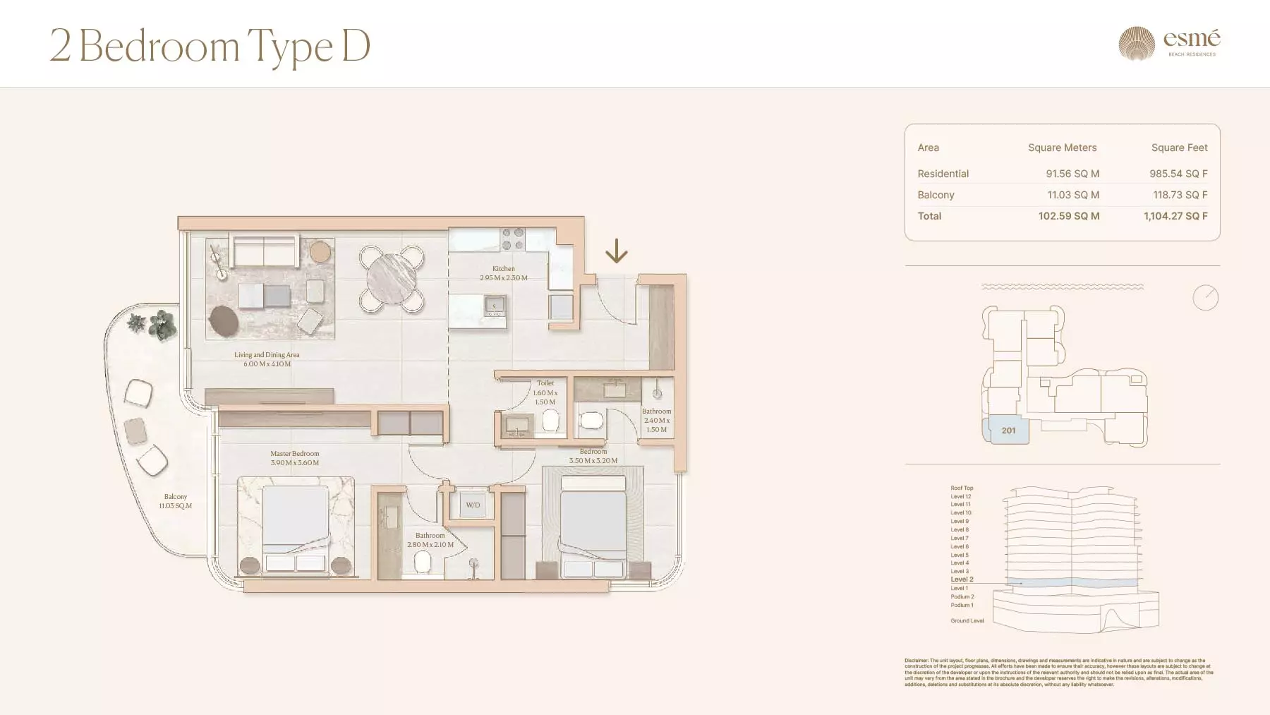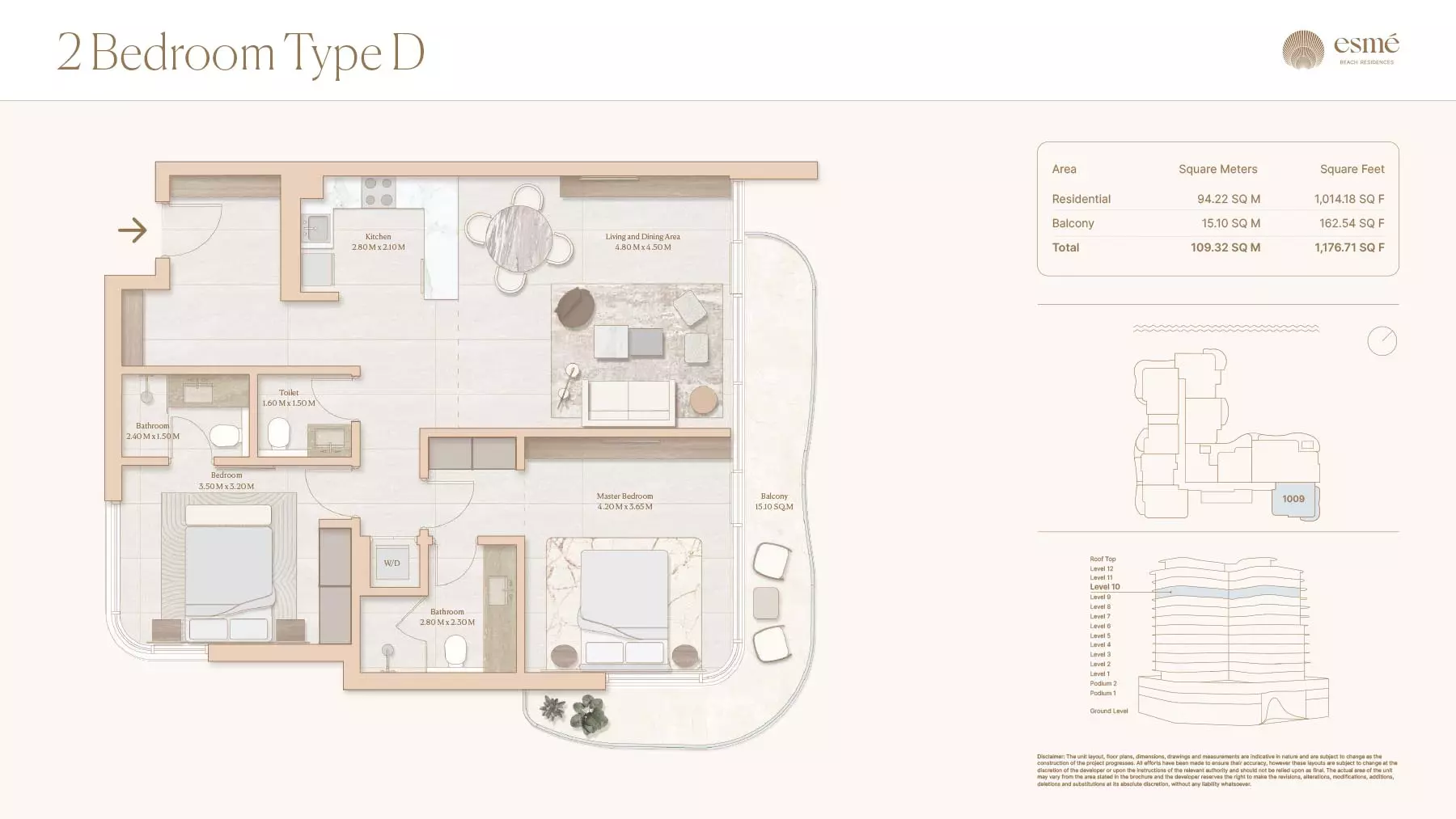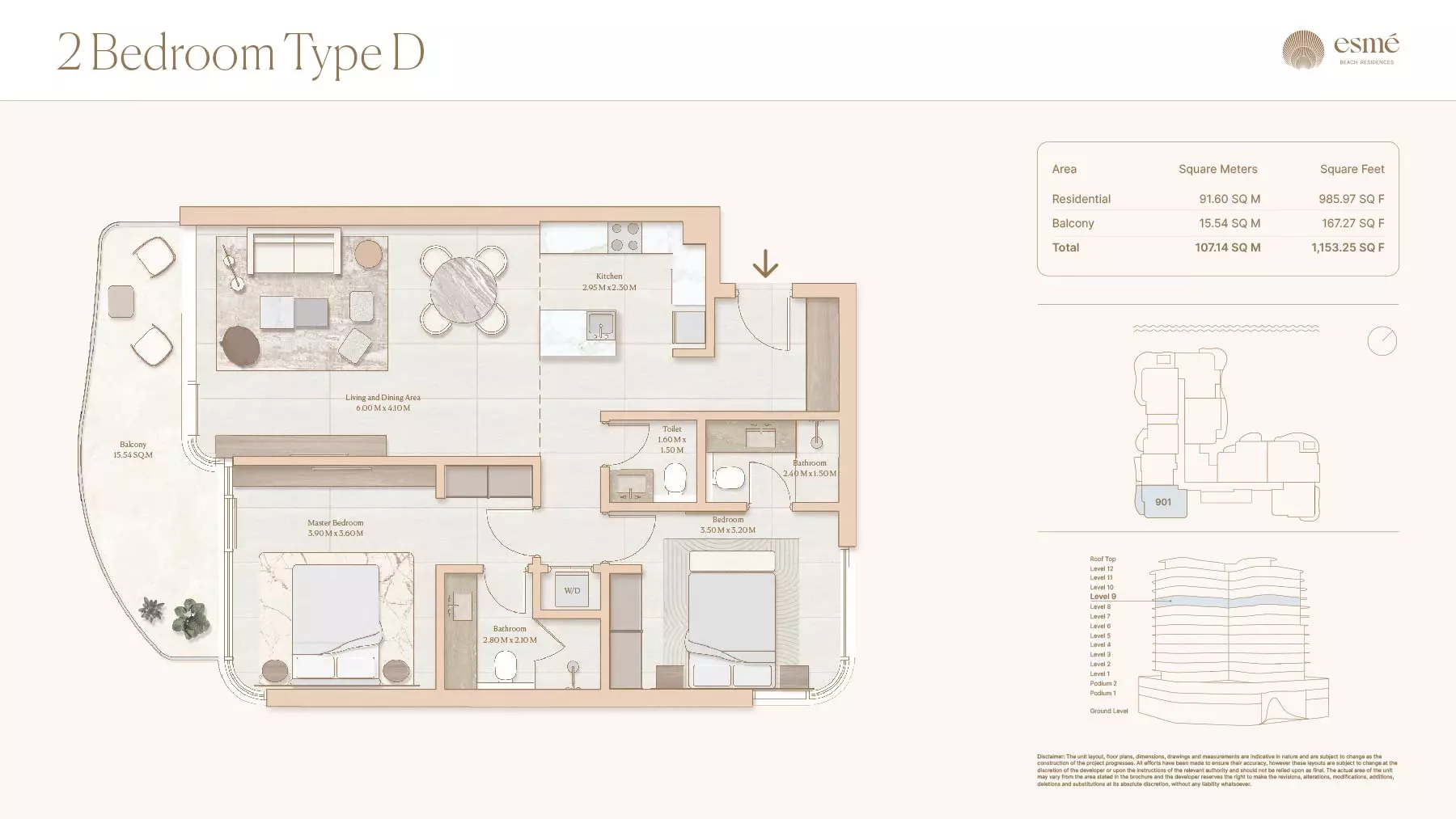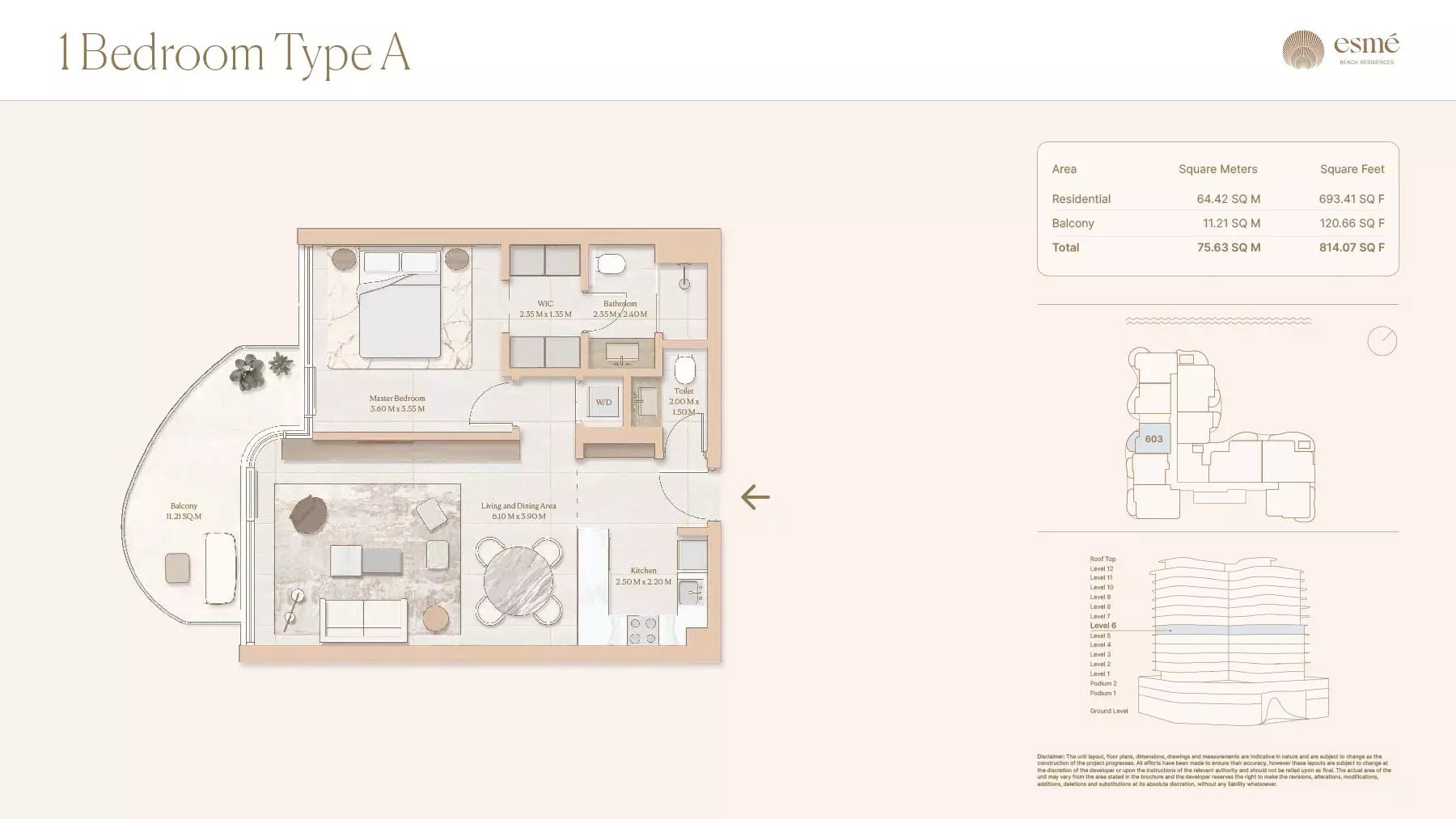 Esme Beach Residences offers a selection of 1, 2, and 3-bedroom apartments with various layouts: 1-Bedroom Apartments: Sizes range from 756 to 1,264 square feet. 2-Bedroom Apartments: Sizes range from 1,104 to 1,854 square feet. 3-Bedroom Apartments: Sizes vary; specific details can be obtained from the developer.