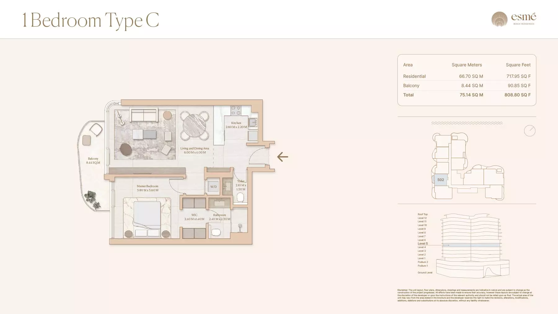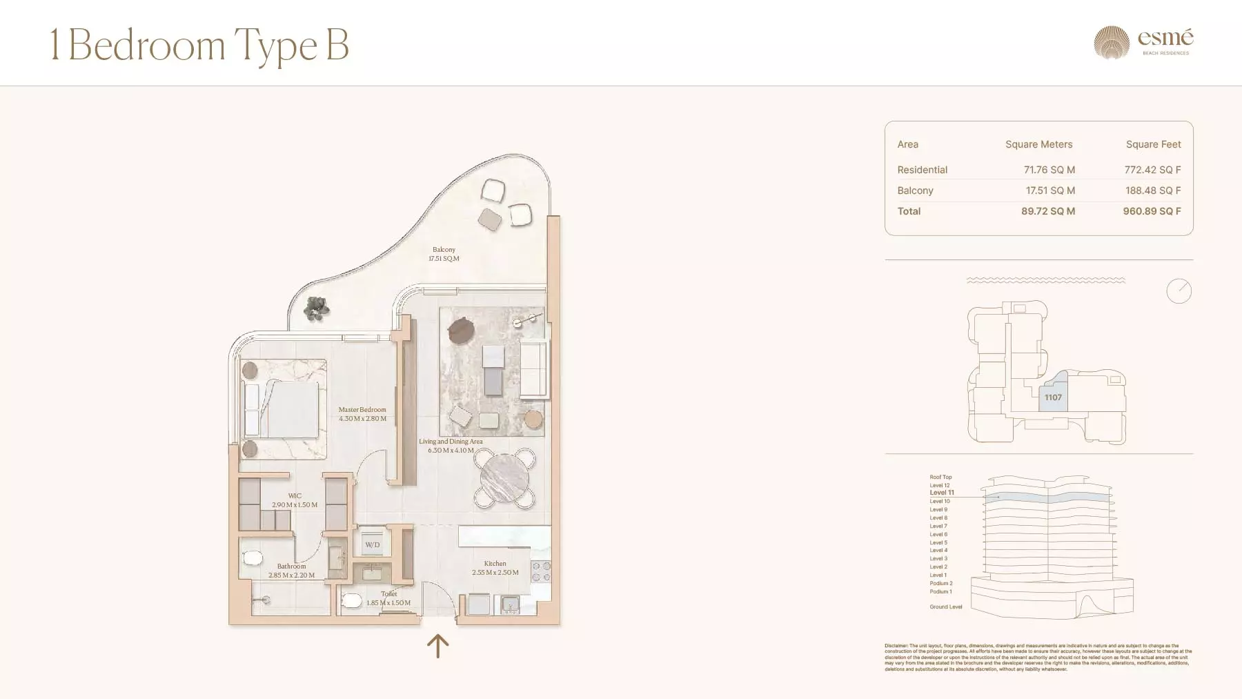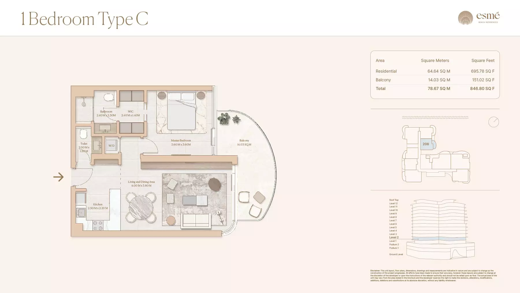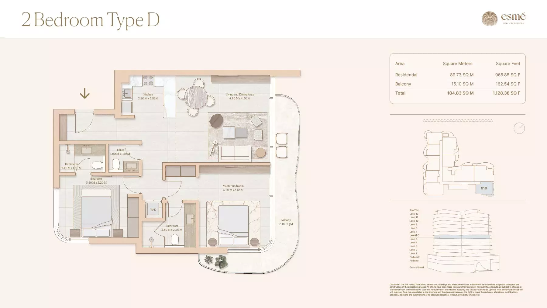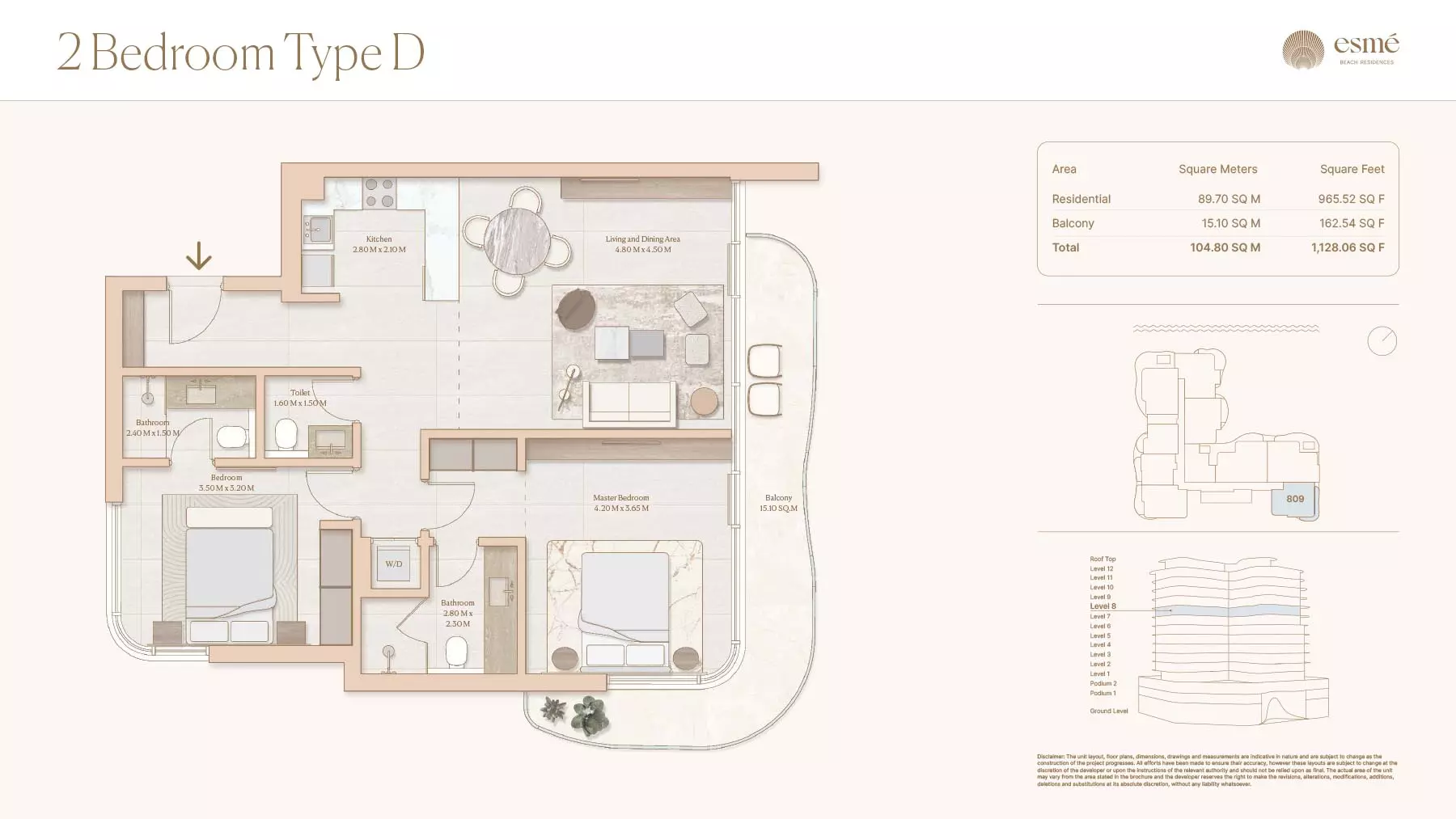 Esme Beach Residences offers a selection of 1, 2, and 3-bedroom apartments with various layouts: 1-Bedroom Apartments: Sizes range from 756 to 1,264 square feet. 2-Bedroom Apartments: Sizes range from 1,104 to 1,854 square feet. 3-Bedroom Apartments: Sizes vary; specific details can be obtained from the developer.