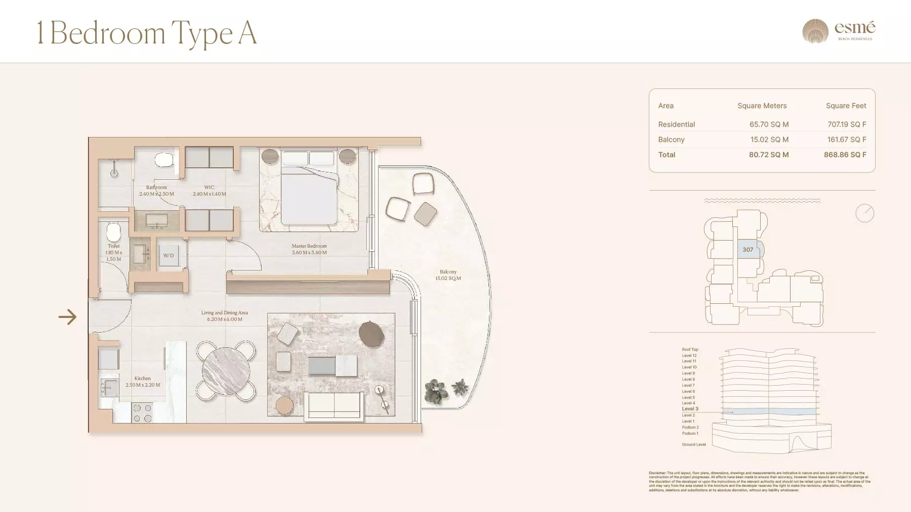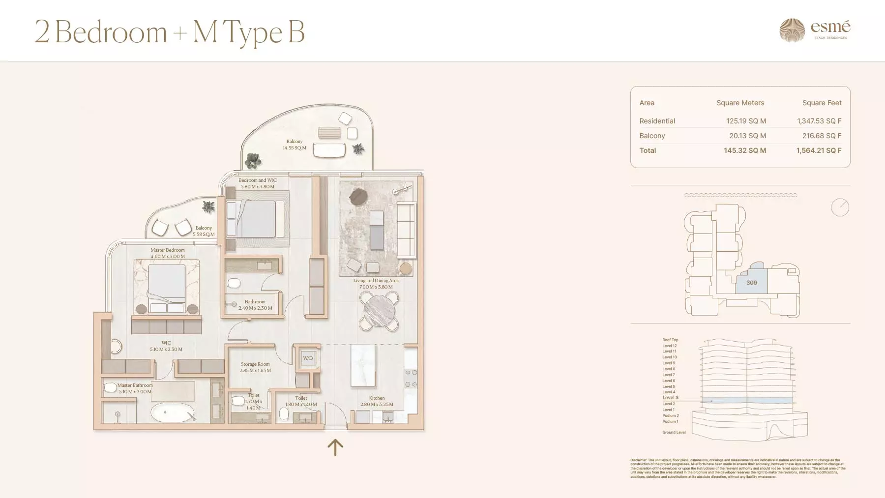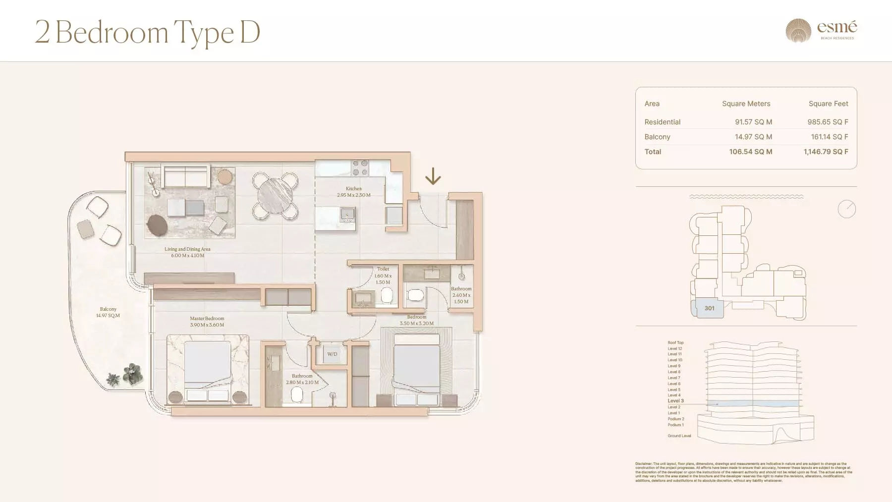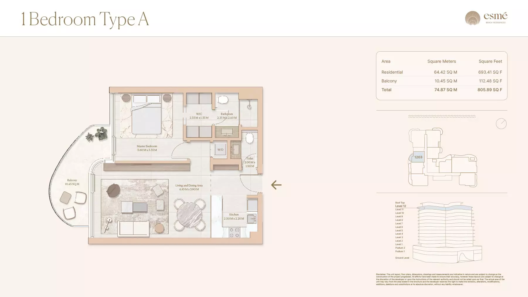 Esme Beach Residences offers a selection of 1, 2, and 3-bedroom apartments with various layouts: 1-Bedroom Apartments: Sizes range from 756 to 1,264 square feet. 2-Bedroom Apartments: Sizes range from 1,104 to 1,854 square feet. 3-Bedroom Apartments: Sizes vary; specific details can be obtained from the developer.